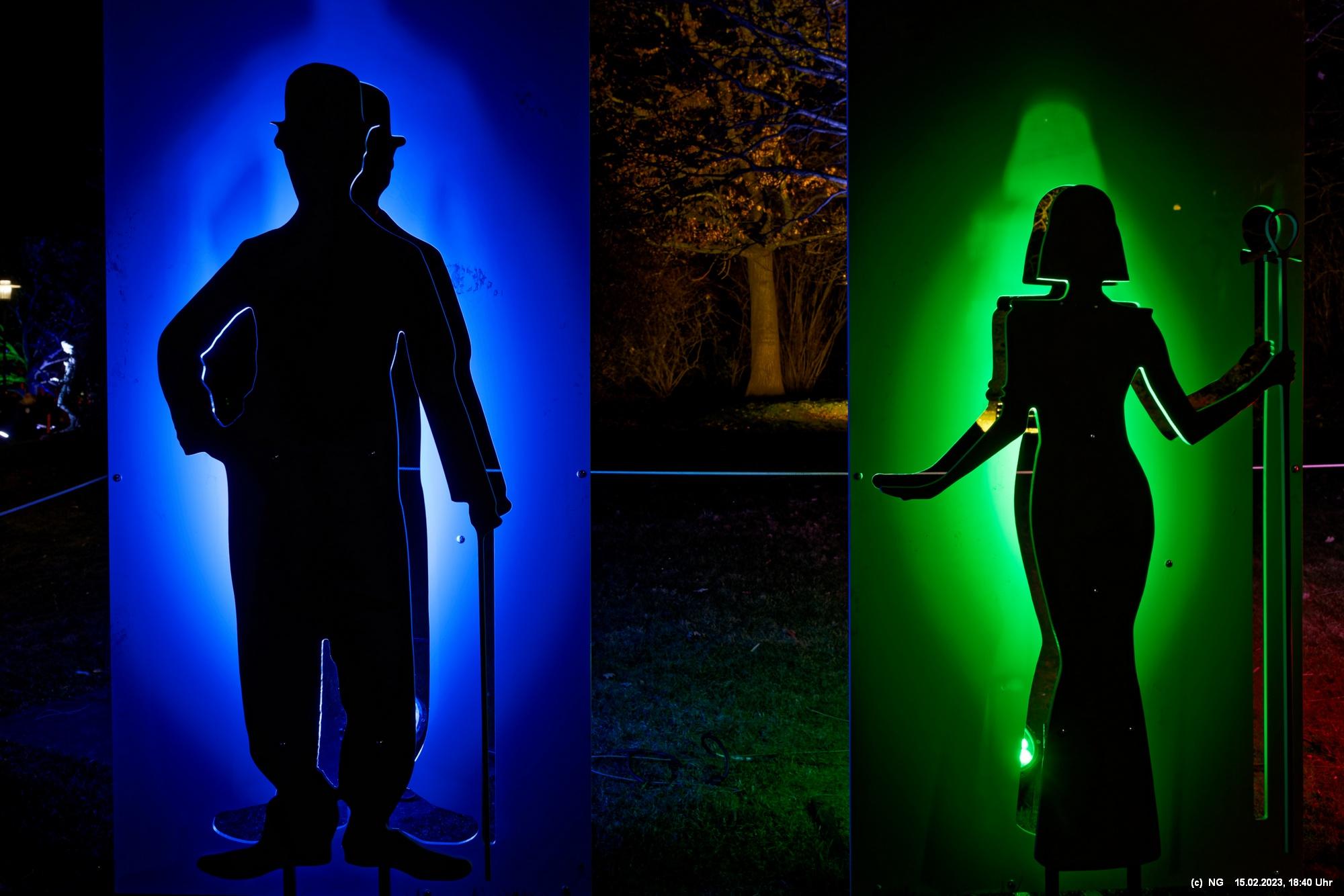 Wenngleich sich auch einiges wiederholt, sind doch immer wieder Neuerungen dabei. In diesem Jahr schien uns, als hätten die Leute um Wolfgang Flammersfeld wieder etwas mehr Lust zur Lichtgestaltung gehabt. Es ist doch immer wieder schön und romantisch, durch den beleuchteten Park zu schlendern und die Lichter und Figuren auf sich einwirken zu lassen.