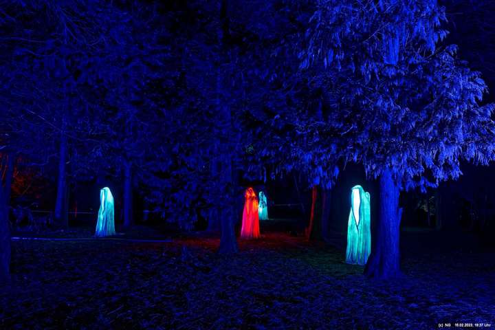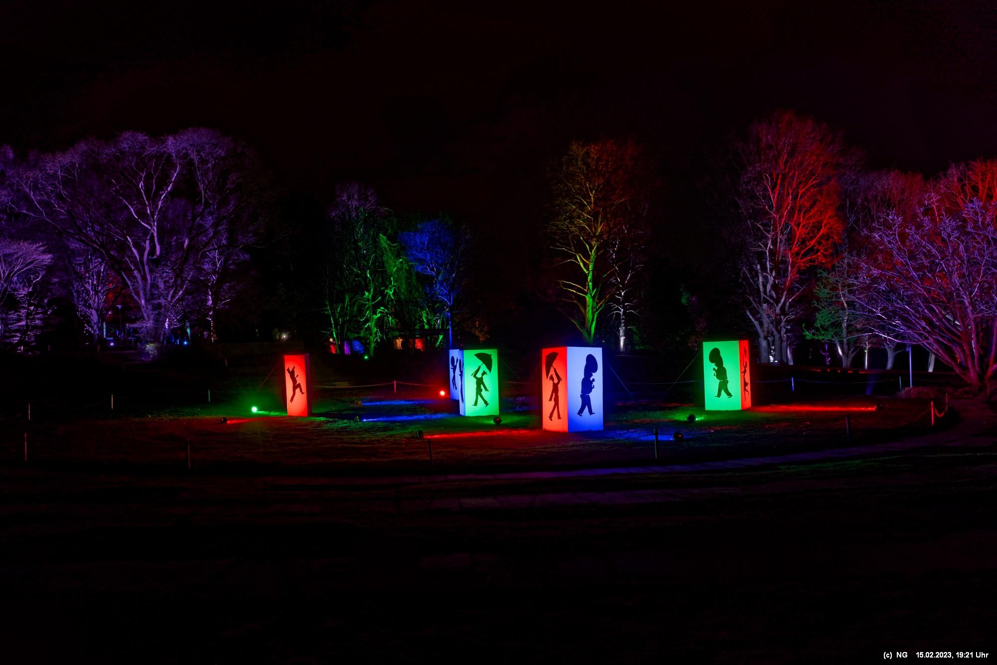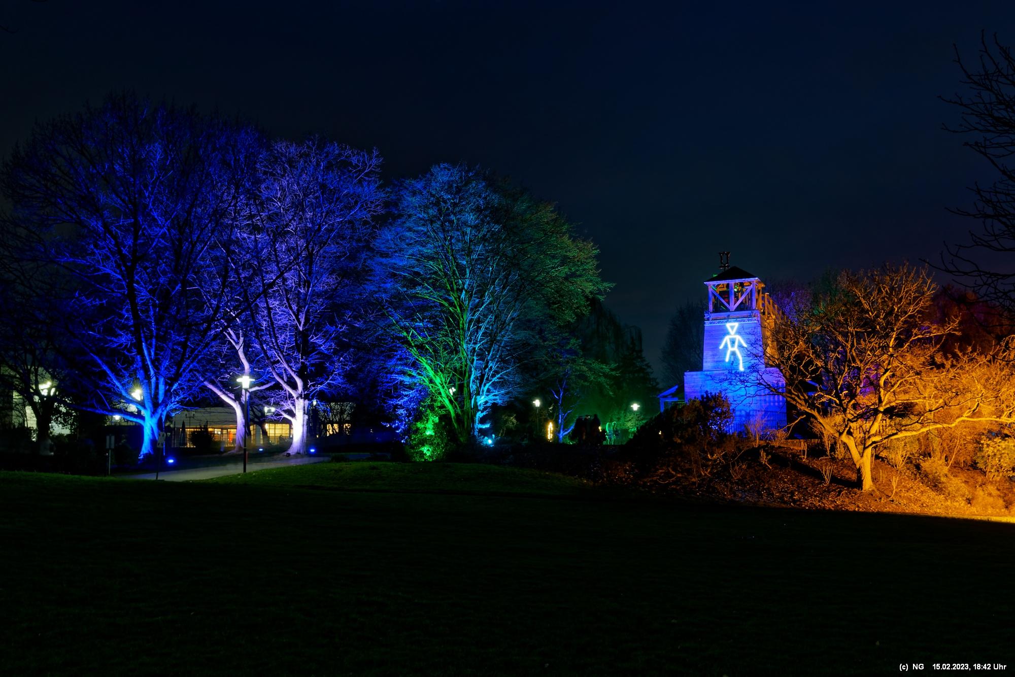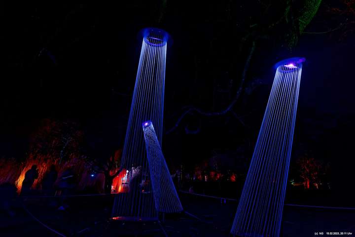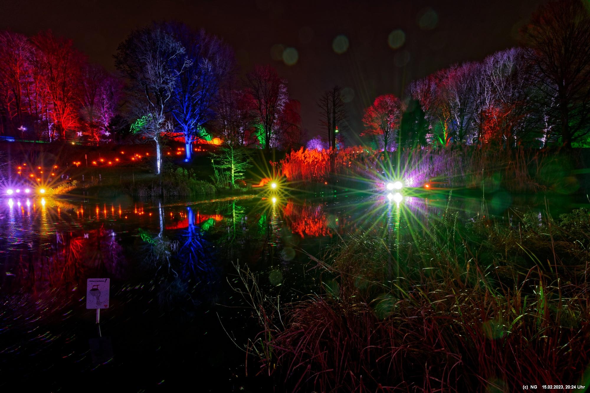 Es ging für knapp 3 Stunden dorthin. Wolfgang Flammersfeld und Reinhard Hartleif (world of lights, Unna) haben zum 13. Mal diese Lichtinstallation durchgeführt. Das Wetter spielte mit – und so haben wir uns auf den längeren Weg durch den Park gemacht. Das war nach den gesundheitlichen Problemen der letzten Monate gar nicht so leicht.