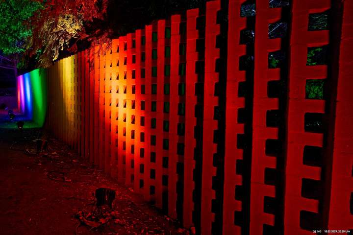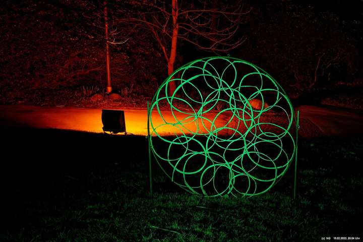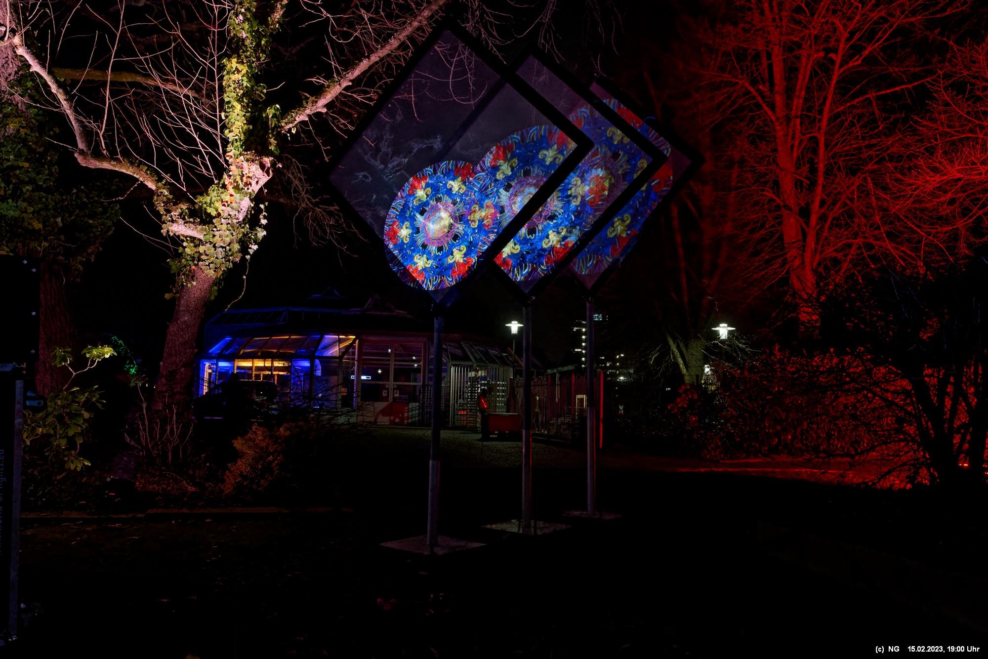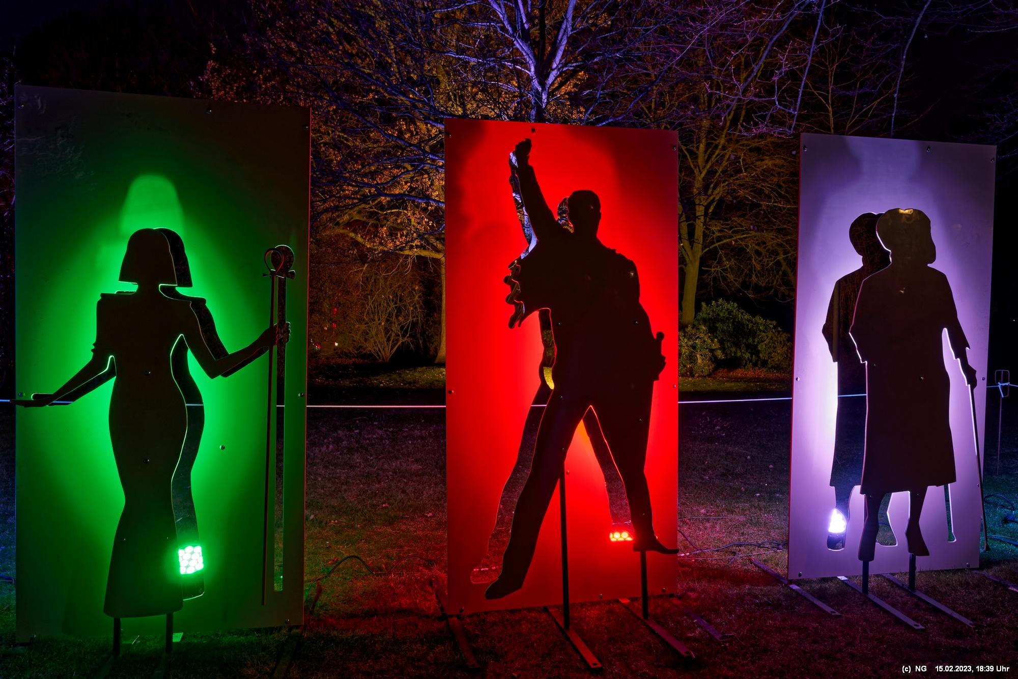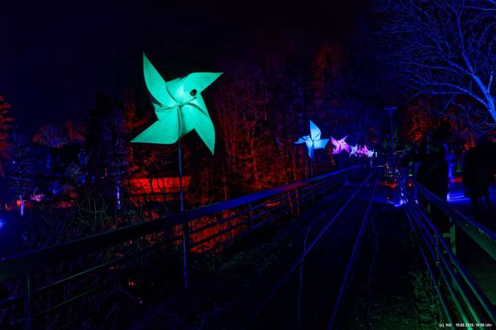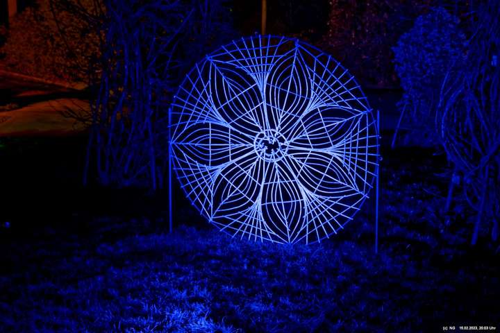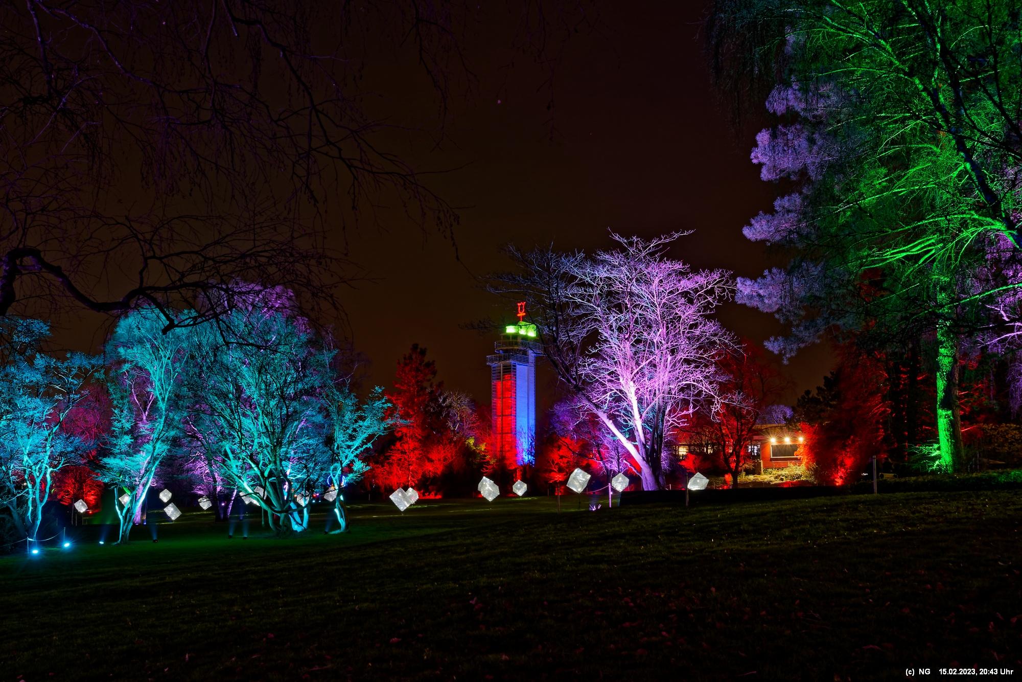 Es ging für knapp 3 Stunden dorthin. Wolfgang Flammersfeld und Reinhard Hartleif (world of lights, Unna) haben zum 13. Mal diese Lichtinstallation durchgeführt. Das Wetter spielte mit – und so haben wir uns auf den längeren Weg durch den Park gemacht. Das war nach den gesundheitlichen Problemen der letzten Monate gar nicht so leicht.