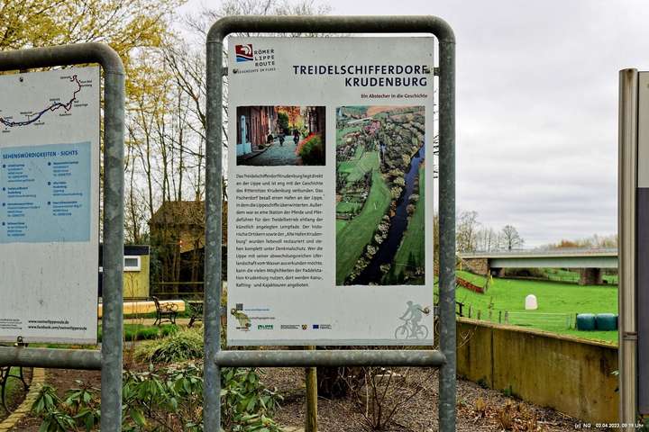 Viele Jahrhunderte waren auf der Lippe in Krudenburg getreidelter, d. h. mit Pferden flussaufwärts gezogener Segelschiffe unterwegs und für einen guten Unterhalt gesorgt. Anfang der 1900 der Jahre wurde dann auf der anderen Seite der Lippe ein neuer Kanal gebaut und es gab keine Lebensgrundlage mehr dort. Heute ist dieses kleine Dorf eine Idylle am nördlichen Rand des Ruhrgebiets. Nach den langen regnerischen Tagen konnten wir heute mal wieder trocken durch die Landschaft gehen.