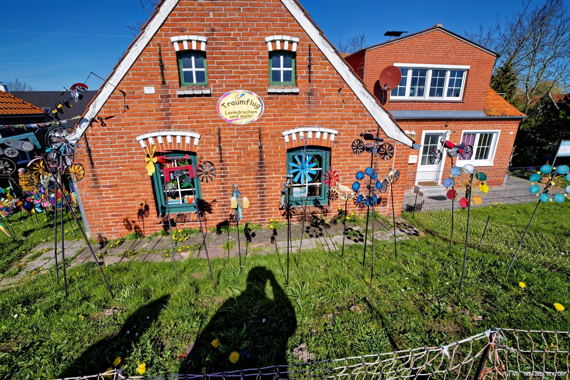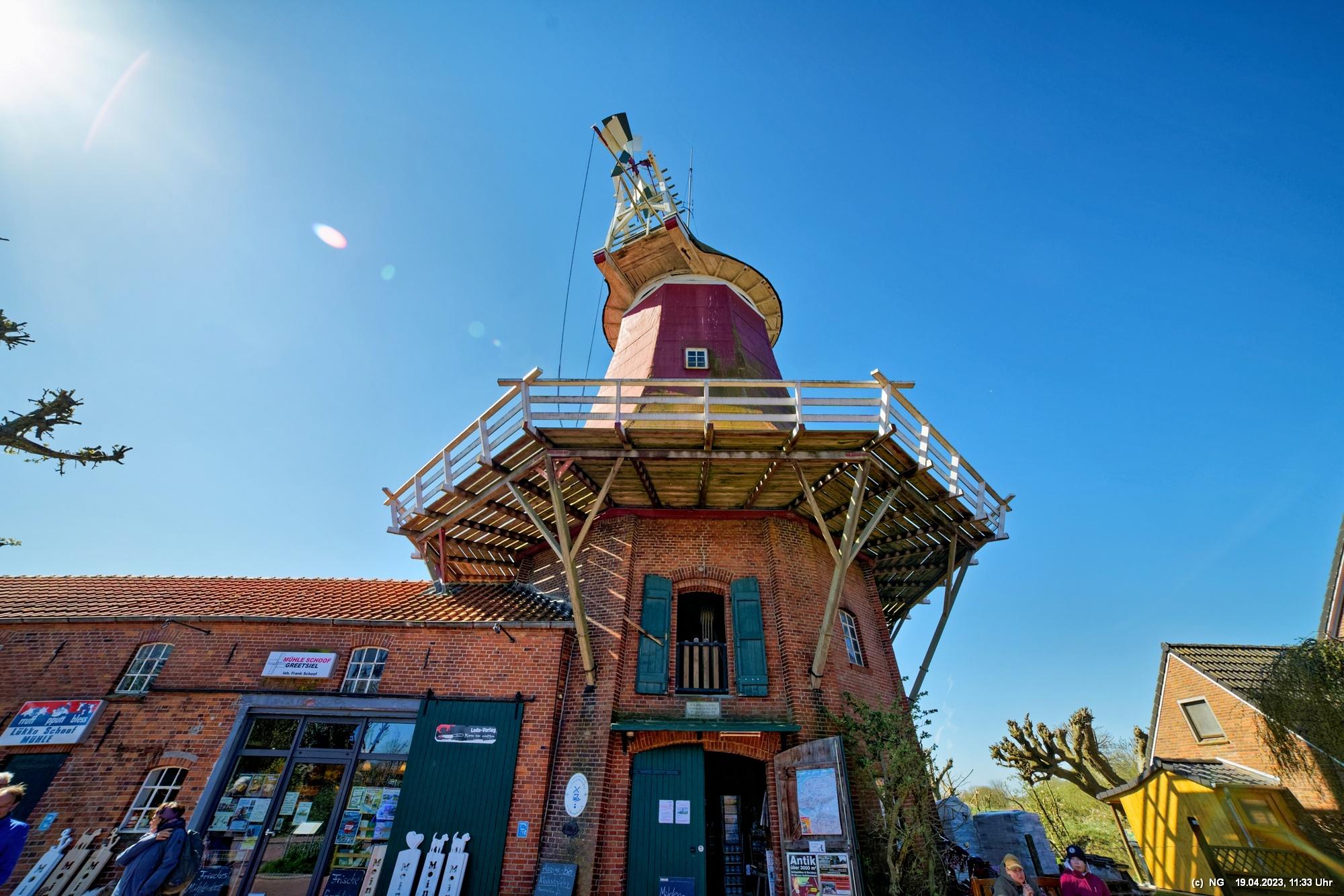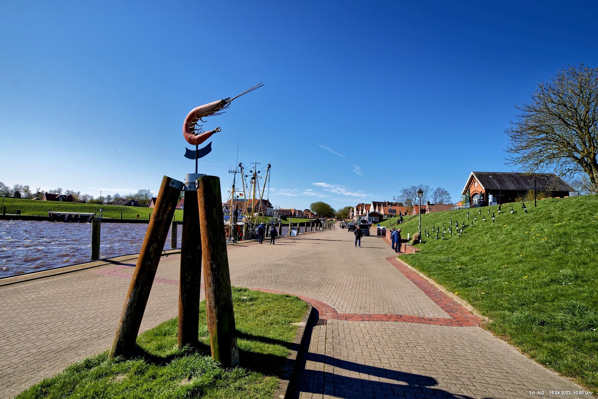 Hier lebt Ostfriesland, selbst außerhalb der großen Saison. Der Fischerhafen ist romantisch und ist Heimat einer großen Flotte. Die Fischer haben zurzeit das Problem, dass aufgrund von Umweltbestimmungen der EU der Schleppnetzfang im März 2024 eingestellt werden muss. Das bedeutet quasi ein Berufsverbot für die gesamte Küstenfischerei. Dann dann die Krabben aus dem nicht-EU-Ausland importiert werden sollen (scheint so, als wäre der Umweltschutz woanders egal), bringt an der ganzen Küste die Fischer auf die Palme. Sie haben großflächig schwarze Kreuze aufgestellt und erheblichen Widerstand angekündigt. Für Touristen ist Greestsiel aber ideal. Es nette Restaurants und viel Kunsthandwerk. Auf dem Weg zu den 2 Mühlen wird man eingeladen zu beschaulichen Bootsfahrten auf den vielen Kanälen. Man sieht Blumen überall. Eigentlich ist überall immer etwas los.