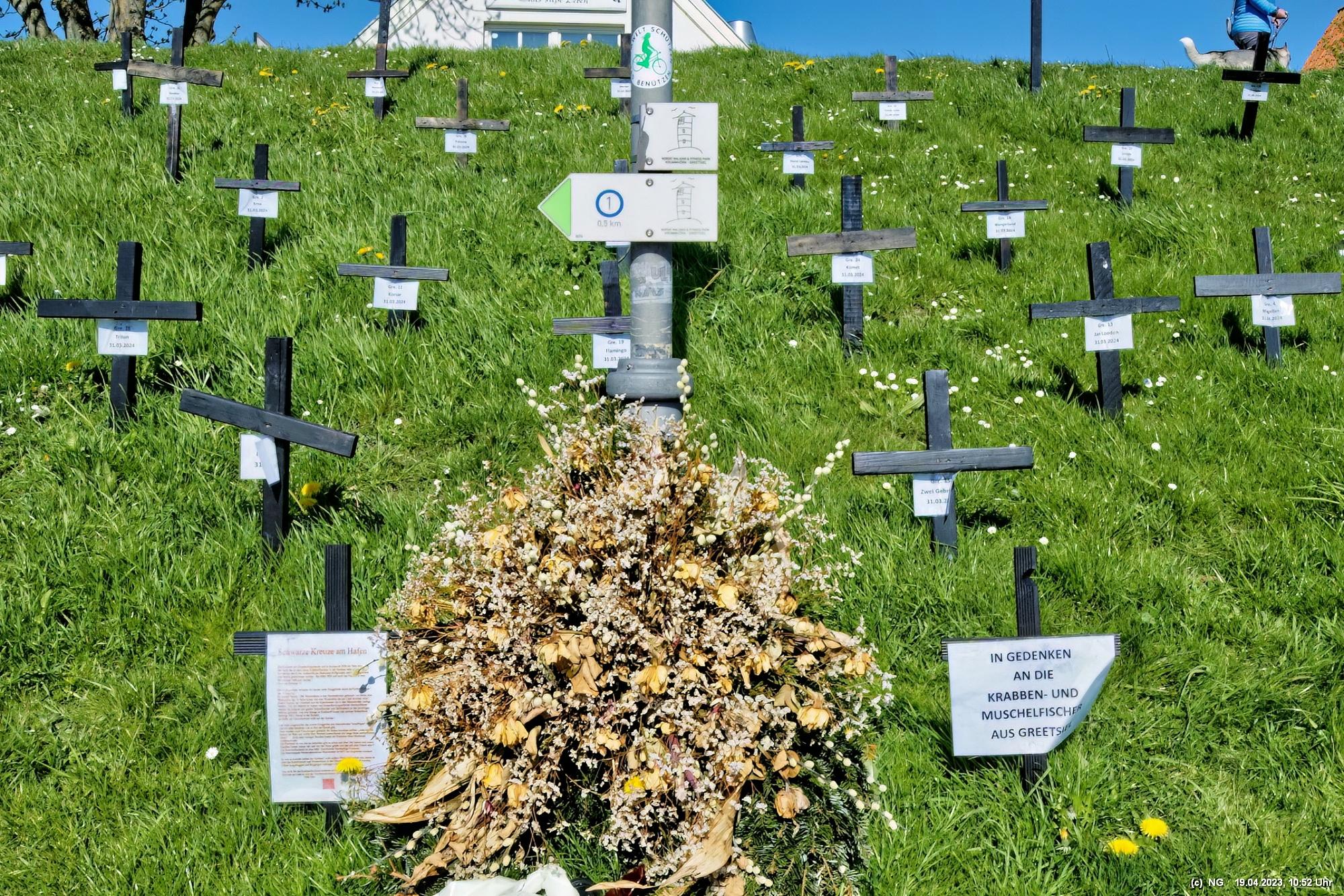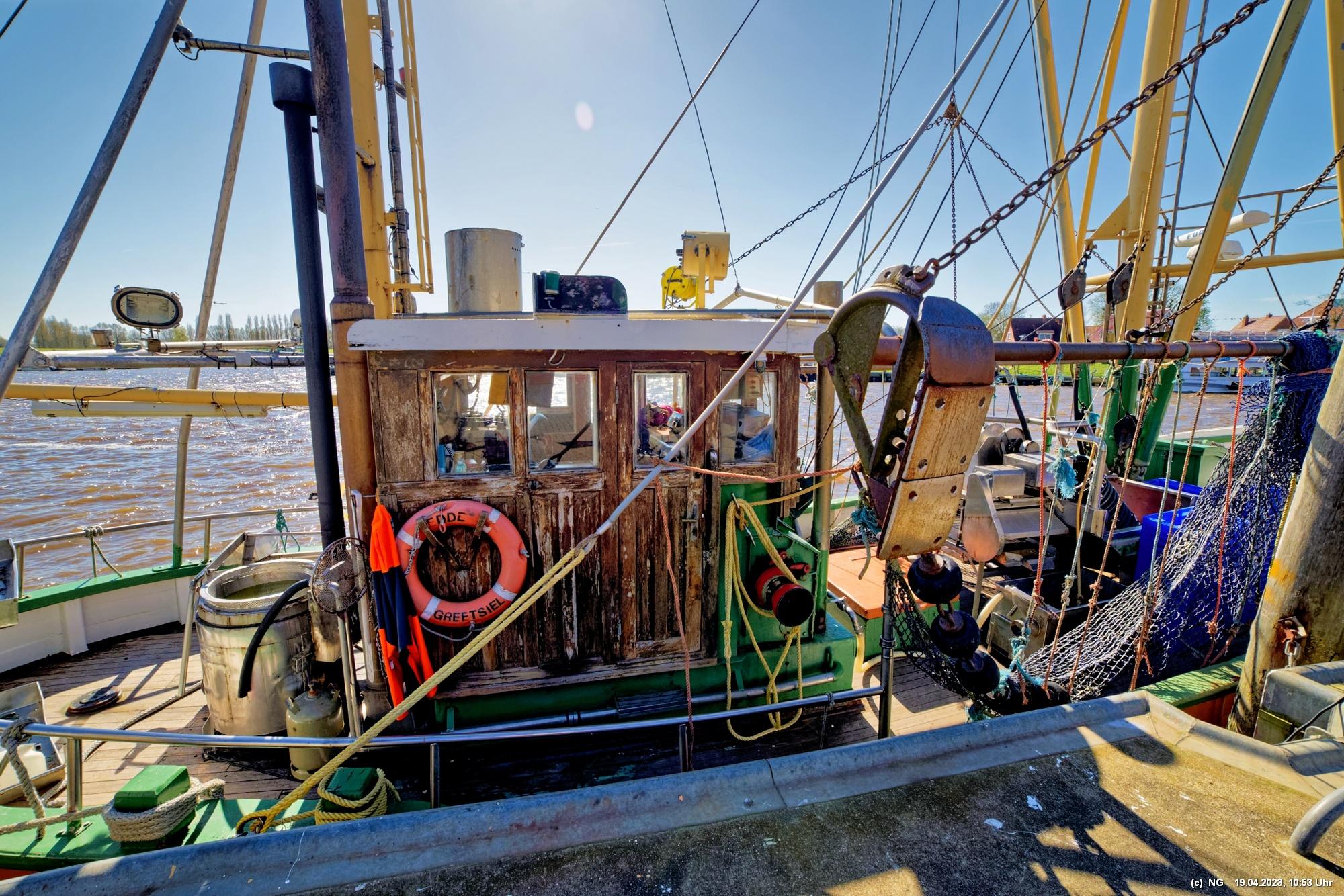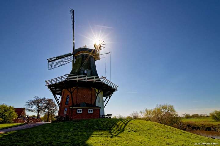 Hier lebt Ostfriesland, selbst außerhalb der großen Saison. Der Fischerhafen ist romantisch und ist Heimat einer großen Flotte. Die Fischer haben zurzeit das Problem, dass aufgrund von Umweltbestimmungen der EU der Schleppnetzfang im März 2024 eingestellt werden muss. Das bedeutet quasi ein Berufsverbot für die gesamte Küstenfischerei. Dann dann die Krabben aus dem nicht-EU-Ausland importiert werden sollen (scheint so, als wäre der Umweltschutz woanders egal), bringt an der ganzen Küste die Fischer auf die Palme. Sie haben großflächig schwarze Kreuze aufgestellt und erheblichen Widerstand angekündigt. Für Touristen ist Greestsiel aber ideal. Es nette Restaurants und viel Kunsthandwerk. Auf dem Weg zu den 2 Mühlen wird man eingeladen zu beschaulichen Bootsfahrten auf den vielen Kanälen. Man sieht Blumen überall. Eigentlich ist überall immer etwas los.