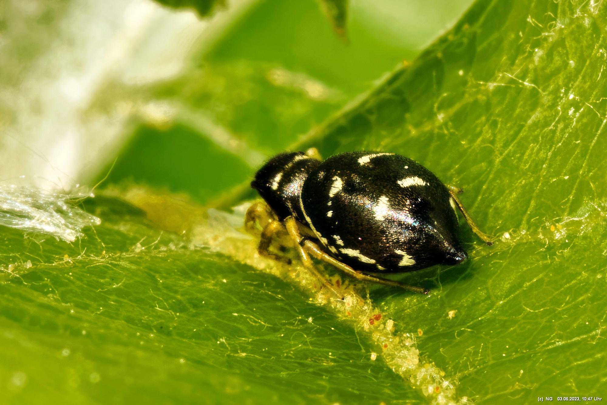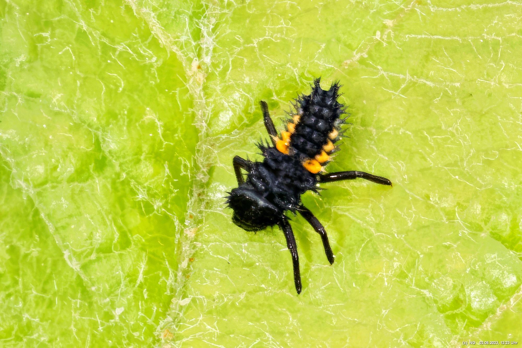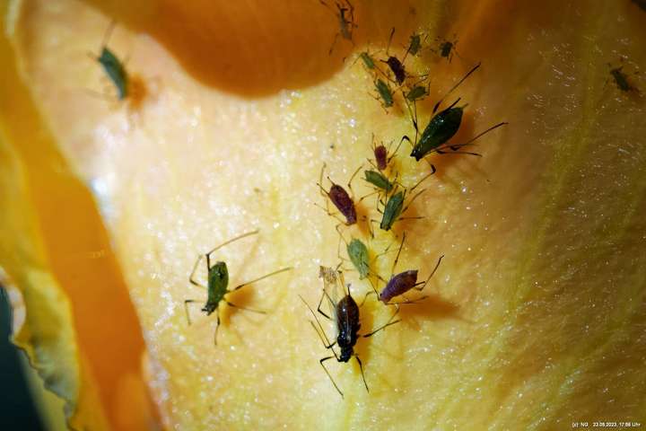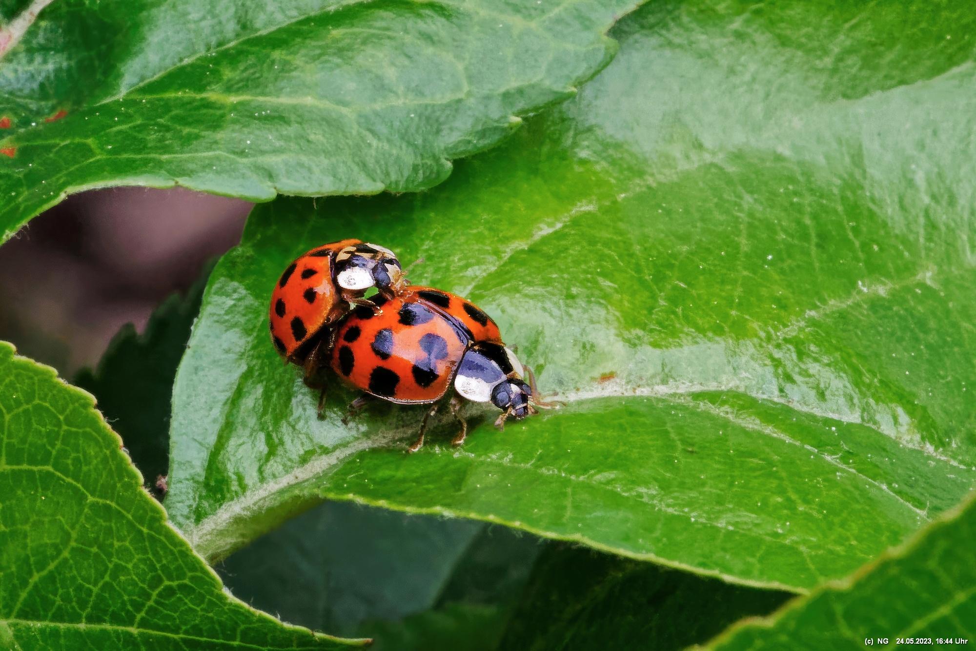 Und wenn man damit anfängt, lässt es einen plötzlich nicht mehr los. Man entwickelt regelrecht einen Blick für das Kleine und entdeckt immer wieder neues. Nach den Namen muss man recherchieren und findet dann: Feuerwanzen, Chinesische Marienkäfer und seine Larven, blauer Erlenblattkäfer, jede Menge Läuse in allen Farben, Lederwanze, Schnellkäfer, alle möglichen Fliegenarten, Schmetterlingspuppen, Rüsselkäfer, Bienen, eine kleine gelb-weiße Spinne nur knapp 2 mm groß und noch ganz viel mehr. Dazu kommt dann noch die Explosion der Pflanzen. Die Malven blühen, die Rosen fangen auch an, und viele andere, die man hier gar nicht alle aufzählen möchte. Interessant auch unsere blauen Kleintomaten, die schon erste Früchte angesetzte haben und unsere kleinen Gurken, die prächtig gedeihen. Wir freuen uns schon auf den Sommer.