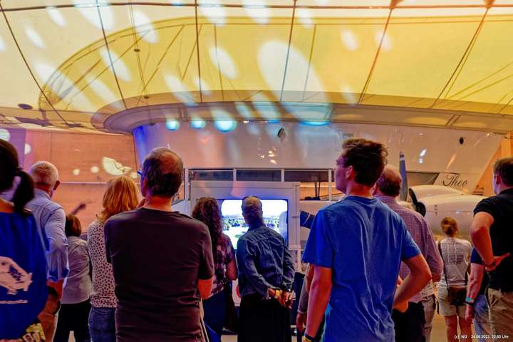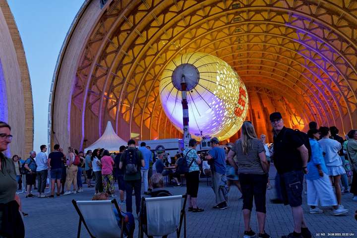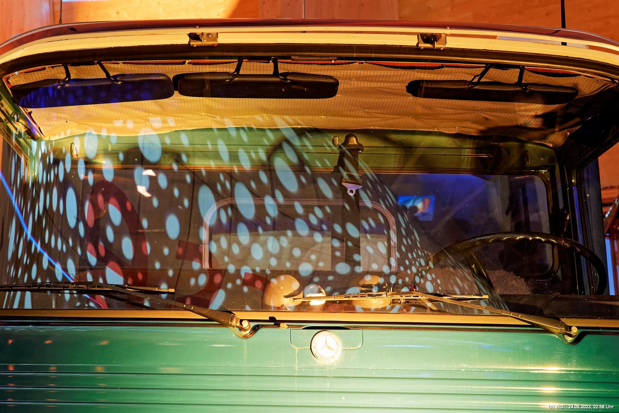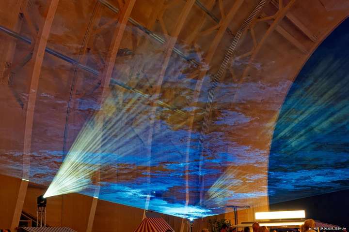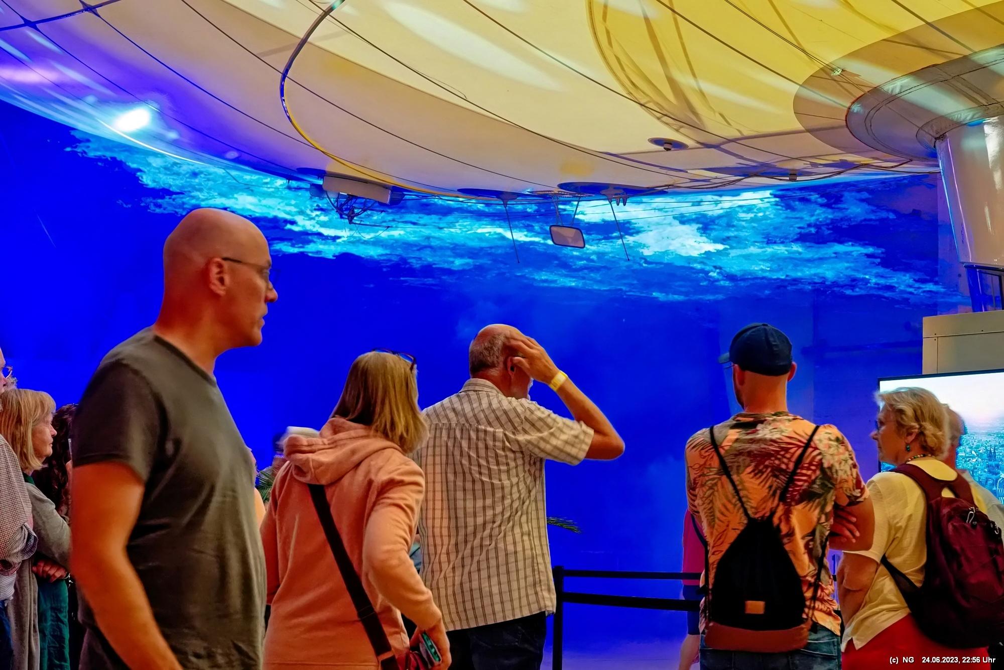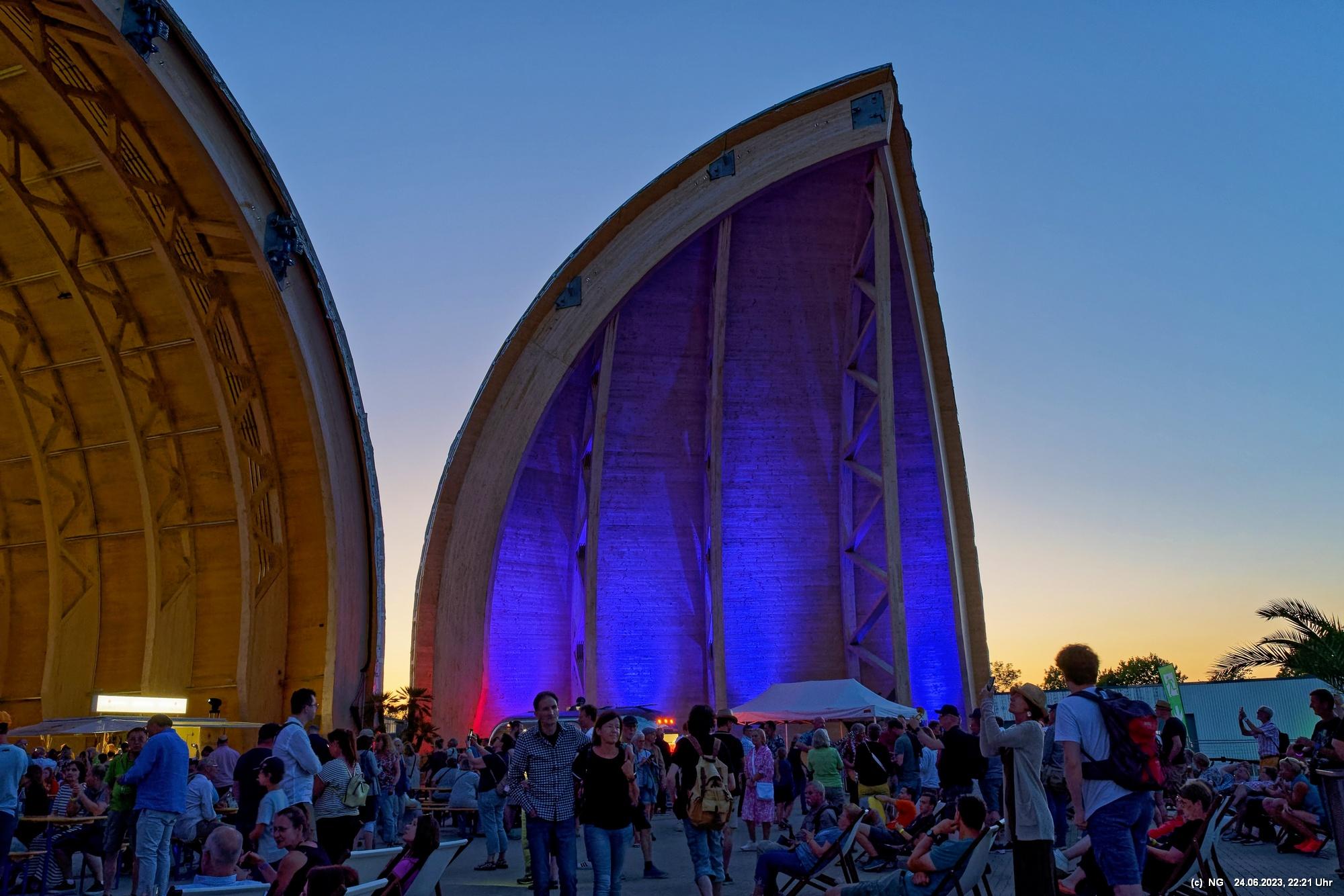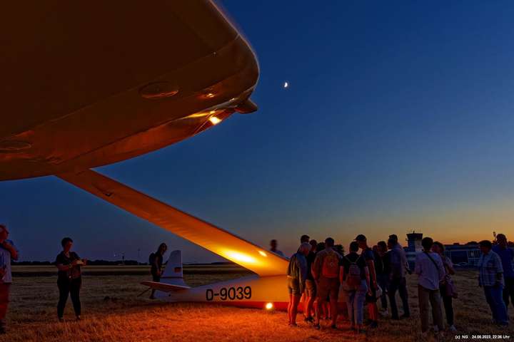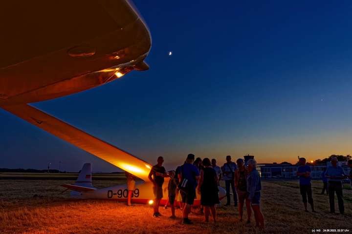 Wir sind dann spontan nach Mülheim zum neuen Luftschiffhanger gefahren und wurden eigentlich enttäuscht. Parkplätze waren sehr knapp und wir parkten relativ weit weg in einer kleinen Seitenstraße. Die Illumination war eigentlich nur Innenlicht, Kultur war nur eine kleine , 3-köpfige Musikgruppe und sonst gab es einige alte Autos mit Kennzeichen aus Bitterfeld. Es war eigentlich eine Sommerlonge mit auffallend vielen Liegestühlen.