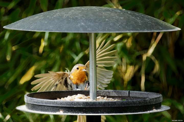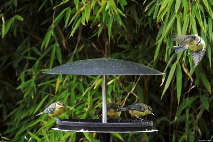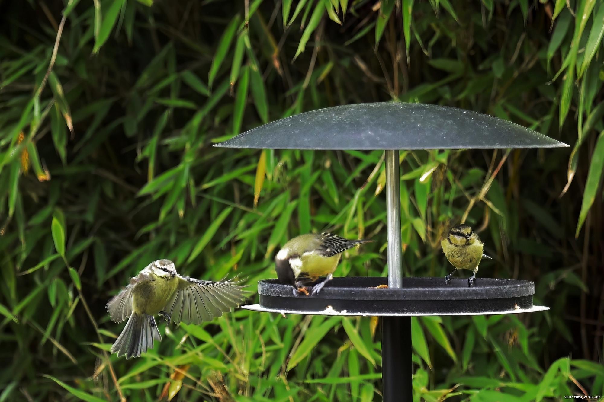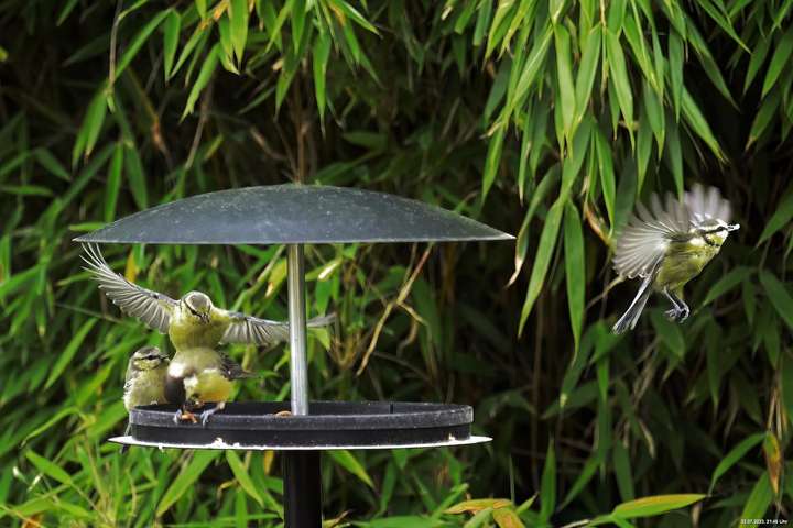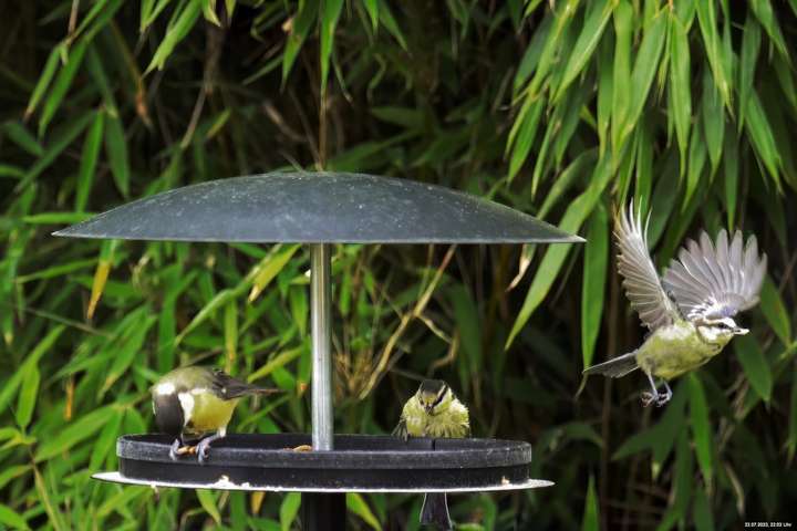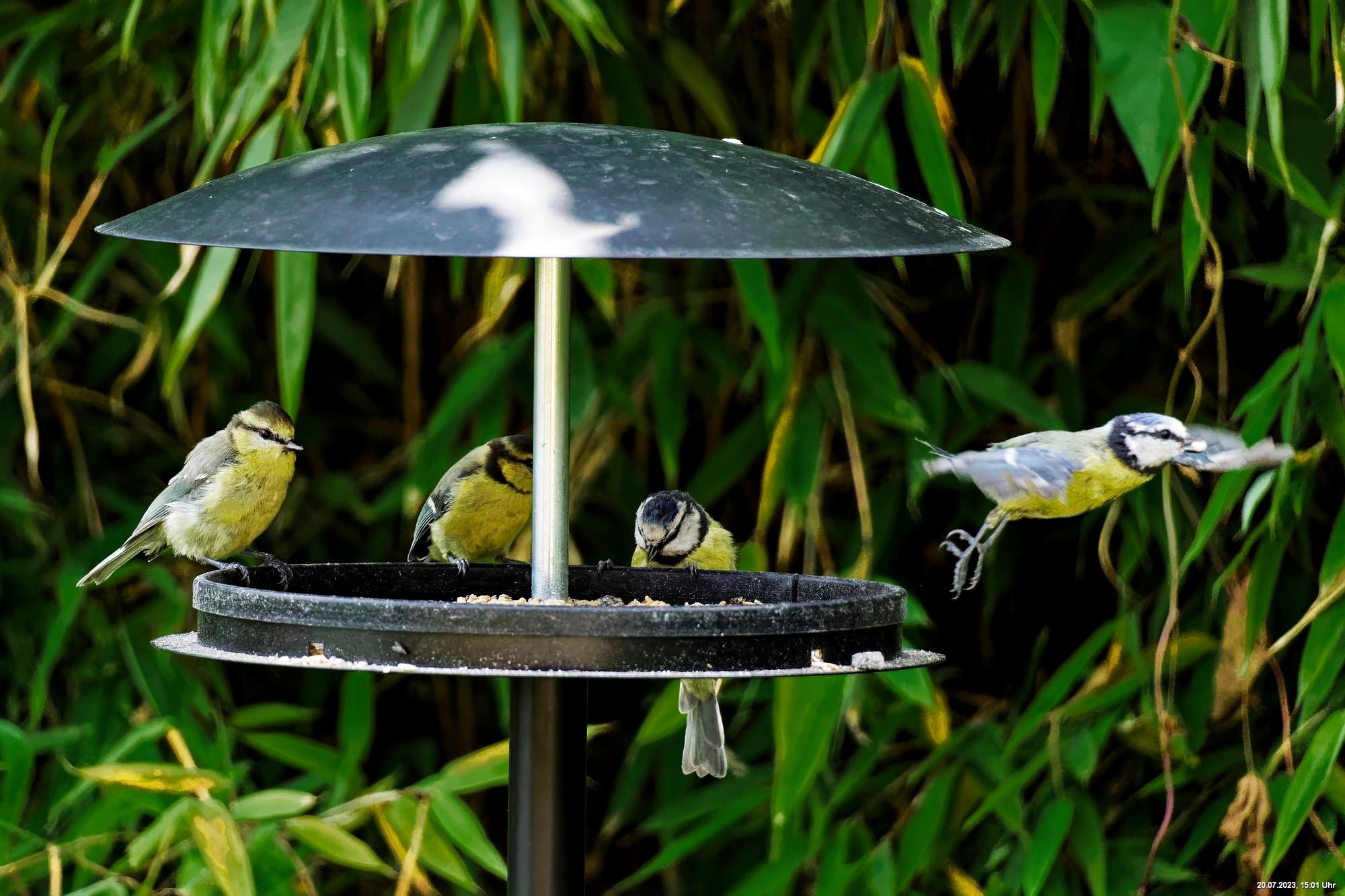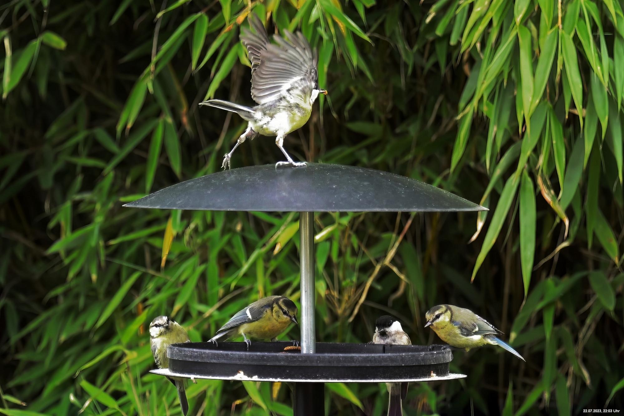 Nach dem enttäuschenden Schmetterlingsaufkommen in diesem Jahr haben wir eine kleine Futterstelle für Wildvögel im Garten eingerichtet.