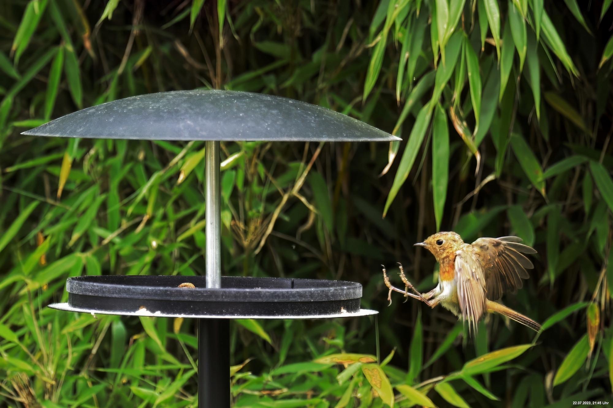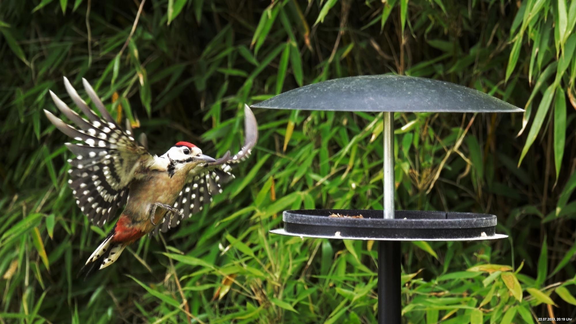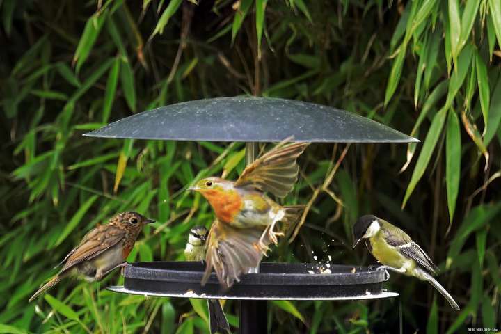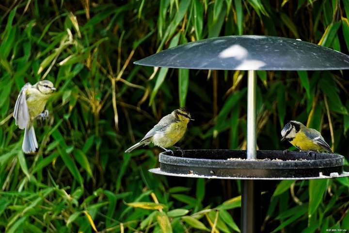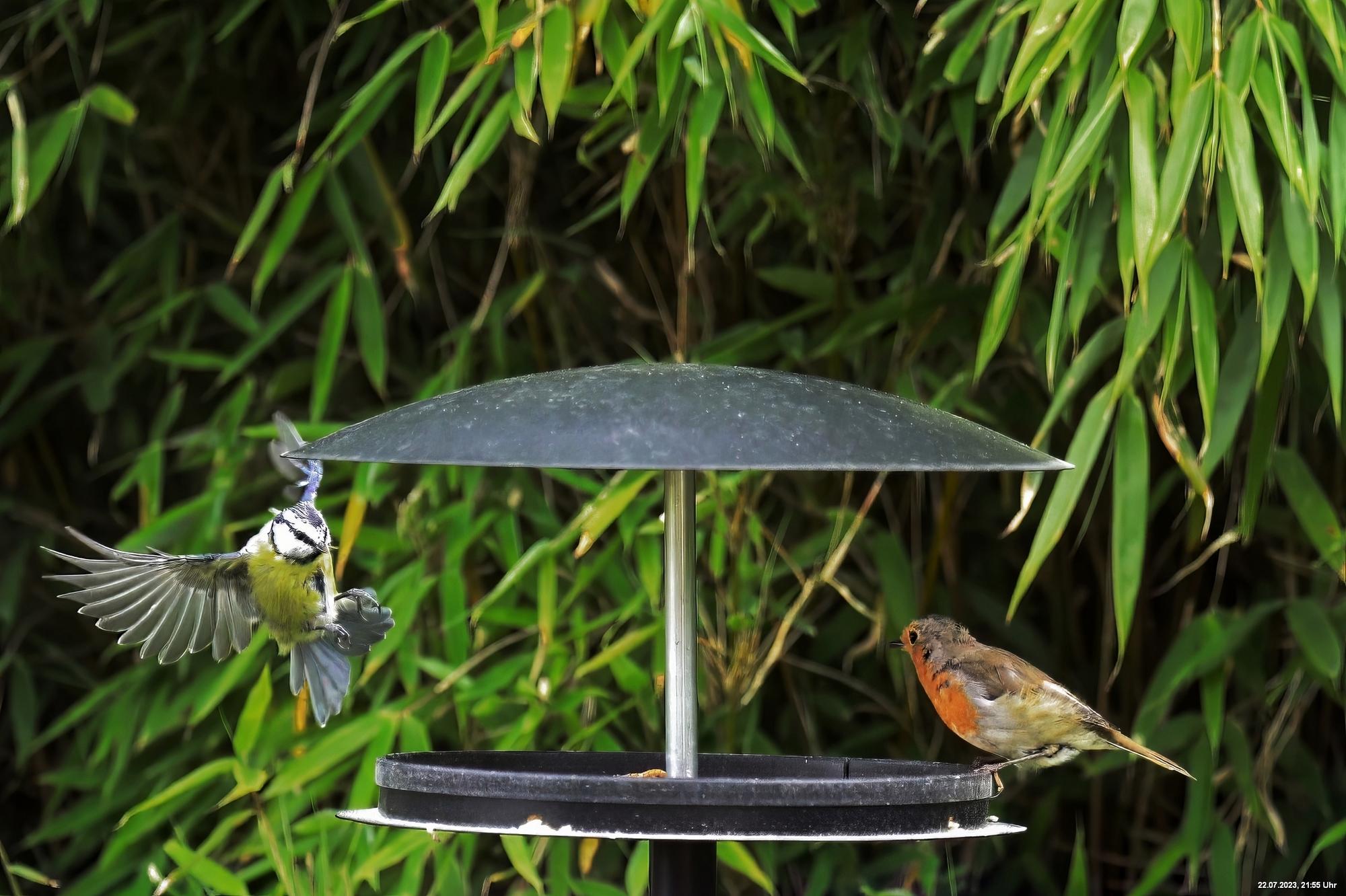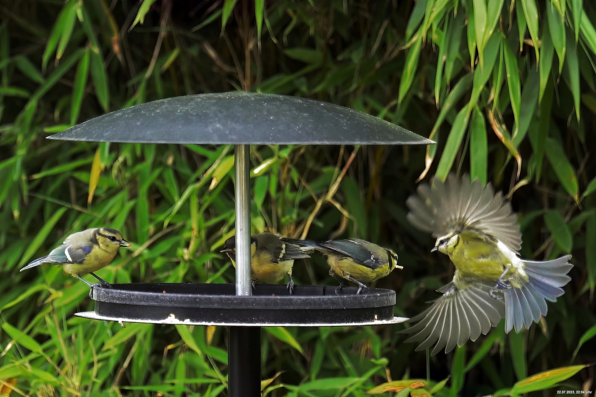 Nach dem enttäuschenden Schmetterlingsaufkommen in diesem Jahr haben wir eine kleine Futterstelle für Wildvögel im Garten eingerichtet.