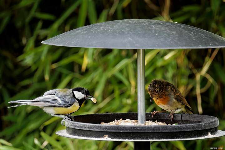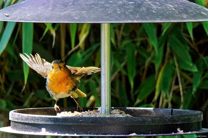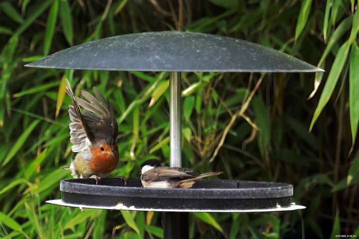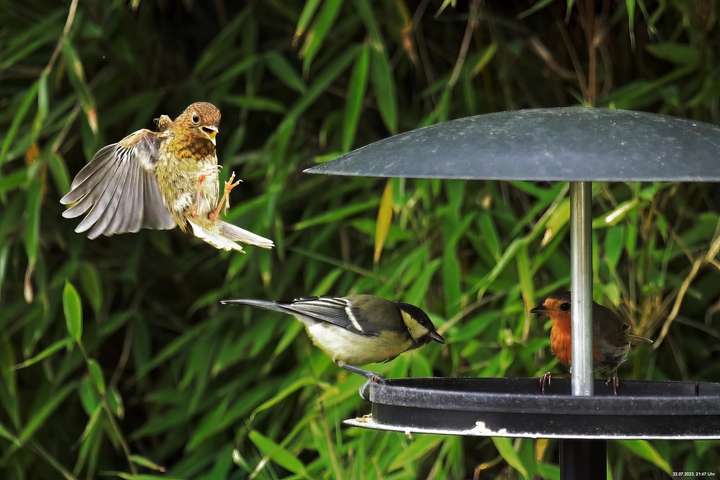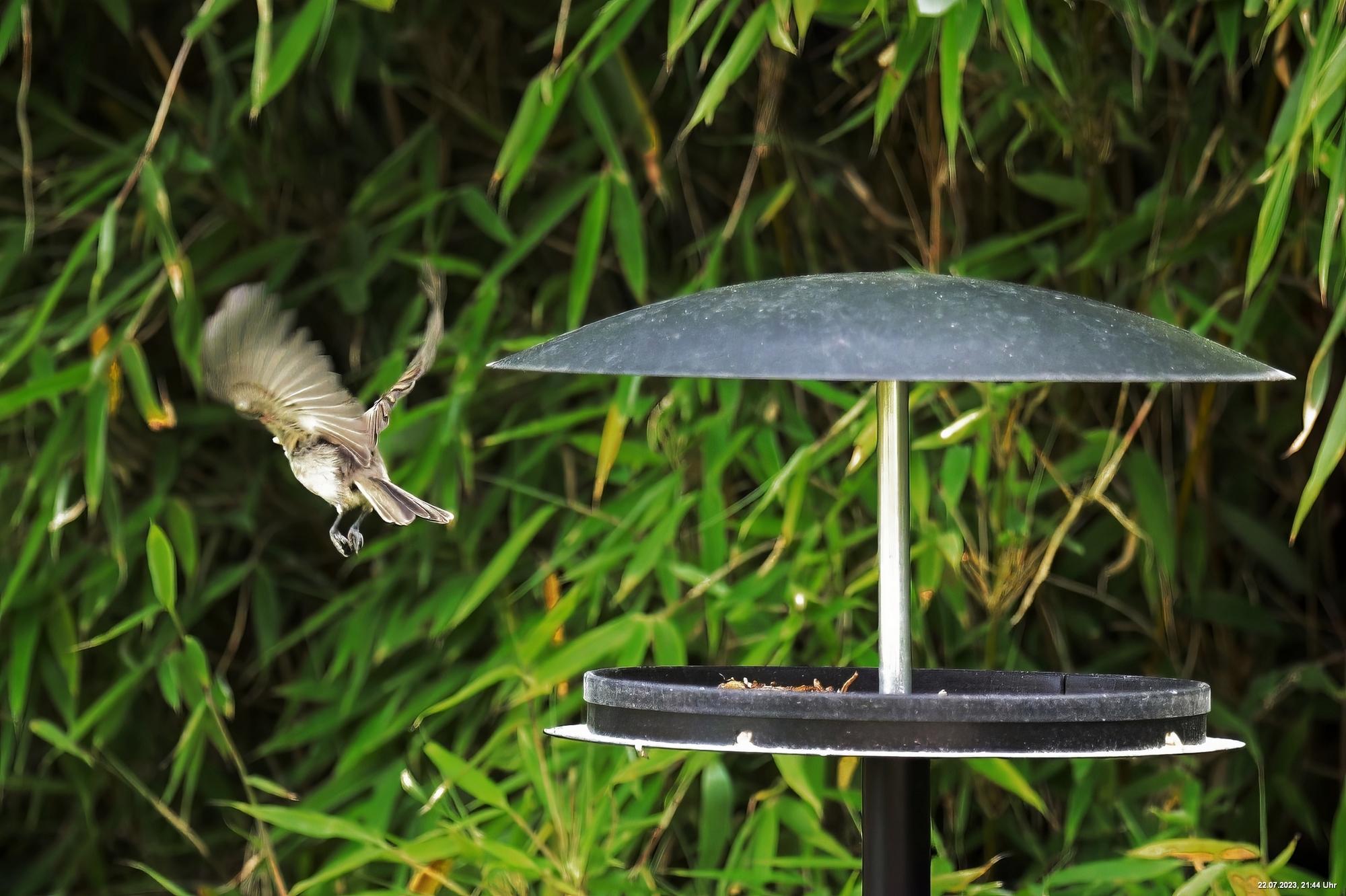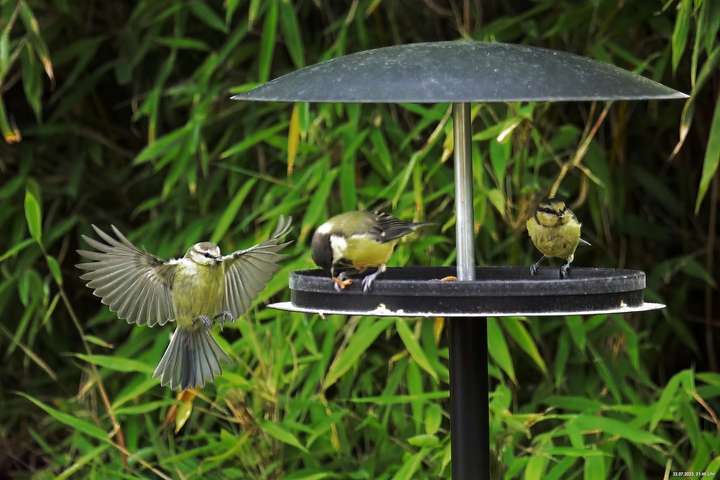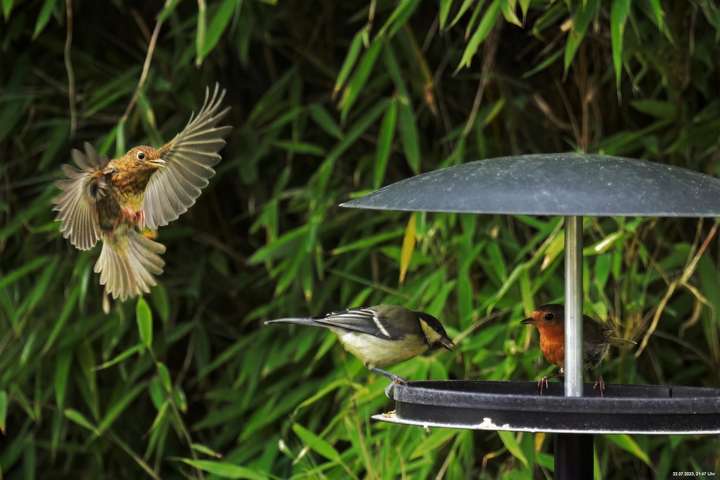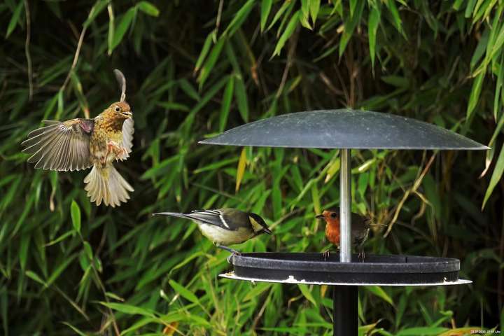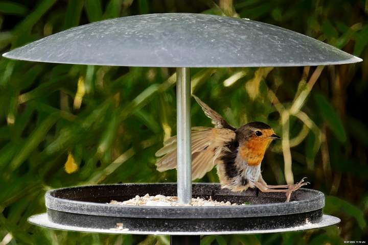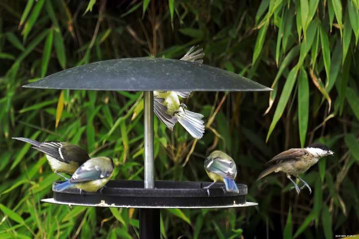 Nach dem enttäuschenden Schmetterlingsaufkommen in diesem Jahr haben wir eine kleine Futterstelle für Wildvögel im Garten eingerichtet.