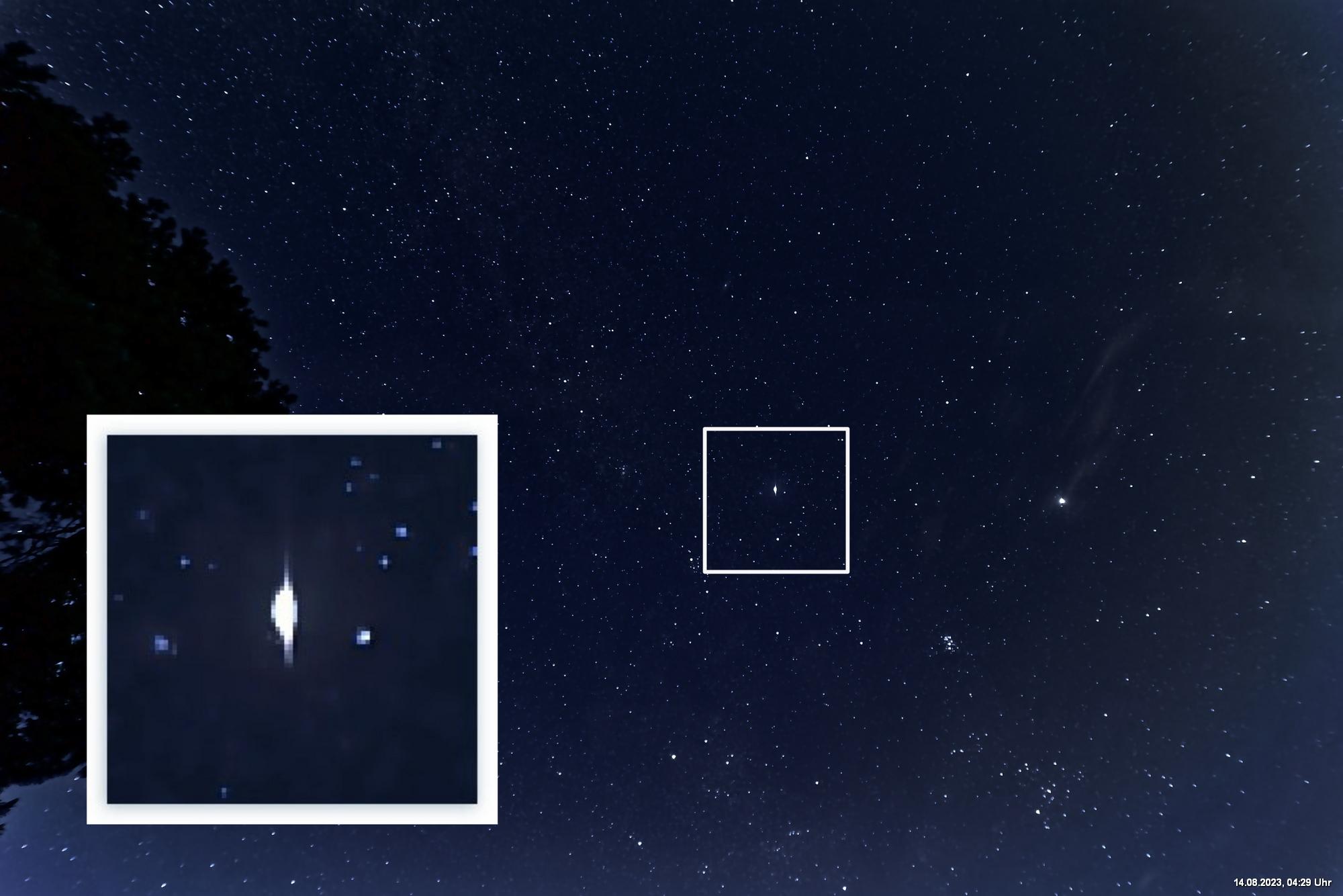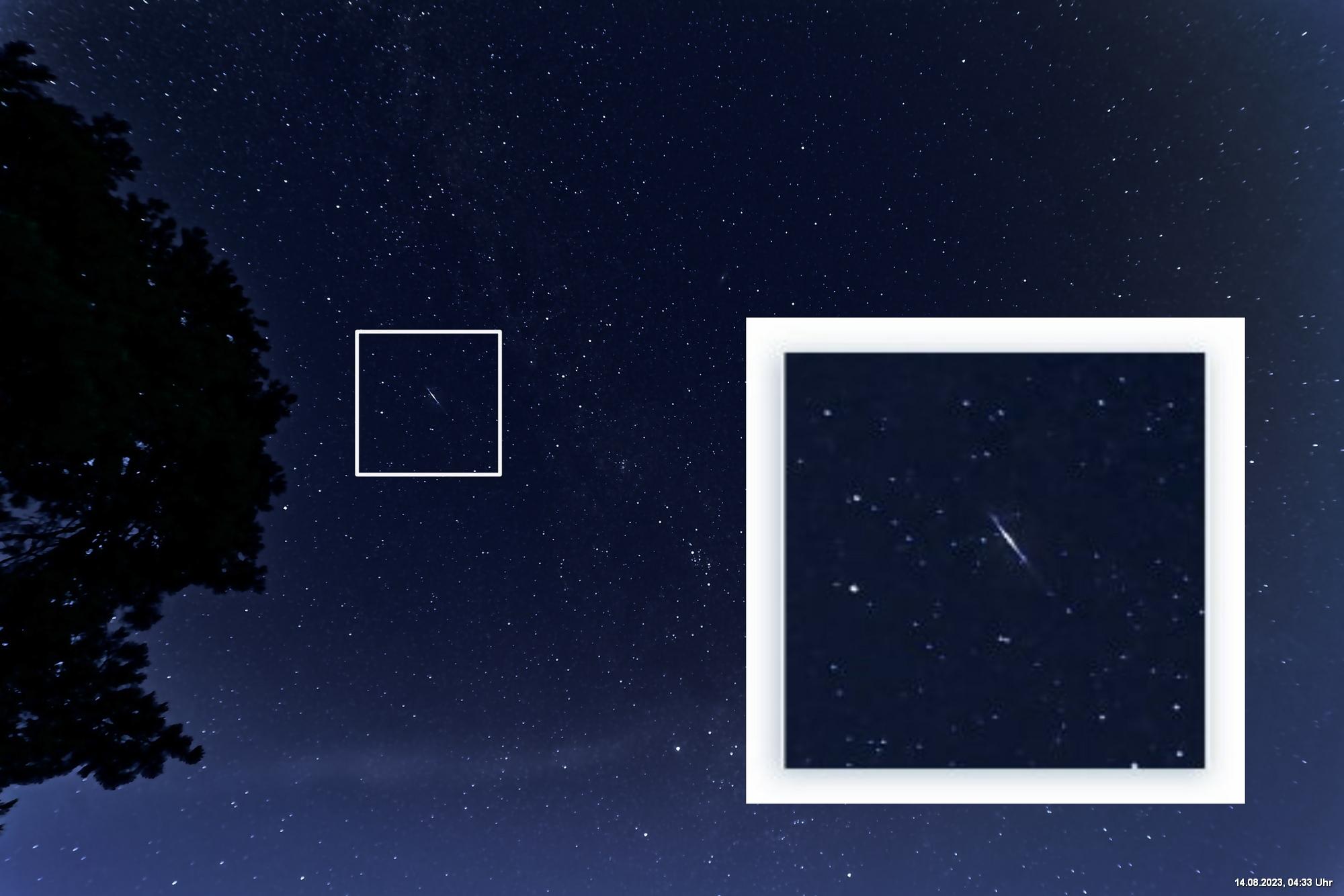 Ich wollte mal die Perseiden sehen. Sollten ja so um die 100 pro Stunde sein. Gesehen hab ich dann 3 schwache - in 2 Stunden. OK, einer war richtig hell, aber da war ich noch auf dem Hinweg. (Der dritte war nur teilweise in der Belichtungszeit)