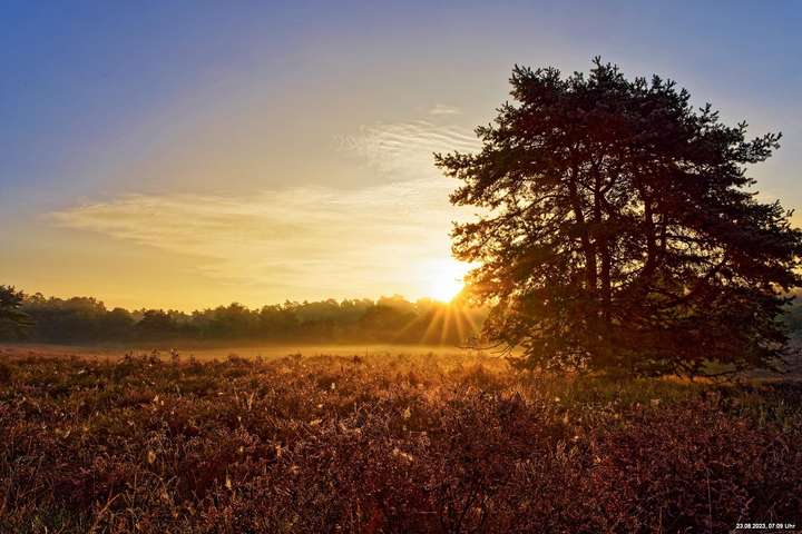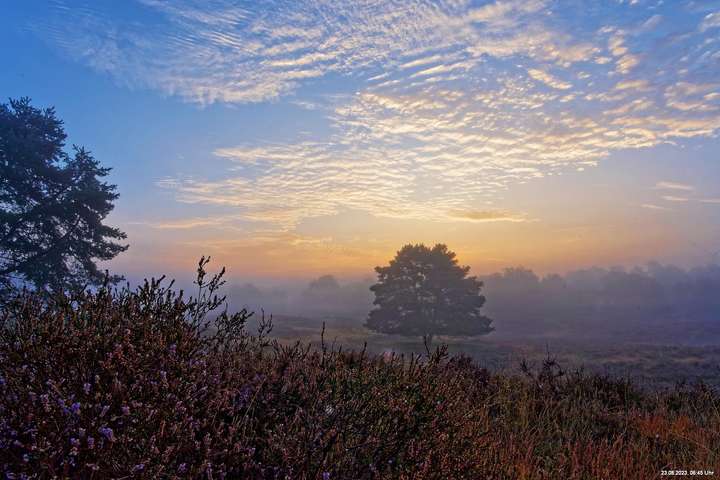 Das Sommerwetter scheint zu weichen. Die Heideblüte ist in vollem Gange.