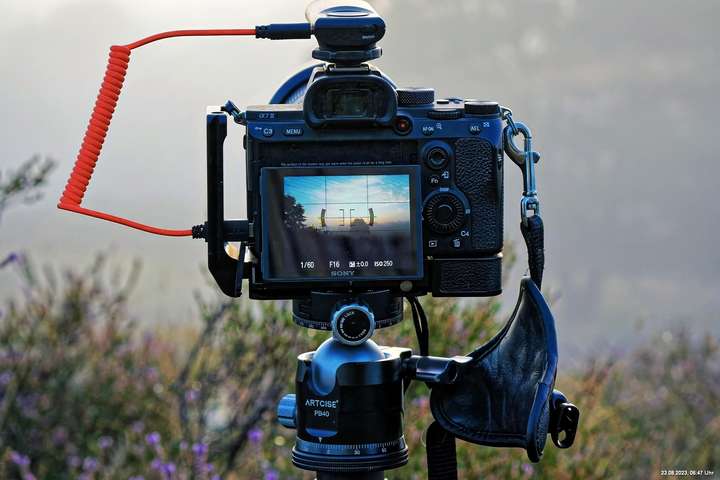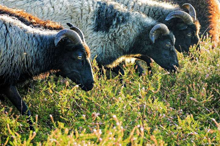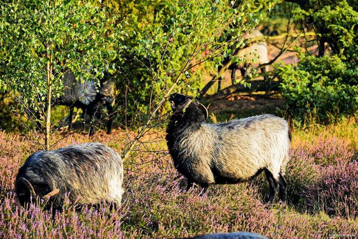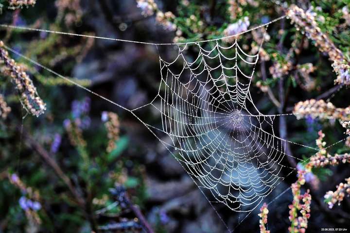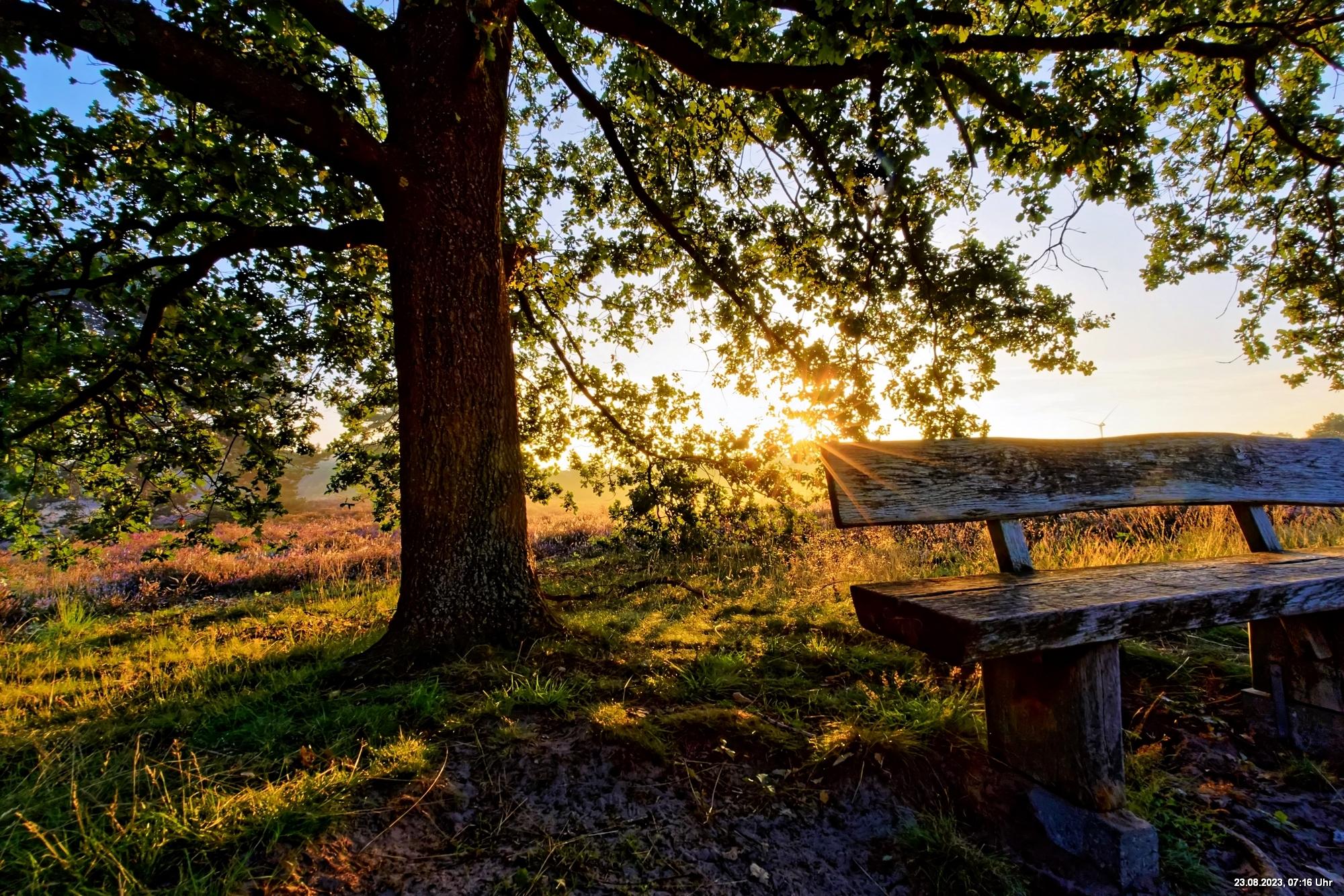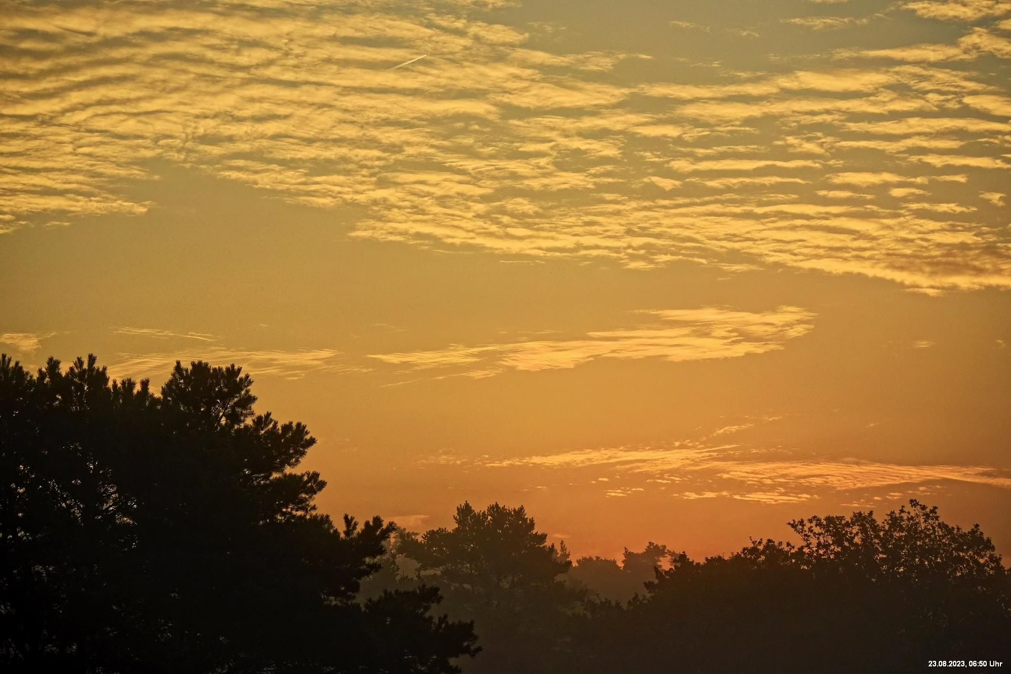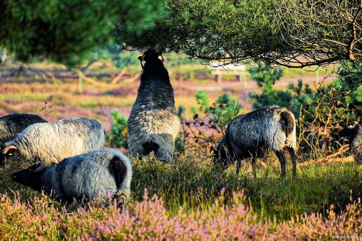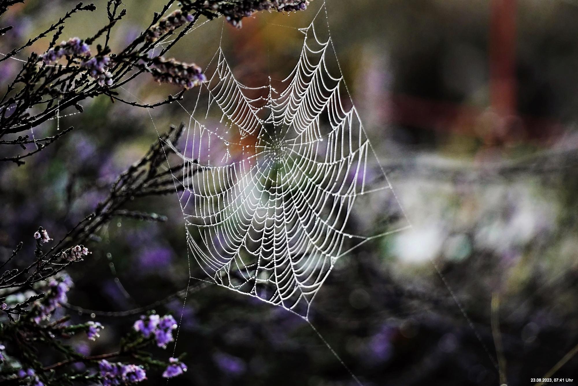 Daher ging es noch einmal bei gutem Wetter früh morgens zum Sonnenaufgang dorthin. Leichter Bodennebel hatte sich in den Tälern gebildet und am Himmel gab es leichte Wolkenstreifen. Beste Bedingungen also für einen Foto Walk. Es gab heute 3 interessante Themen: Sonnenaufgang, Spinnweben im Morgentau und die Säuberungsaktion der Heideschafe ganz nah am Weg. Es ist einfach schön dort!