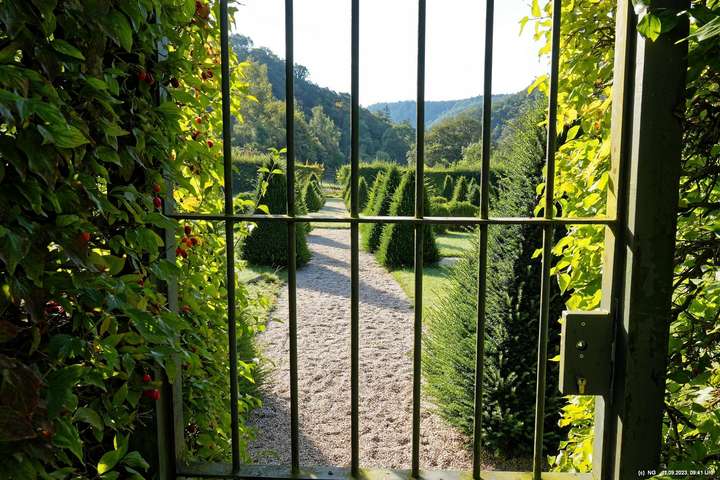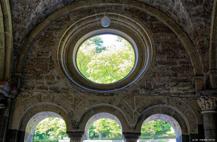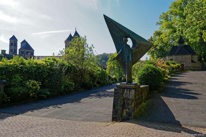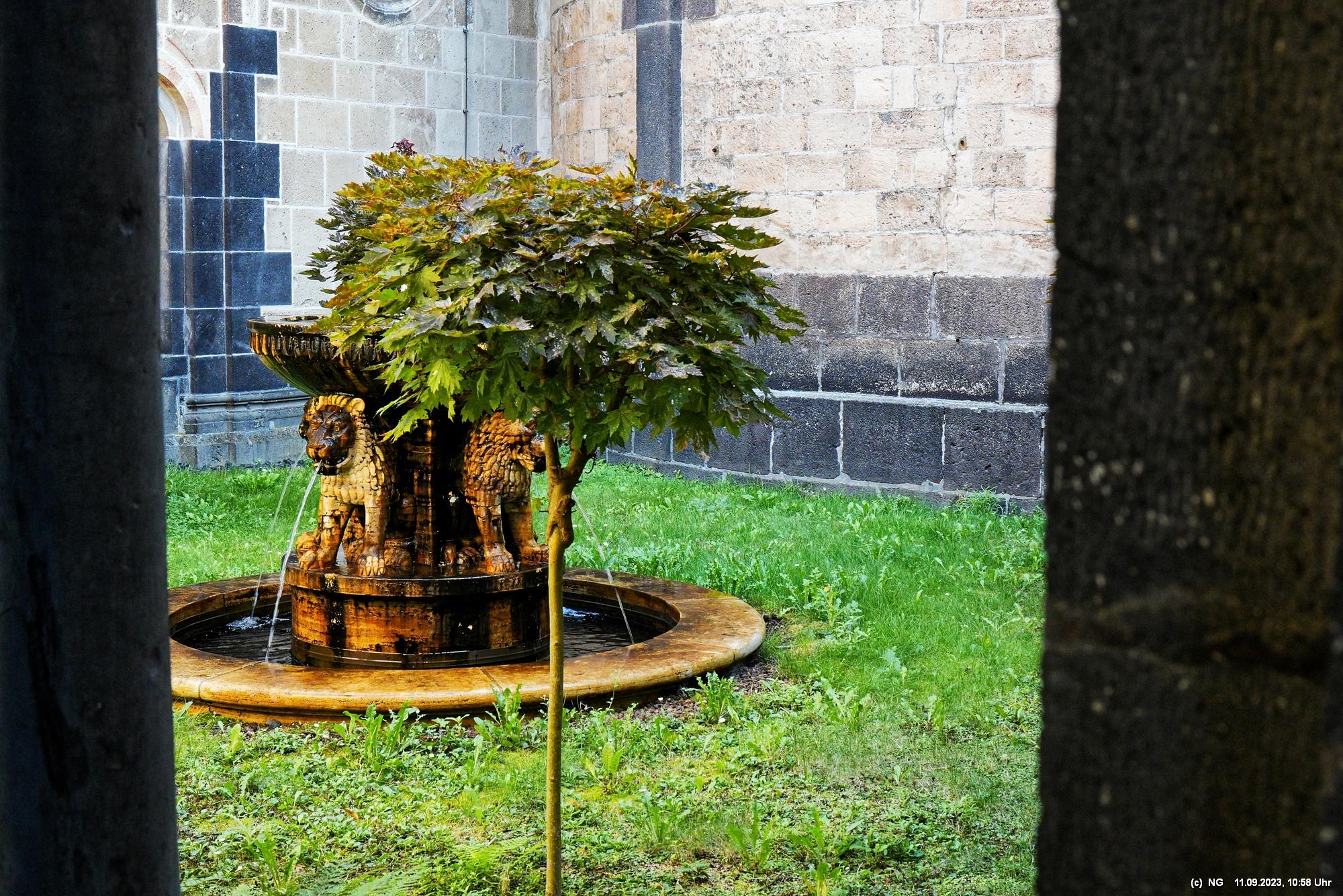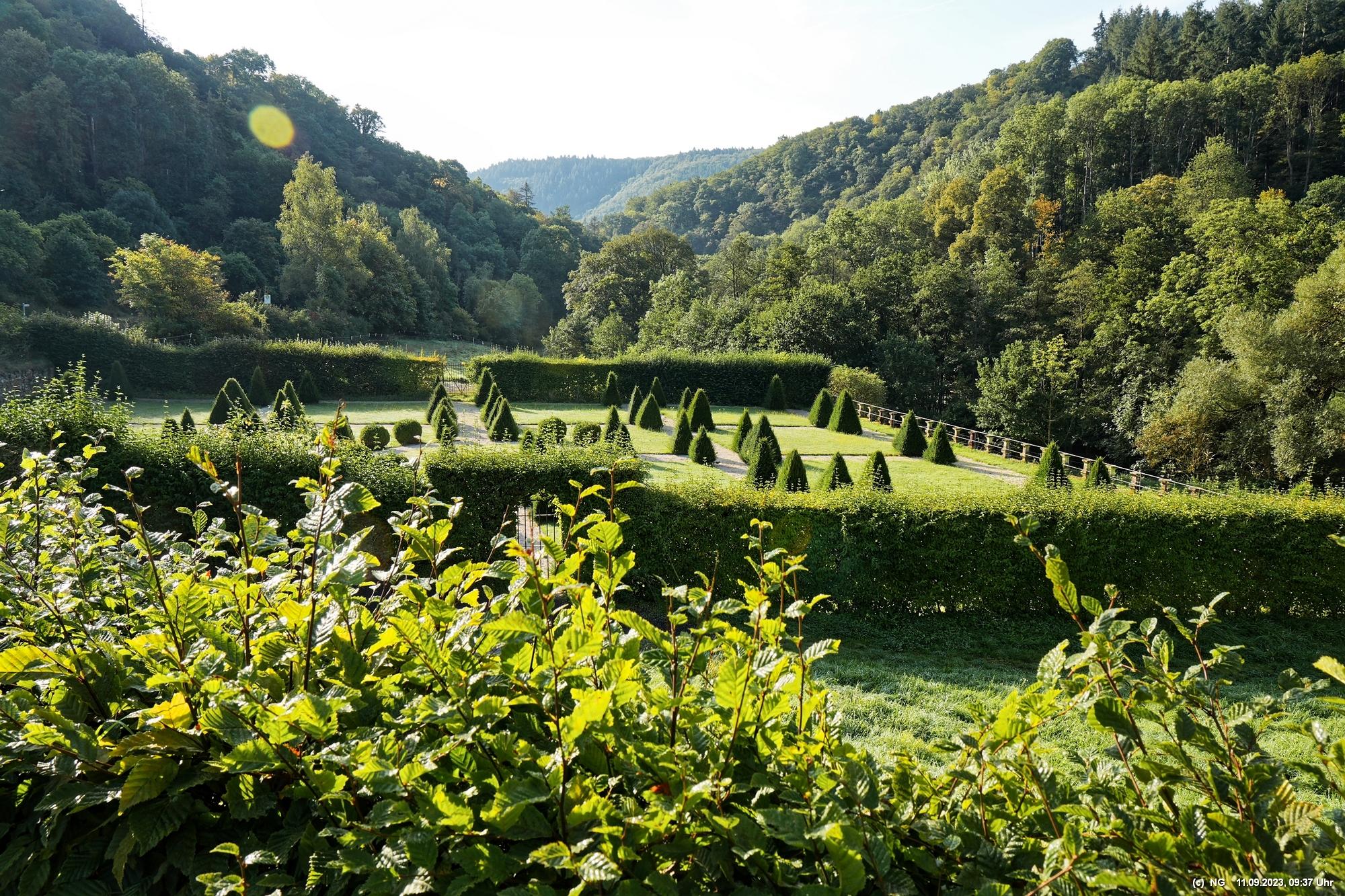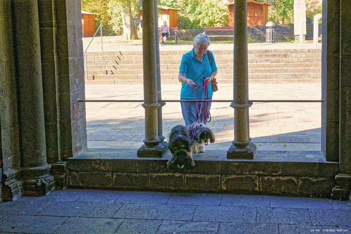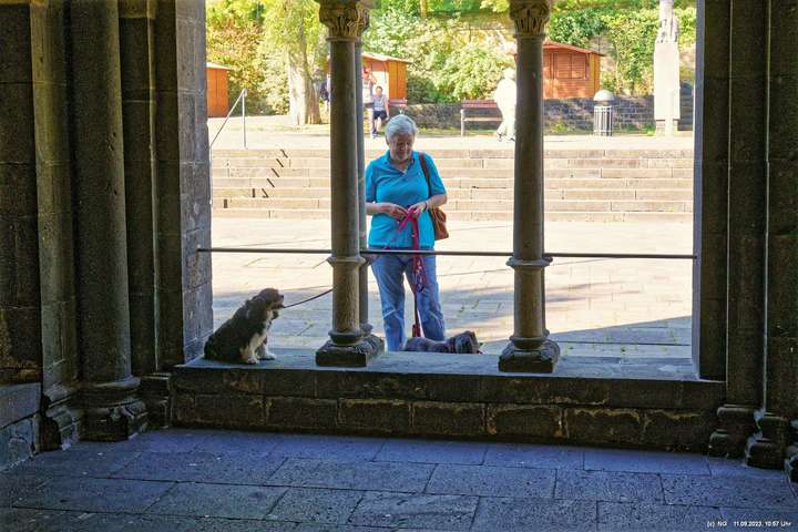 Das Schloss Bürresheim wird angepriesen, als sei es ein Märchenschloss - na ja. Es sieht ja gut aus, hat aber auch den Vorteil, dass es nie zerstört wurde. Das Tor war verschlossen. Auf dem Schild stand, dass es um 17 Uhr geschlossen - aber nicht, wann es geöffnet würde. Außerdem dürfen Hunde das gesamte Areal nicht betreten. Dafür verleihen wir wieder einmal symbolisch eine schwarze Kacktüte! Auf dem Heimweg statteten wir dann dem Kloster Laach mal wieder einen Besuch ab. Man kann zwar nicht viel sehen dort, aber irgendwie lohnt ein Besuch doch immer.