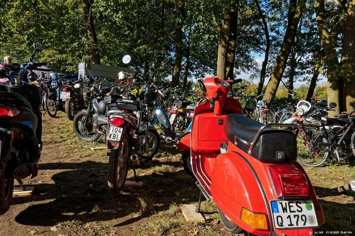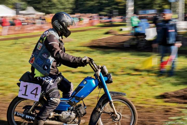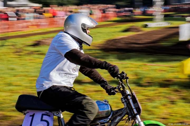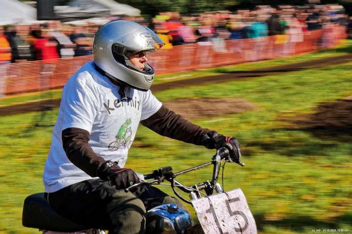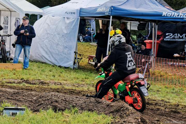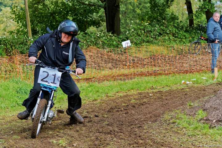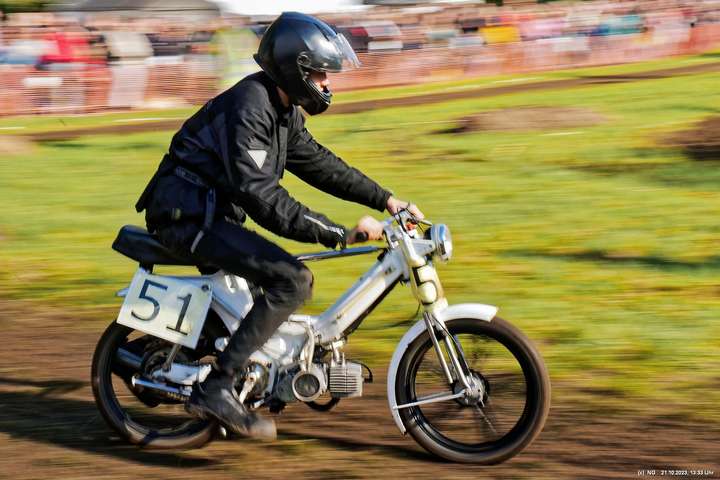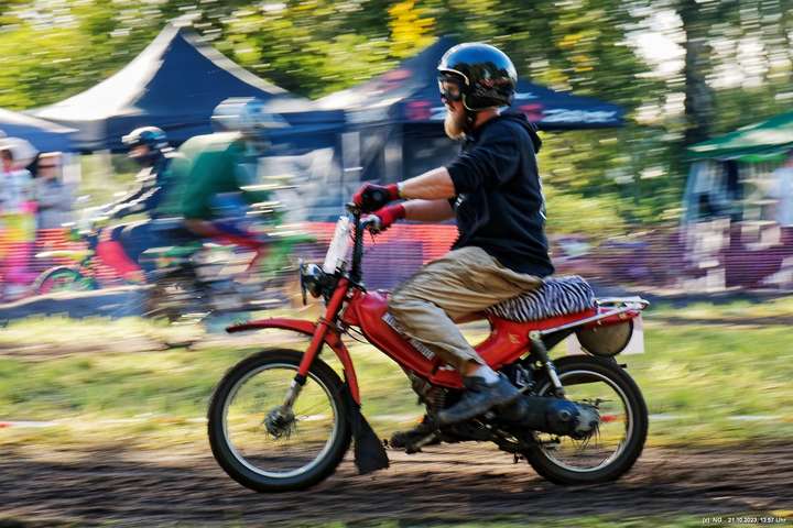 Es gelten die alten Regeln für Mofas: Max. 50 cm³. Original Rahmen, montierte Pedale mit Starterfunktion, montierter Auspuff usw. Die Veranstalter haben sich wieder ganz gewaltig und sehr erfolgreich ins Zeug gelegt und alles perfekt organisiert - Gratulation dafür. Am Start für ein 2-Stunden-Rennen um die größte Anzahl von Runden waren einige wenige Ehrgeizige, einige Salonfahrer und viele aus Spaß an der Sache. Die vielen Zuschauer waren rundum begeistert. Das Wetter war blendend. Der doch recht heftige Regen am späten Vormittag hat kaum Spuren hinterlassen.