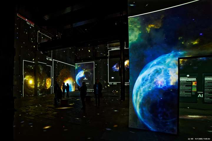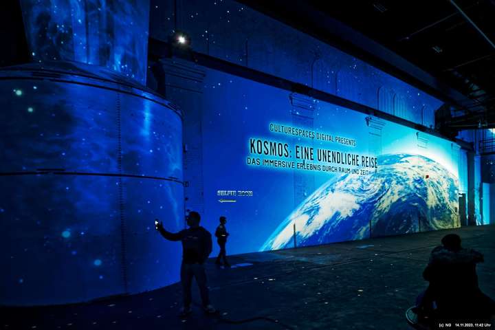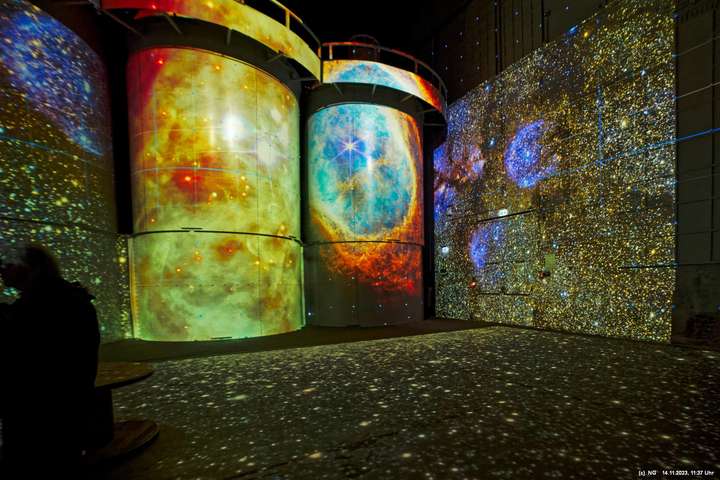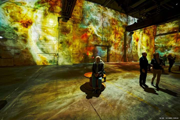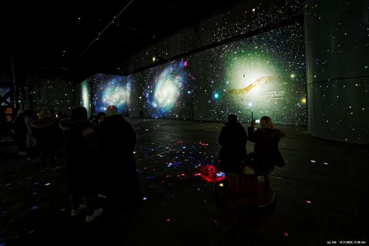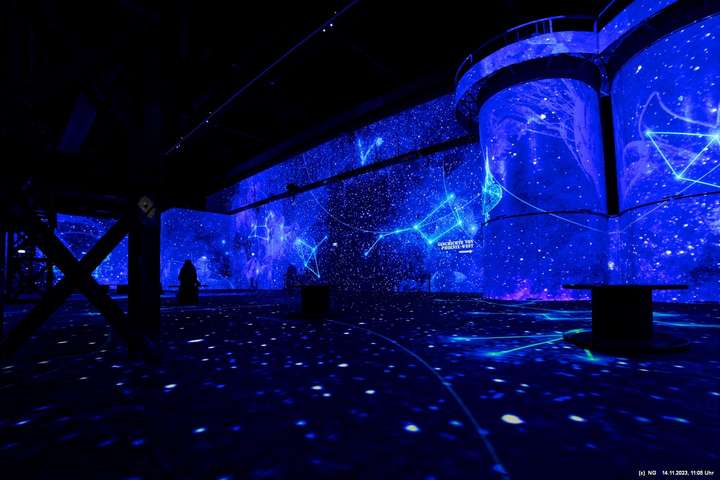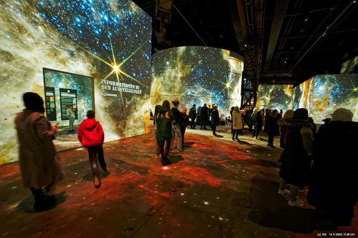"Kosmos": Eine unendliche Reise - Sonderausstellung auf 5.600 m² Projektionsfläche (und der Boden spielt mit): das immersive Erlebnis durch Raum und Zeit.