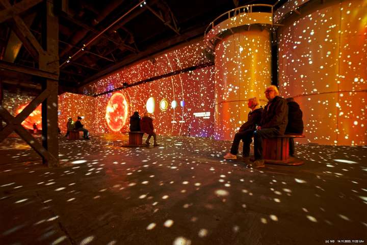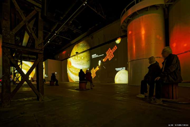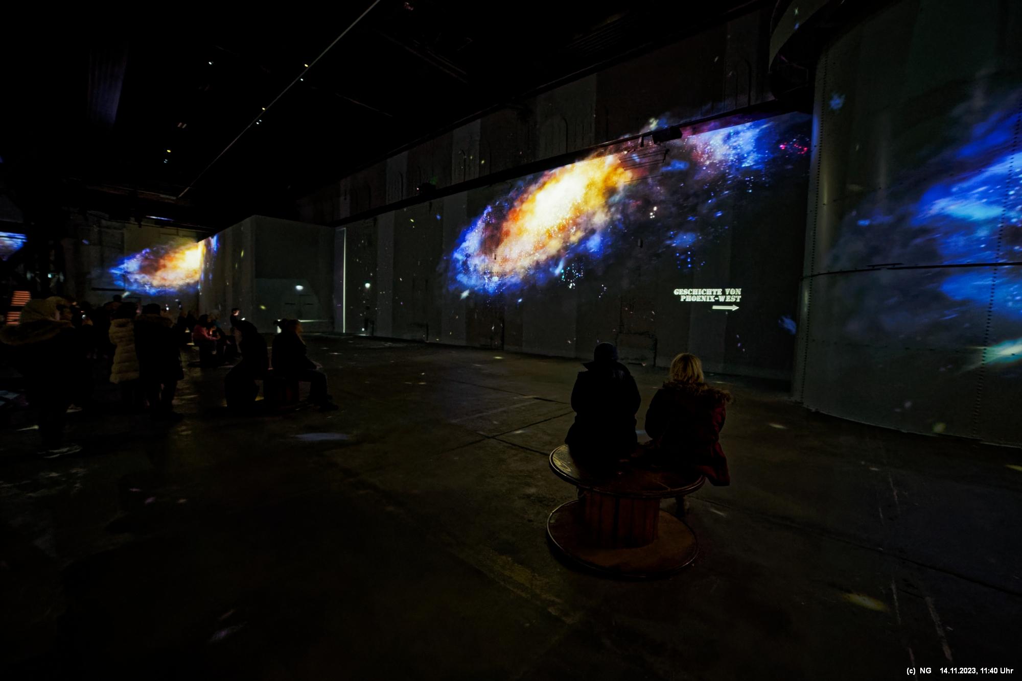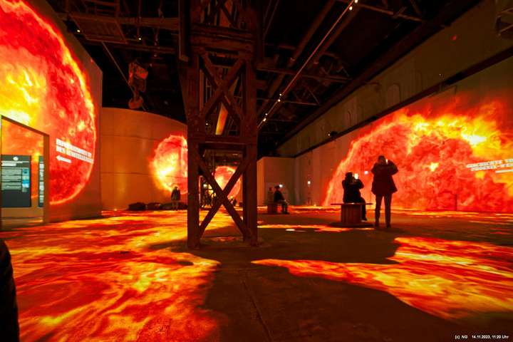 Unser 2. Besuch an diesem so jungen, geschichtsträchtigem Ort mit digitaler Kunst. Wir tauchen ein in ein Labyrinth aus Sternen, Planeten, Monden und Supernovae. Eine einzigartige Entdeckungsreise führte uns bis in die tiefsten Weiten des Weltraums, weit über unser eigenes Sonnensystem hinaus. Wir waren inmitten beeindruckender Sonneneruptionen! (Originalbilder aus dem All, u.a. von der französischen Raumfahrtbehörde CNES, auf ein noch nie dagewesenes Weltraumabenteuer.)