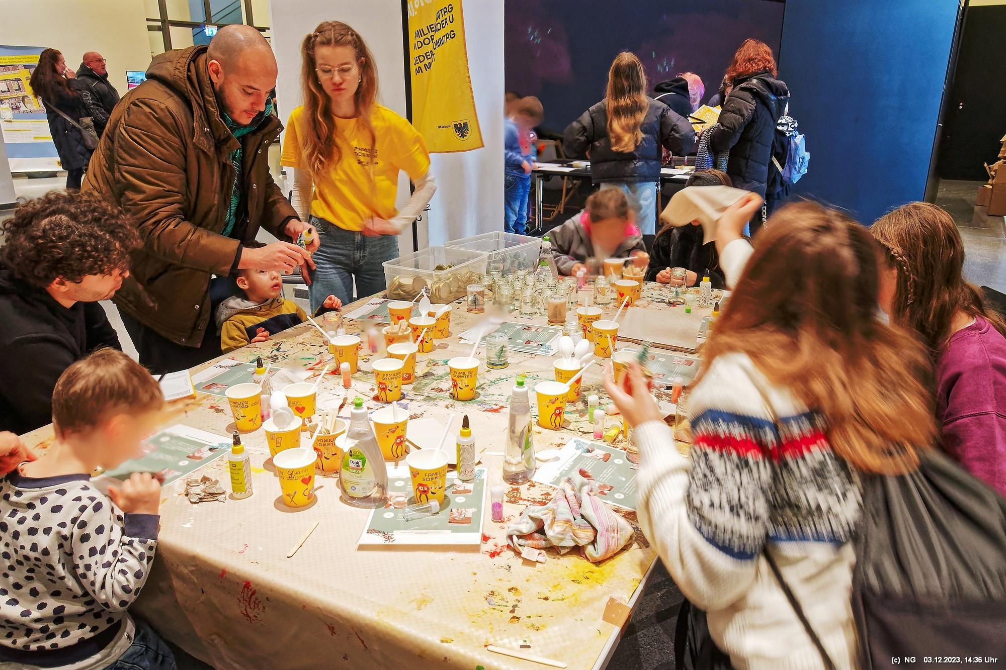 Auf Einladung der Agentur "herz und seele" aus Düsseldorf und von Tina Seidelmeier und Iman Sheihk haben wir zum ersten Mal dieses Gebäude von innen gesehen und waren schwer beeindruckt. Das überdimensionale Treppenhaus mit über 7 hohen Geschossen empfing uns mit meist offenen Museen und einem vorweihnachtlichen Familientag. Besonders den Kindern wurde auf allen Ebenen viel geboten. Überall wurde zugehört, gebastelt, getanzt und gesungen. So viele Programmpunkte kann man hier gar nicht aufzählen. Die Stimmung war daher so gelöst und spannend, dass es einem warm ums Herz wurde.