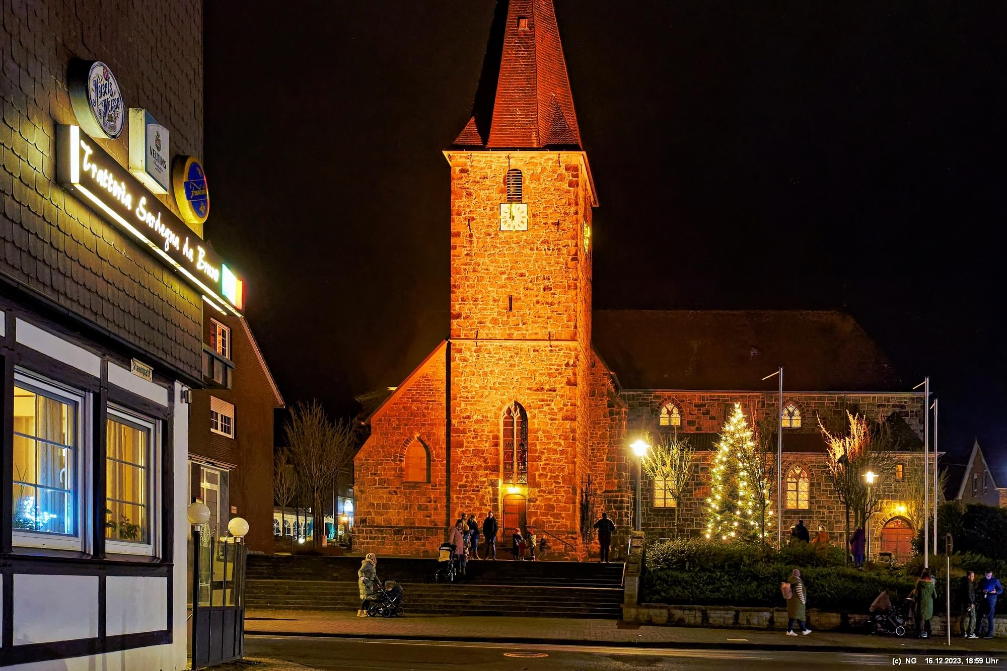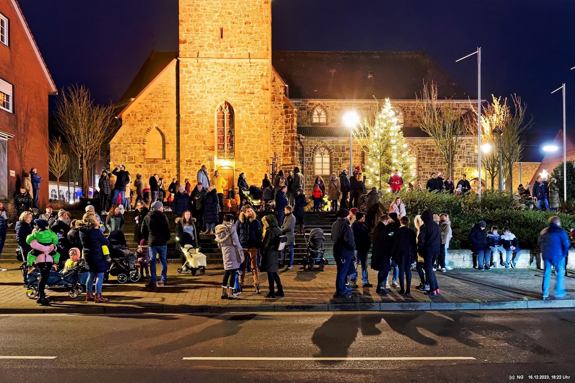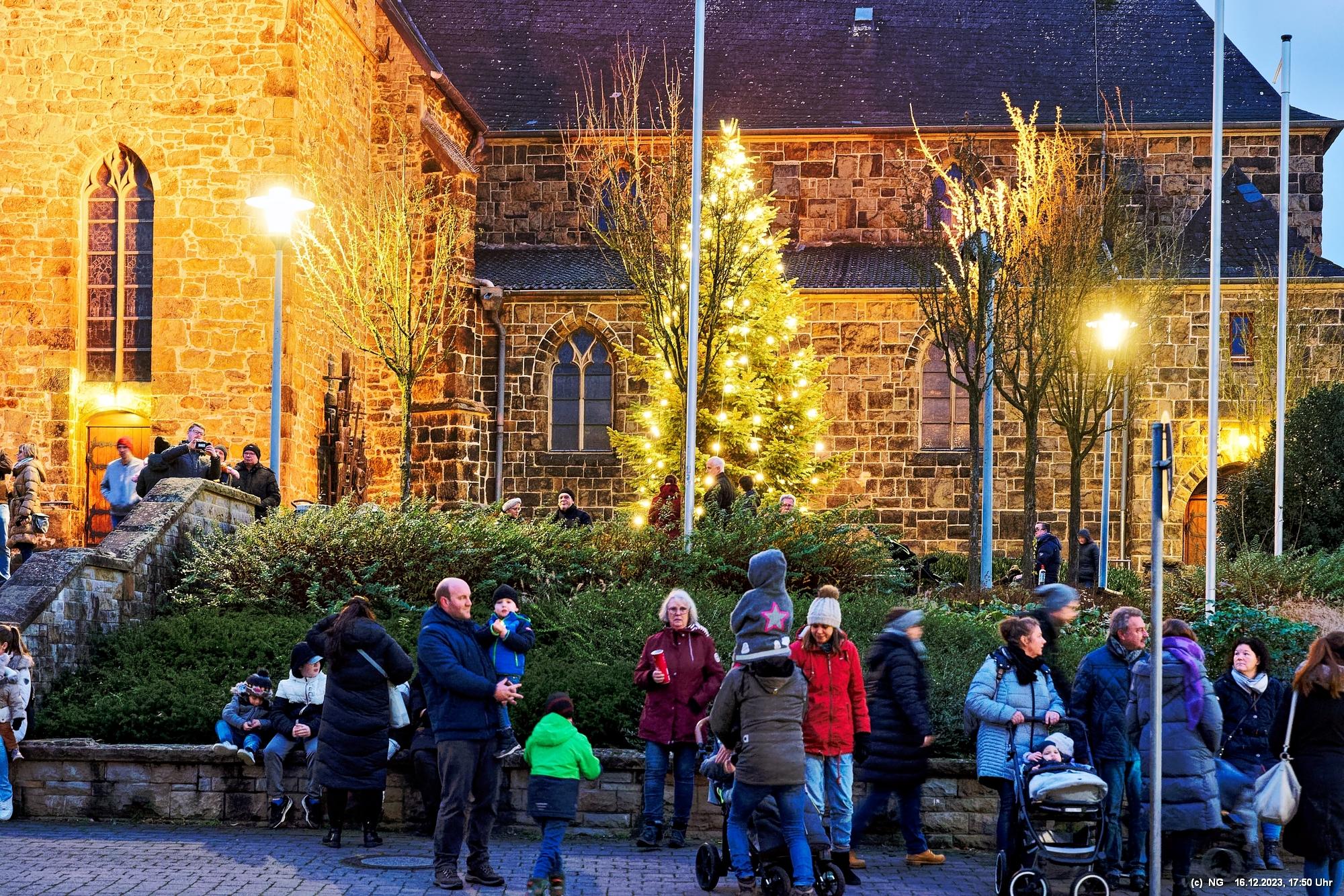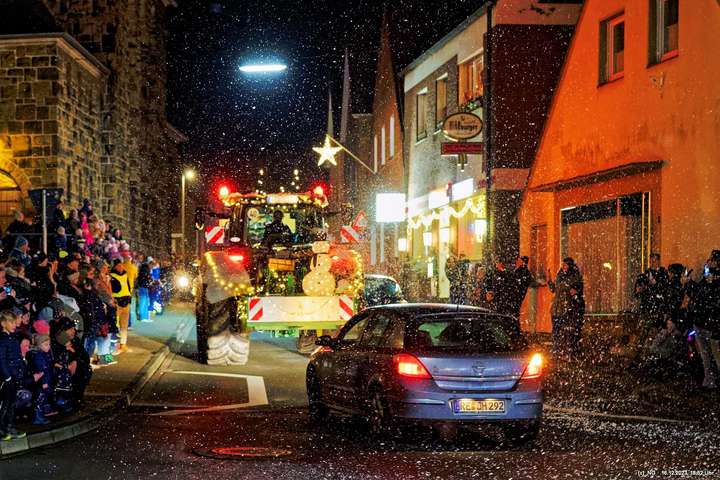OK, der Ort ist so groß nicht, da wird man schon irgendwo den Zug treffen, wohl sicher an der zentral gelegenen Kirche. Dort haben sich auch mehr als 100 Leute versammelt. Das Motto "Funken Hoffnung" sprang zu keinem Zeitpunkt auf die Zuschauer über. Die Kolonne aus einigen scheinbar desinteressierten Treckerfahrern fuhr in (viel zu) zügigem Tempo auf die Menschen zu, um dann direkt vor ihnen in eine Seitenstraße abzubiegen. Es gelang nur Wenigen, in die Nähe des Zuges zu gelangen, denn der war nach wenigen Minuten schien wieder durch. Warum haben sich einige die Mühe überhaupt gemacht? So war das nichts! Kein Vergleich zu dem besinnlich romantischen Trecker-Zug mit einer "geistigen Umarmung" von einem Jahr in Raesfeld-Erle.