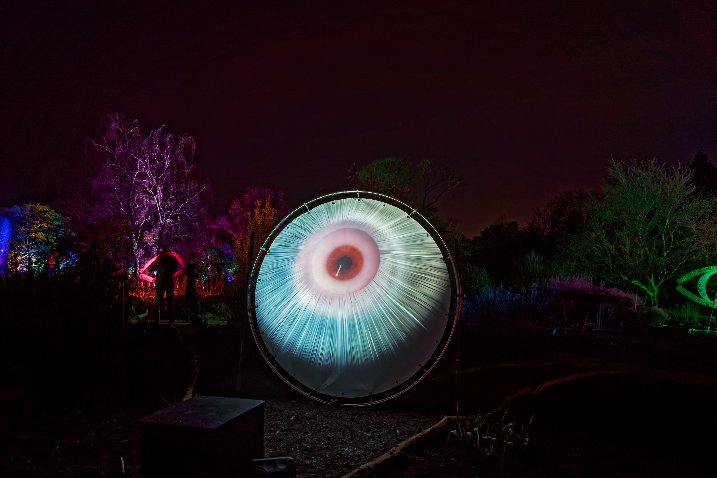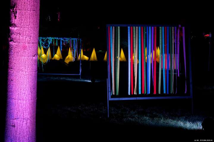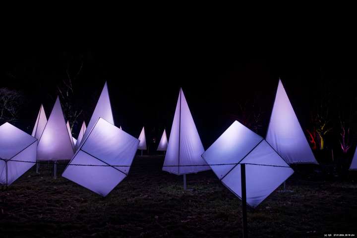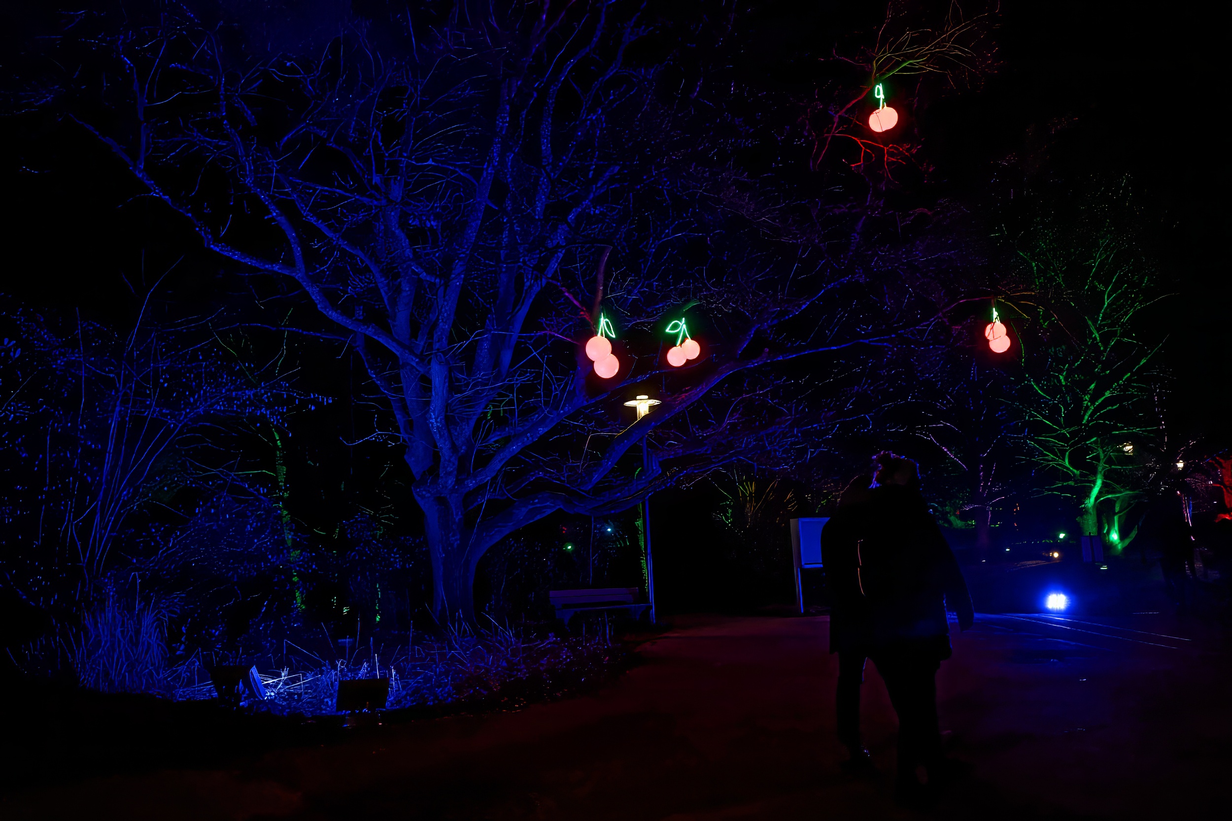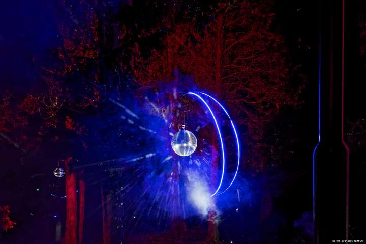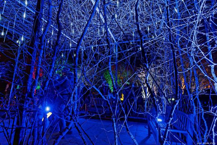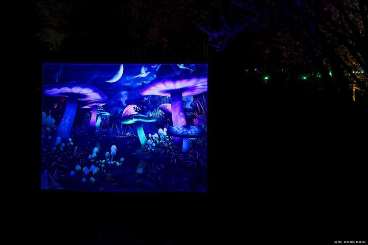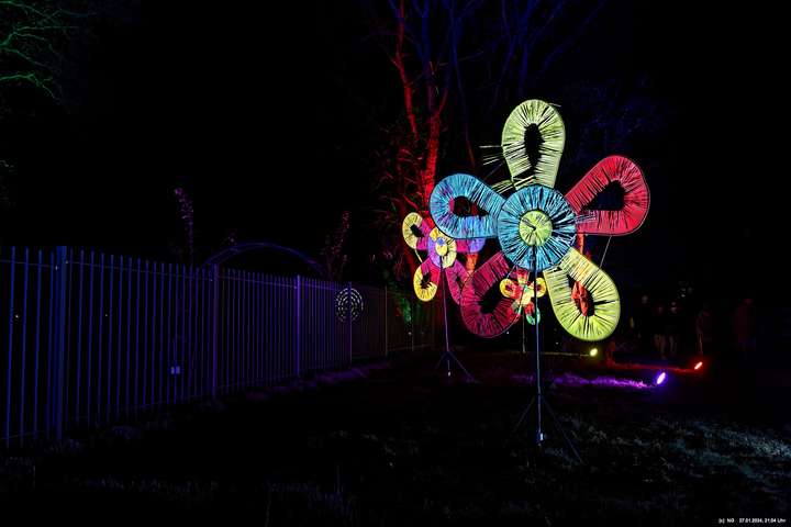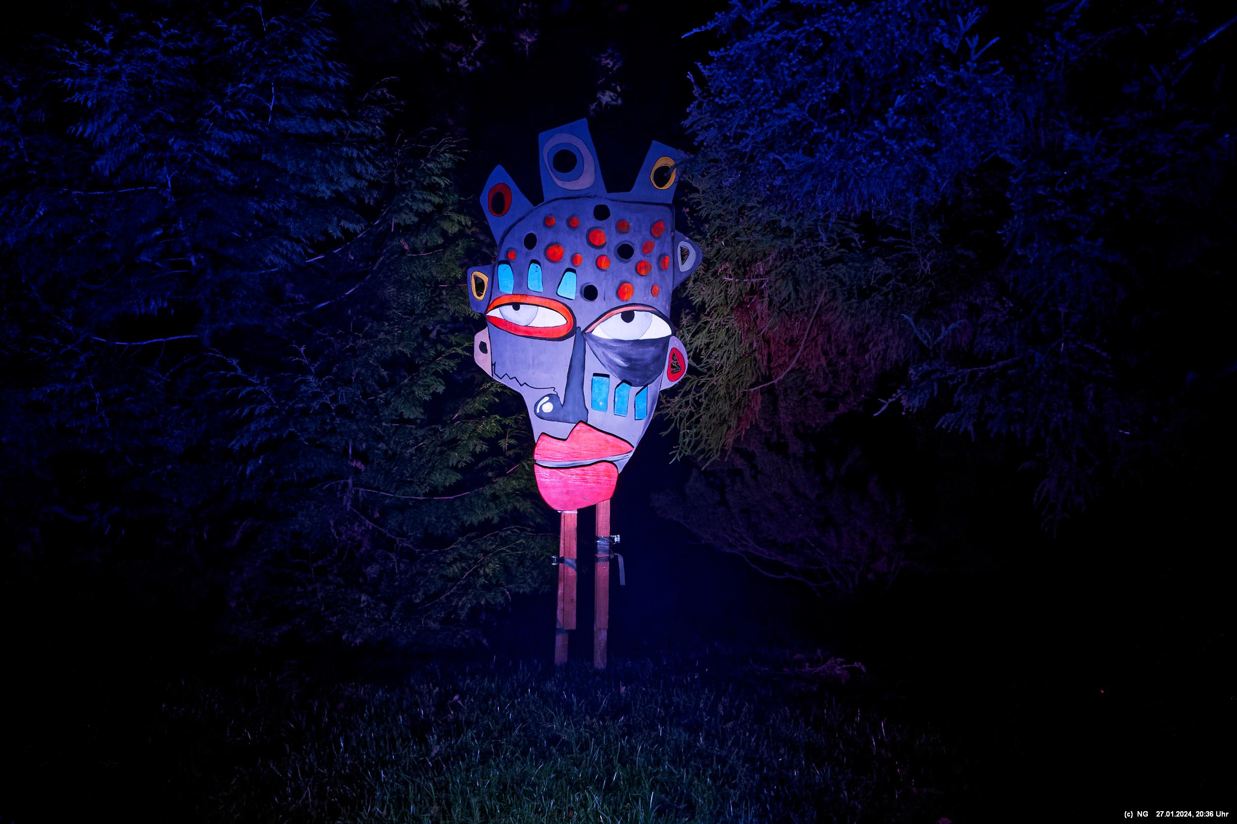Es ging für gut 3 Stunden und 4,5 km lang dorthin. Wolfgang Flammersfeld und Reinhard Hartleif (world of lights, Unna) haben zum 14. Mal diese Lichtinstallation durchgeführt. Das Wetter spielte mit – und so haben wir uns auf den längeren Weg durch den Park gemacht. Vorher mussten wir noch einen weiten Weg vom vom sehr entfernten und teuren Parkplatz laufen - es war rappelvoll und besonders viele Kinder war dort. In diesem Jahr schien uns, als hätten die Leute um Wolfgang Flammersfeld wieder mal keine besondere Lust (oder Können?) zur Lichtgestaltung gehabt. Es gab kaum Highlights, sondern viele Wiederholungen und oftmals nur aufgestellte Lampen - das hat mit Kunst nicht wirklich etwas zu tun. Es ist trotzdem immer wieder schön und romantisch, durch den beleuchteten Park zu schlendern und die Lichter und Figuren auf sich einwirken zu lassen.