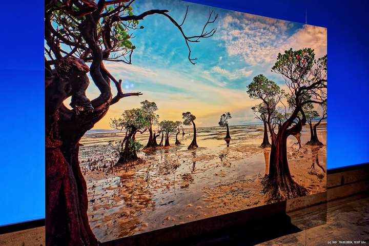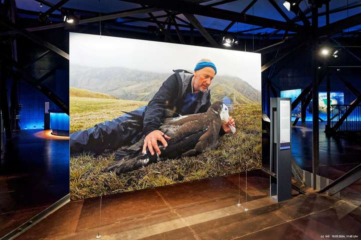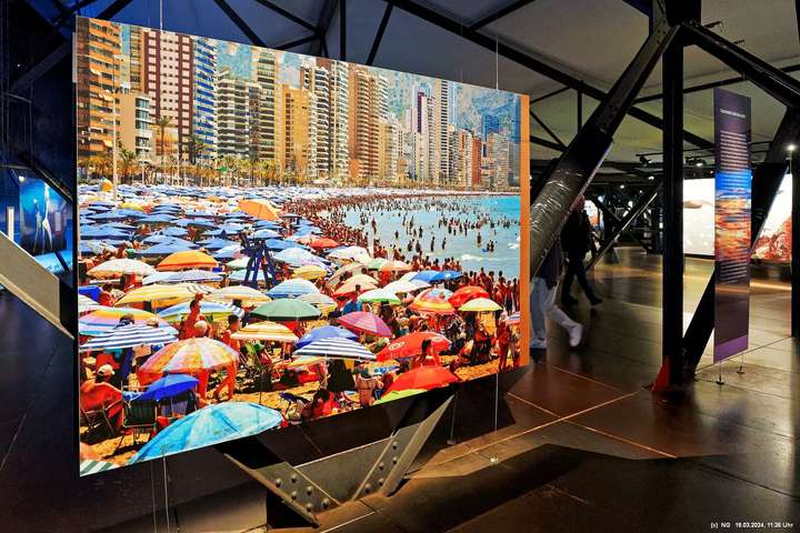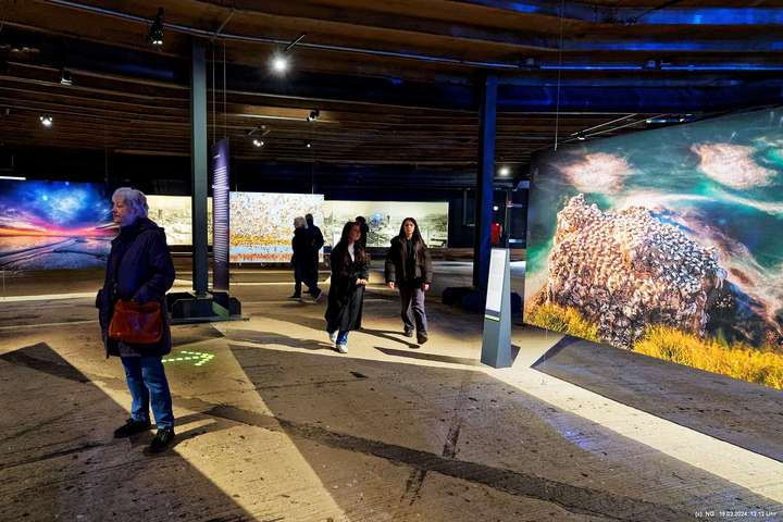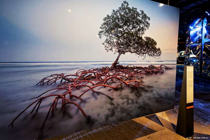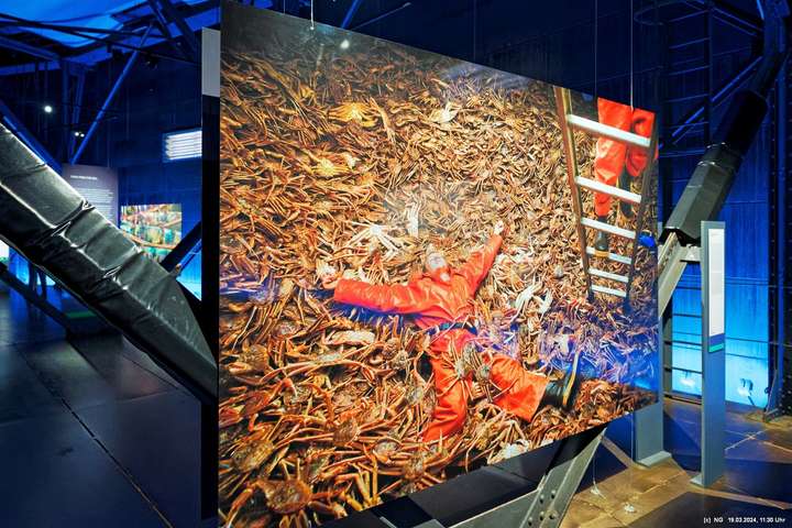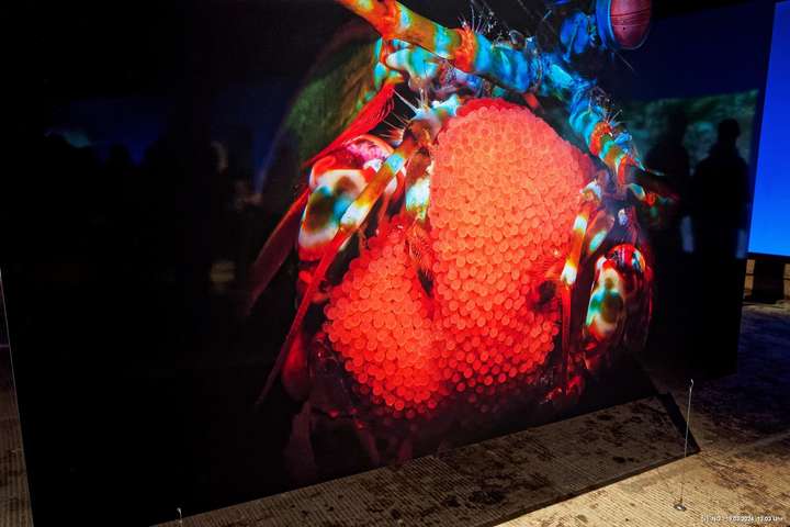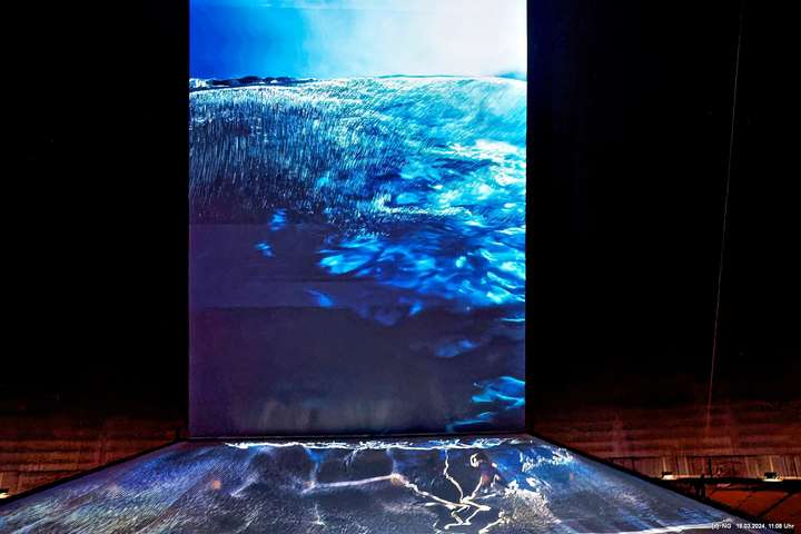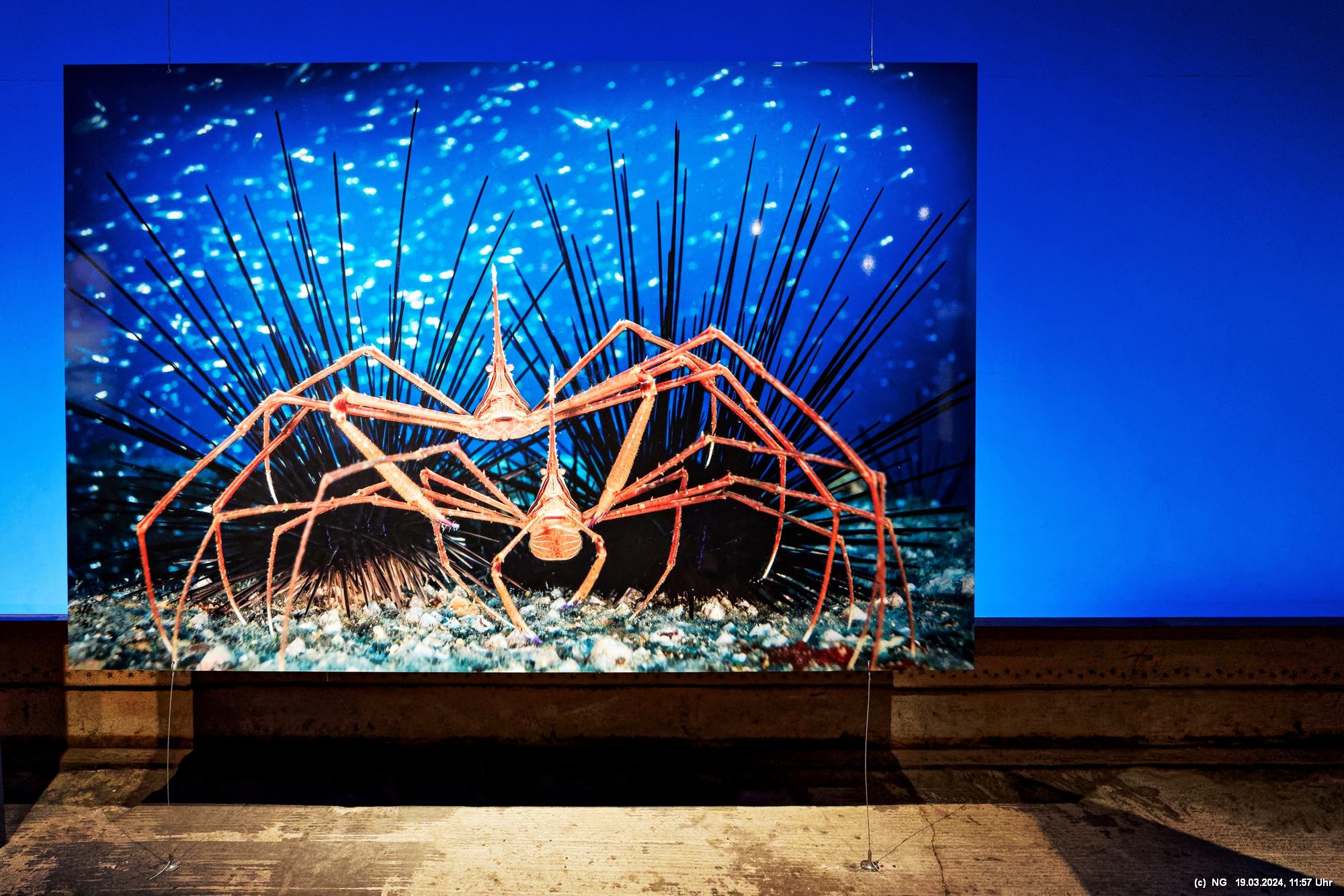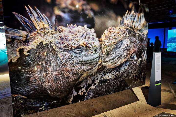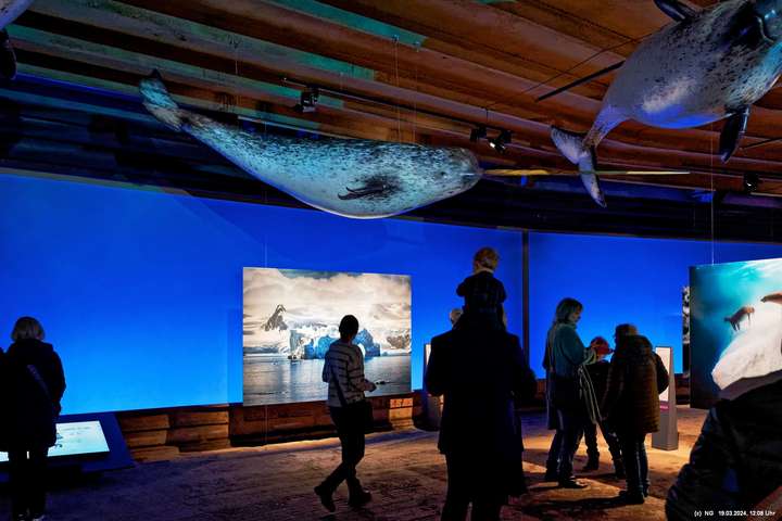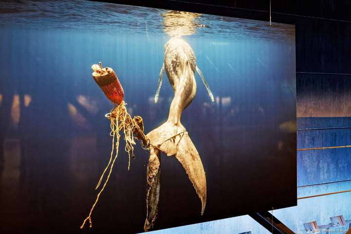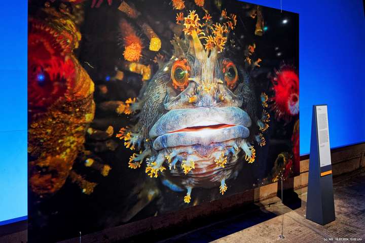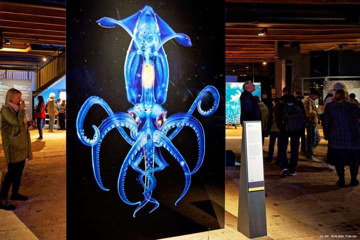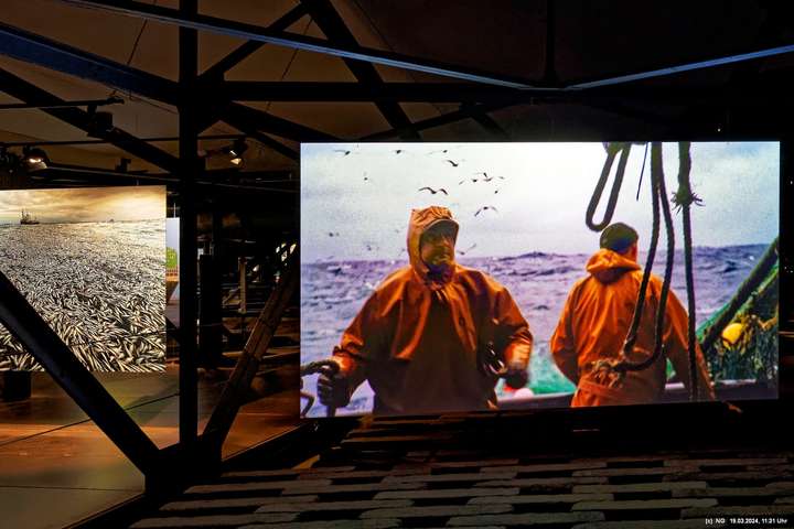 Auf einer 40 m hohen und 18 m breiten, im Luftraum frei hängenden Leinwand in L-Form, findet eine Projektion statt, die uns fast realistisch in die Unterwasserwelt des Ozeans führt. Die Show ist akustisch hinterlegt und hat uns sehr beeindruckt. Die vielen großen Fotos und Videos zeigen in höchster Qualität die schönen, aber auch die Schattenseiten des Meeres und ihrer Lebewesen, die durch Plastikmüll und Überfischung extrem gefährdet sind.
