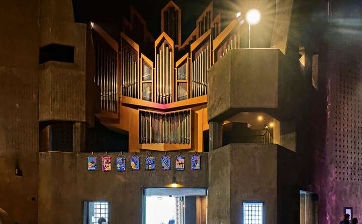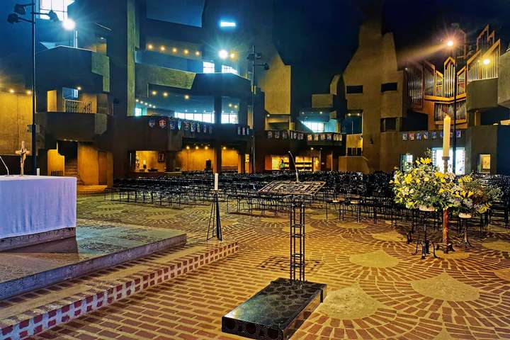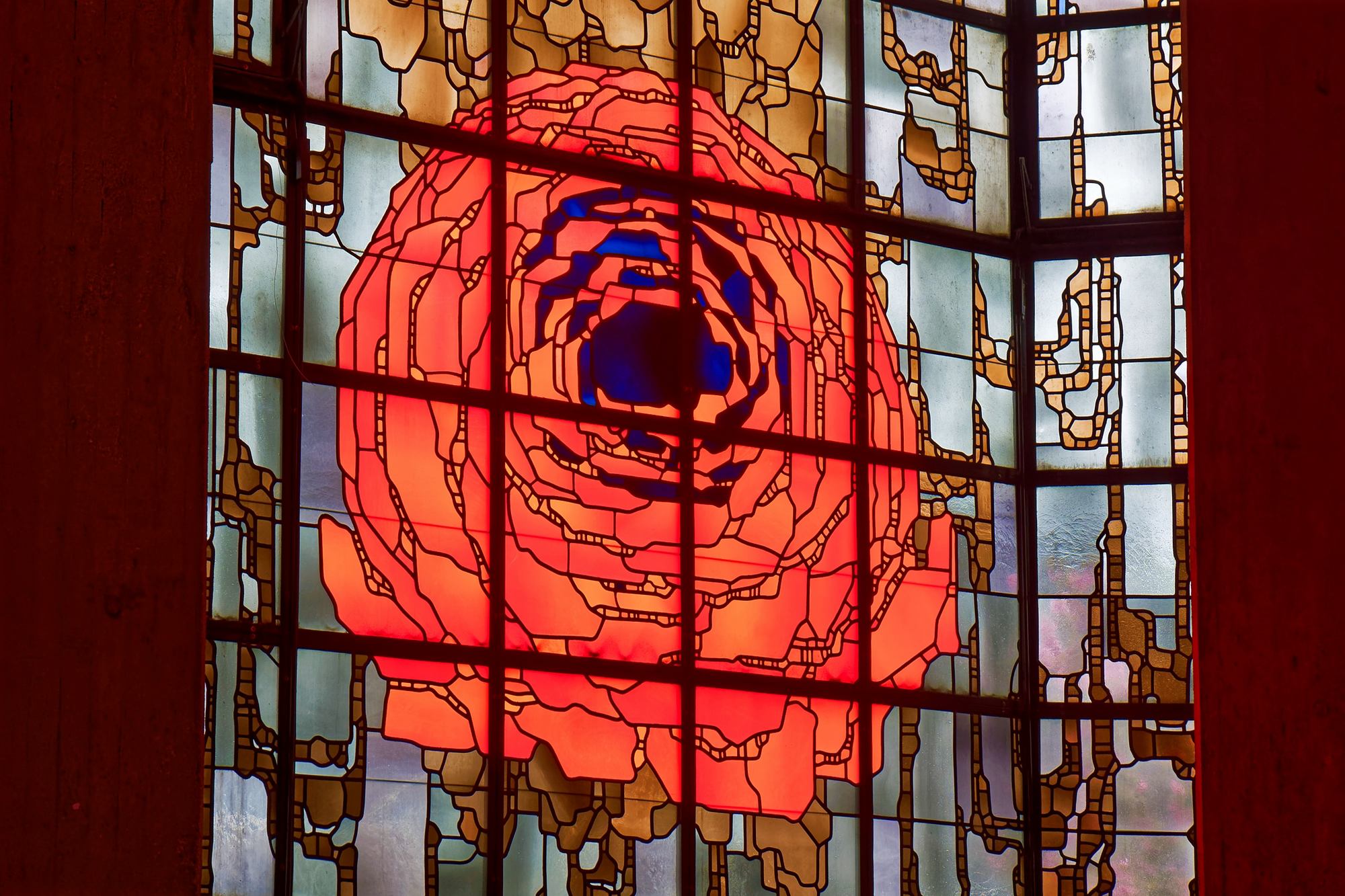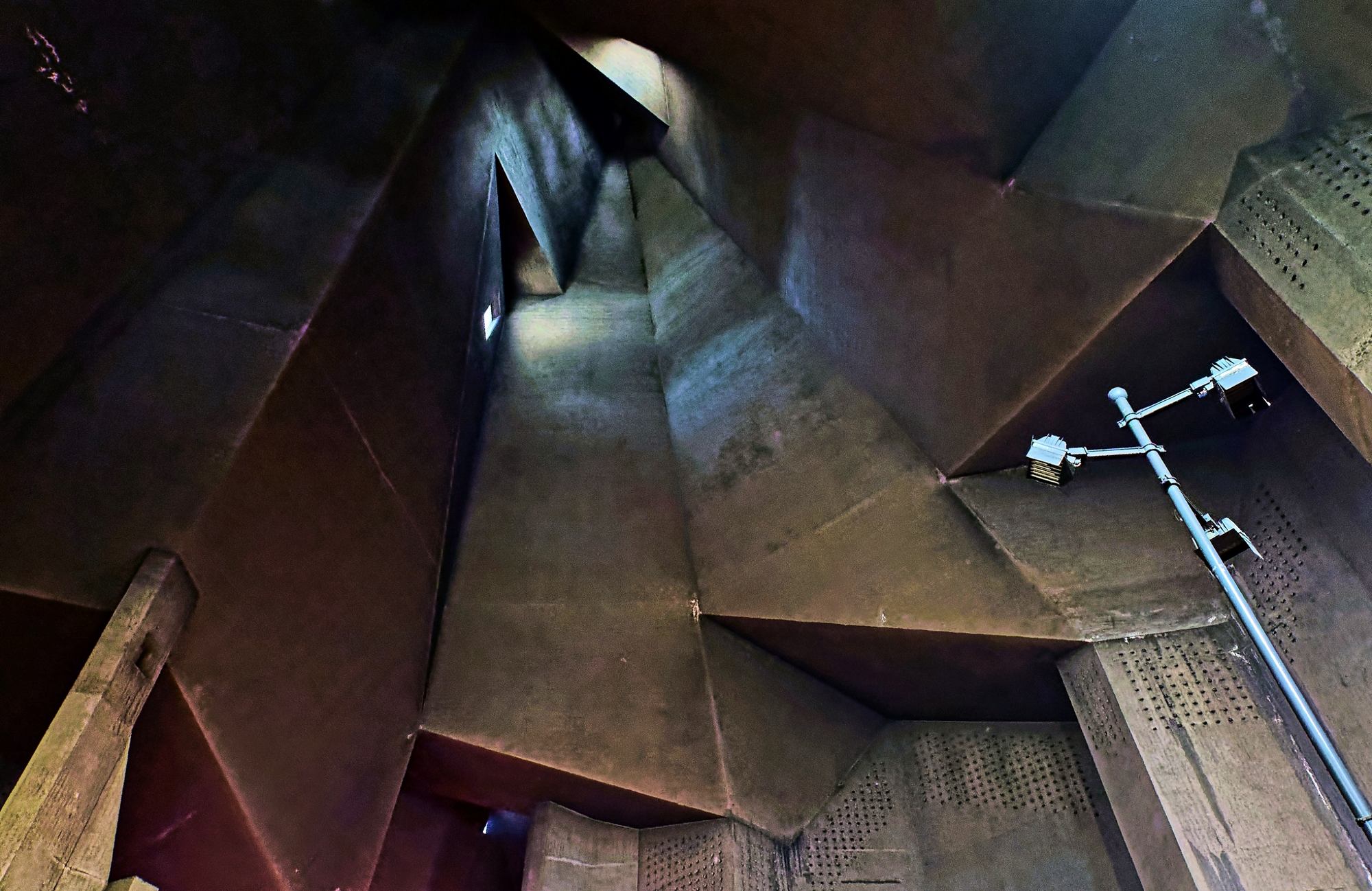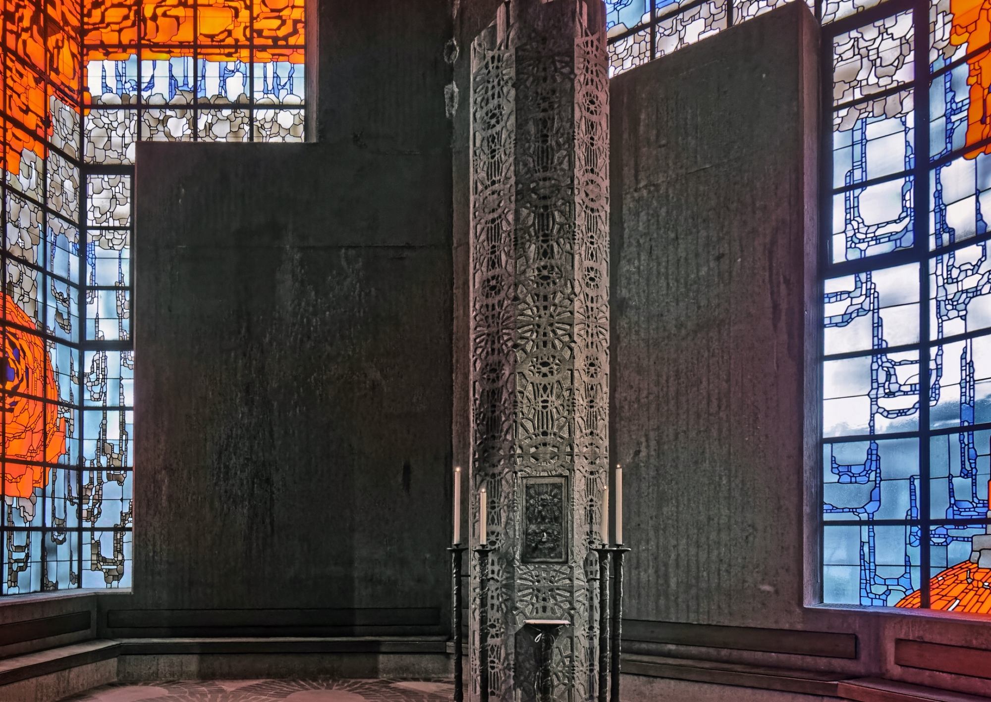 Die Konstruktion gefällt sicher nicht jedem und doch ist es ein Meisterwerk der Architektur und steht als Gesamtkunstwerk bereits unter Denkmalschutz. Der Beton zeigt die Form einer Zeltstadt und bietet innen einen Raum mit rund 3.000 Plätzen. Es ist nicht hell und so fühlt man sich auch wie in einem großen Zelt. Die Umgebung verschwindet und man beschäftigt sich nur noch mit den vielfältigen Eindrücken des herausragend gestaltenden Raums. Sehenswert sind auch die von Prof. Böhm entworfenen Fenster, besonders das berühmte Rosenfenster.