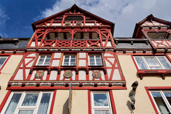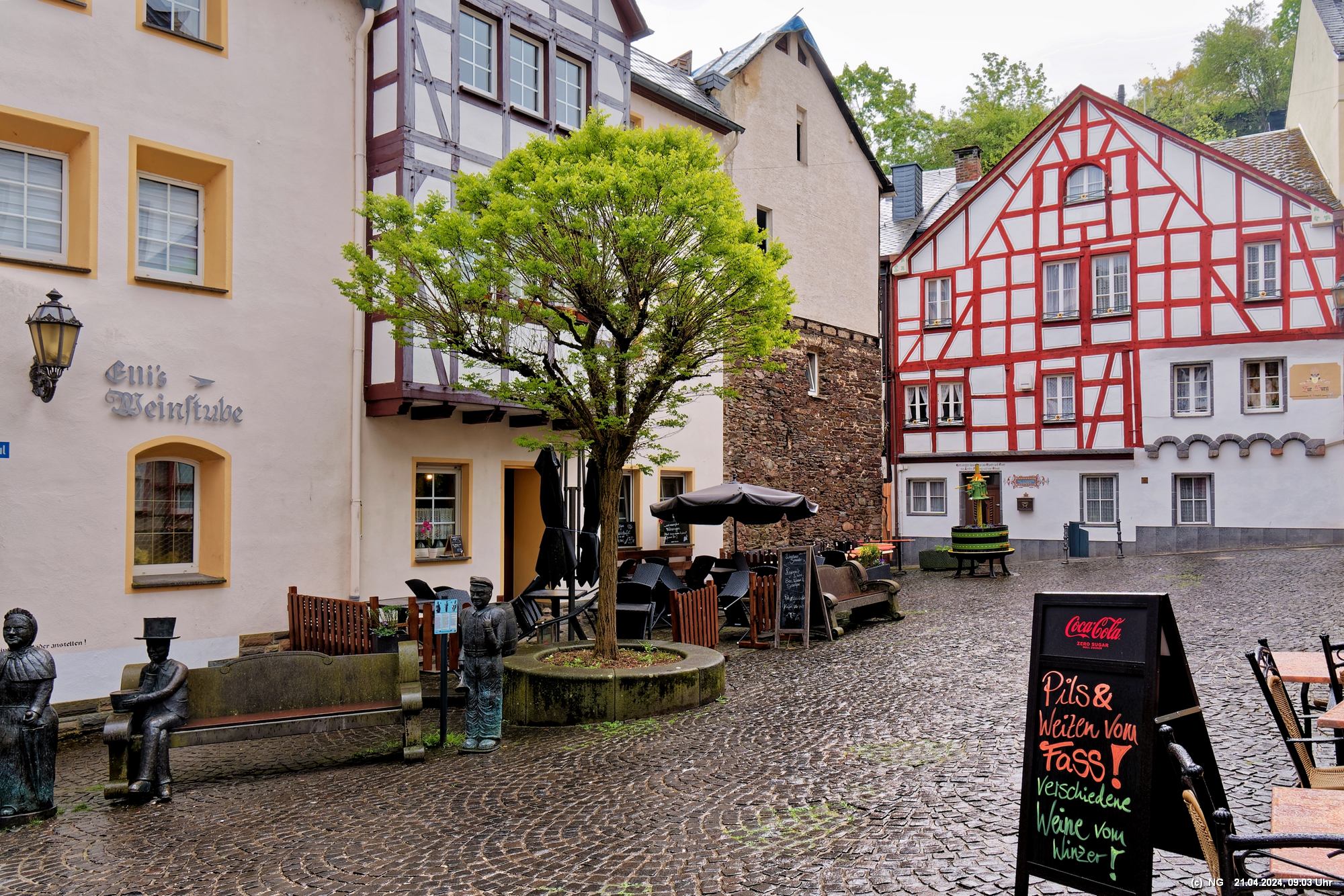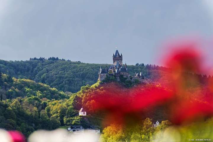 Von dort haben wir die Umgebung erkundet und sind dem manchmal schlechterem Aprilwetter aus dem Weg gegangen. Das Moselromantik-Hotel Weißmühle im Enderttal war wieder unsere Wahl. Es liegt in einem von hohen Felsen umschlossenen Tal, etwa 3 km vom Zentrum entfernt. Cochem ist mit rund 5.000 Einwohnern die kleinste Kreisstadt Deutschlands. Hoch über der Stadt ragt ein "Kracher": Die Reichsburg. Sie ist ein so markanter Orientierungspunkt, dass man immer wieder von allen Seiten hinsehen muss. Im "Oberland" blüht der Raps auf vielen großen Felden.