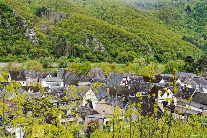 Sie befindet sich in Familienbesitz und so ist eigentlich alles verboten, was nicht zu Geld gemacht werden kann. Da Innenaufnahmen nicht gestattet sind und Hunde eh nicht mit heinein dürfen (ganz anders als bei der Reichsburg), haben wir uns auf den Blick von einer Aussichtsplattform beschränkt. Der Weg ist mühselig genug und der kleine Shuttlebus ist nicht so wirklich hundegeeignet. Daher sind wir das Stück gelaufen und haben den wirklich tollen Blick auf die Burg genossen. So von oben gesehen glaubt man es nicht, aber die Burg ist wirklich eine Höhenburg und liegt an der Eltz auf einem rund 70 m hohen Felskopf. Die 8 Wohntürme sind bis 35 m hoch.