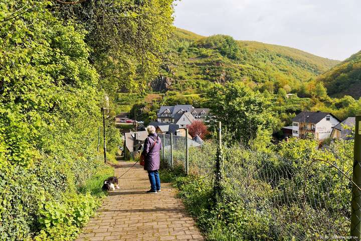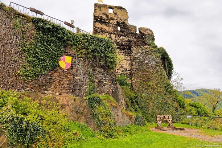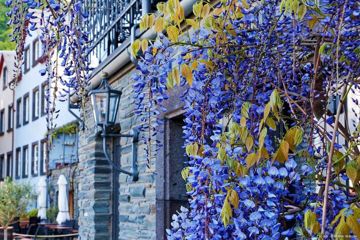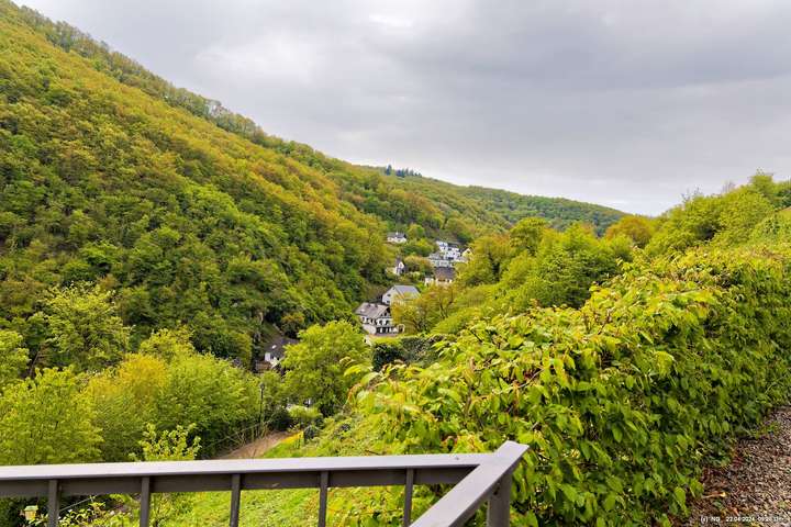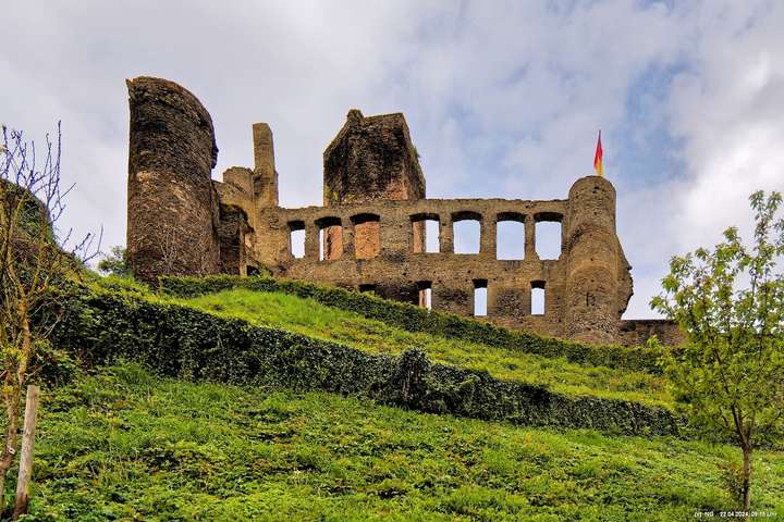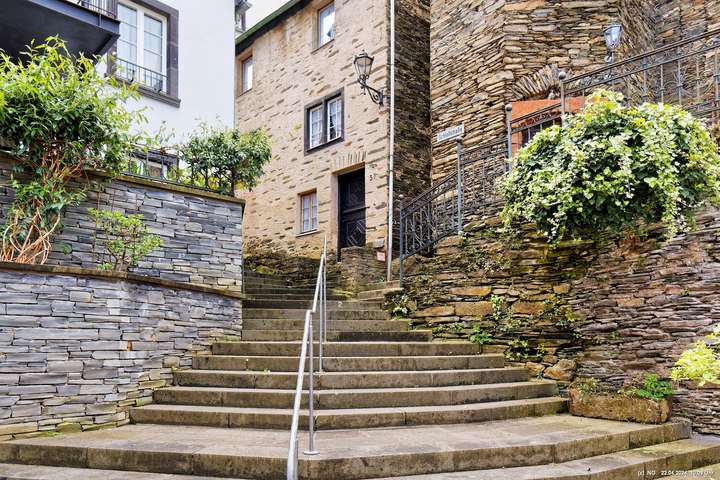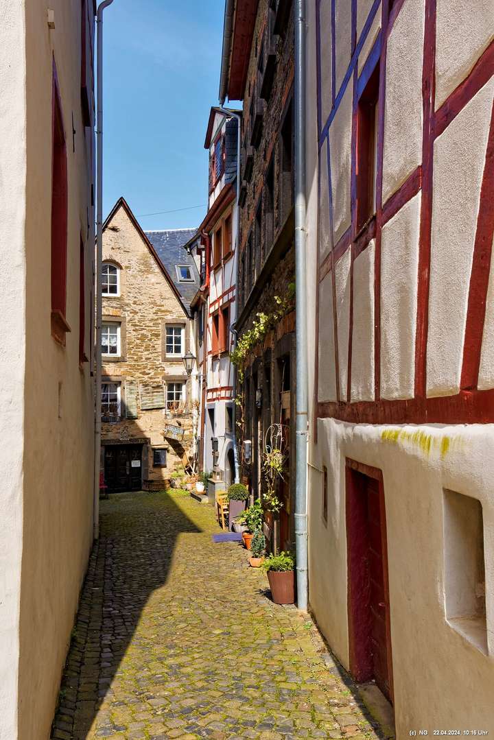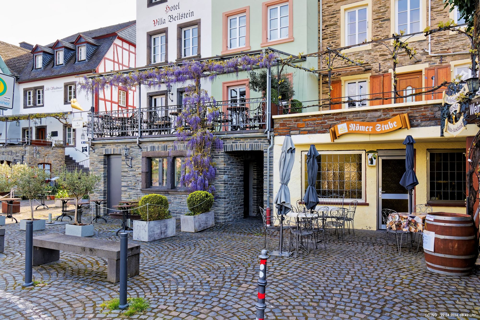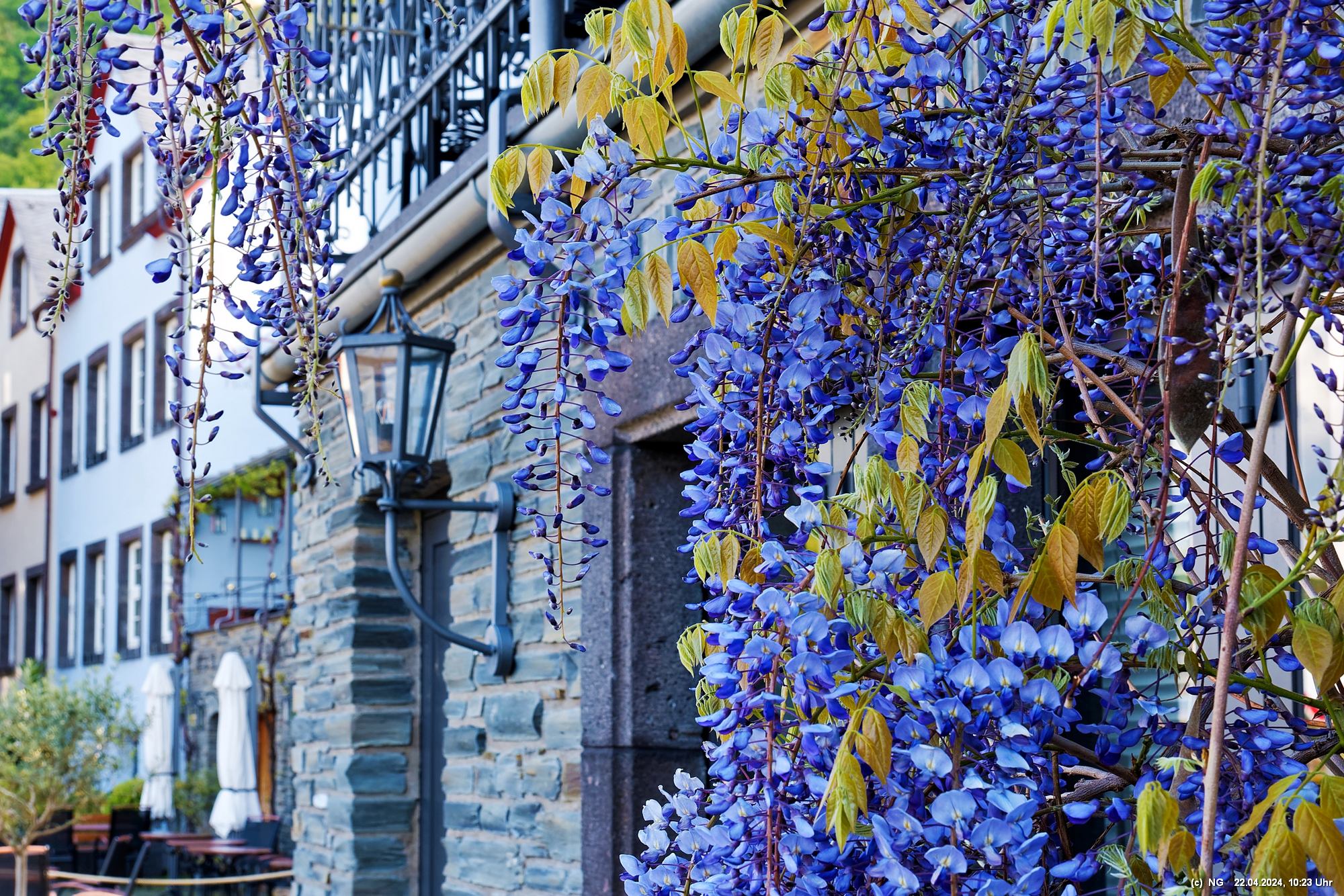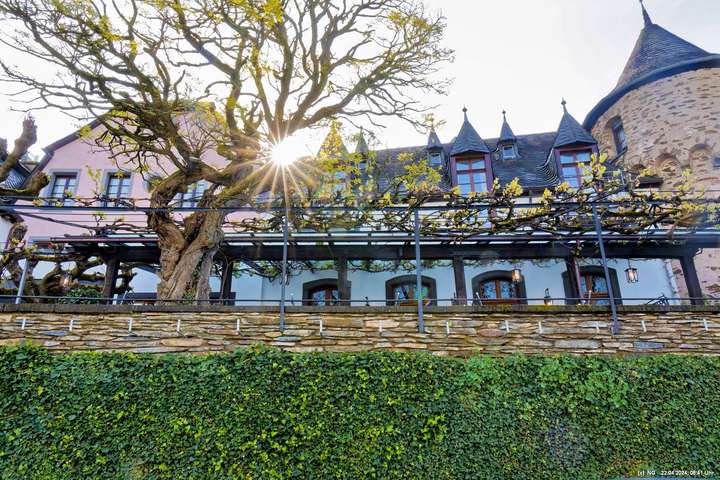 Schon die Lage ist außergewöhnlich. An einem Bachtal und umgeben von Weinbergen lockt es schon von Weitem. Der Ort ist wirklich märchenhaft und die Häuser sind gut gepflegt. Das zieht natürlich Unmengen von Touristen an, denen wir aber am Montag früh aus dem Wege gegangen sind. Hier wurden seinerzeit Filme gedreht mit Heinz Rühmann (Wenn wir alle Engel wären) und Curd Jürgens (Der Schinderhannes). Zu Allem kommt noch die Burg Metternich, die hoch - aber gut erreichbar über dem Ort thront.