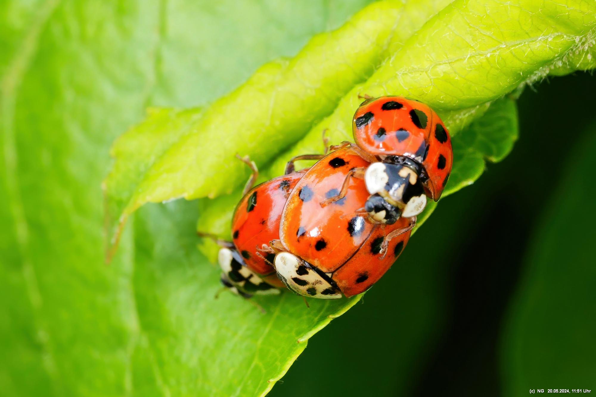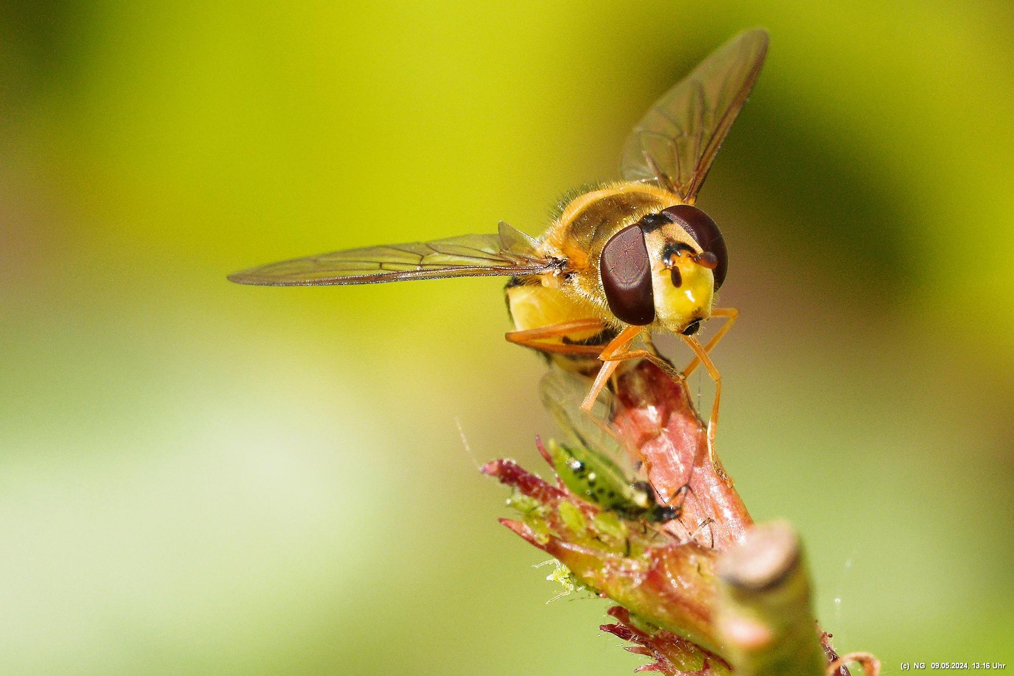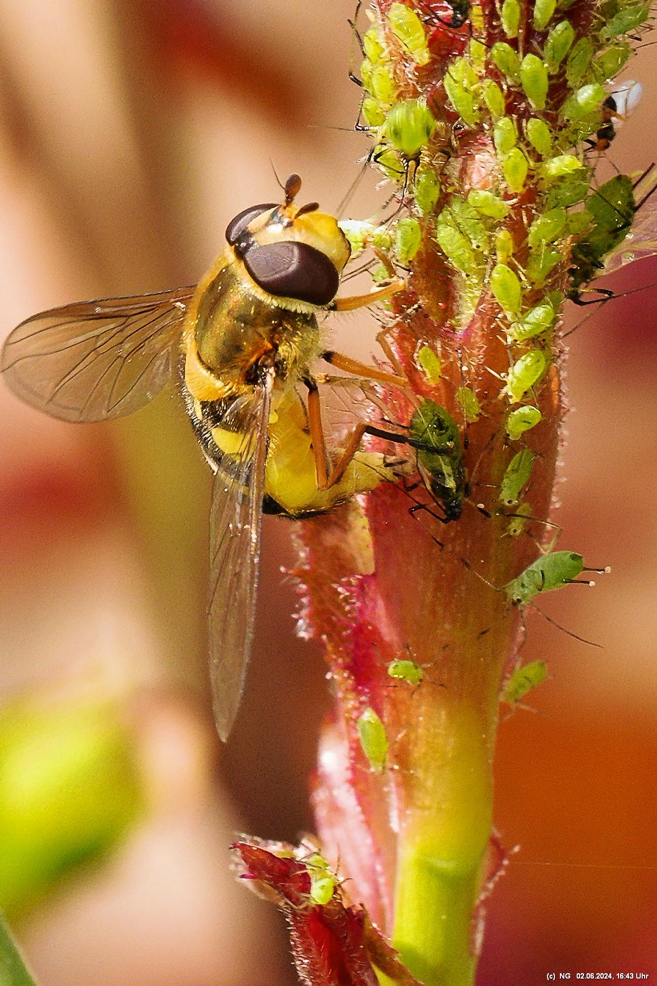 Verschiedene Arten Marienkäfer, Julikäfer, Schnecken ohne Ende, Leder- und grüne Stinkwanzen, Fliegen und Hummeln. Denen kamen dann die ersten Blüten gerade recht. Und unsere Hochzeitshortensie "Runaway Bridge" zeigt unendlich viele Blüten. Ist ist spannend, das alles zu beobachten!
