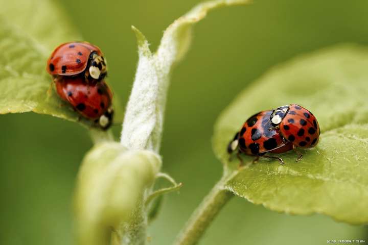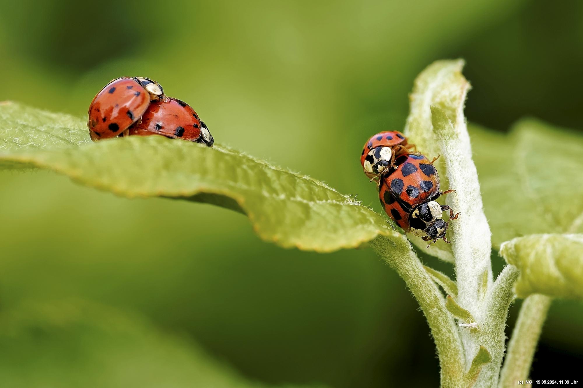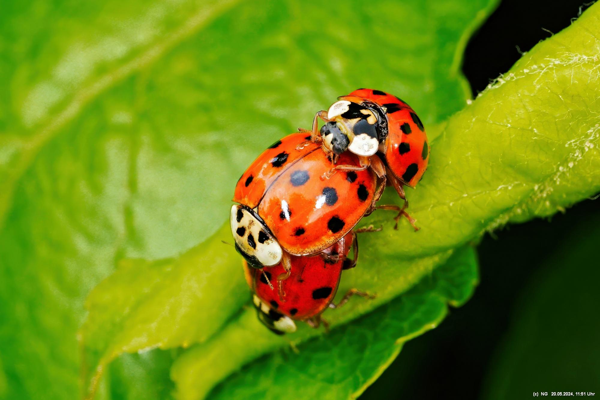 Verschiedene Arten Marienkäfer, Julikäfer, Schnecken ohne Ende, Leder- und grüne Stinkwanzen, Fliegen und Hummeln. Denen kamen dann die ersten Blüten gerade recht. Und unsere Hochzeitshortensie "Runaway Bridge" zeigt unendlich viele Blüten. Ist ist spannend, das alles zu beobachten!