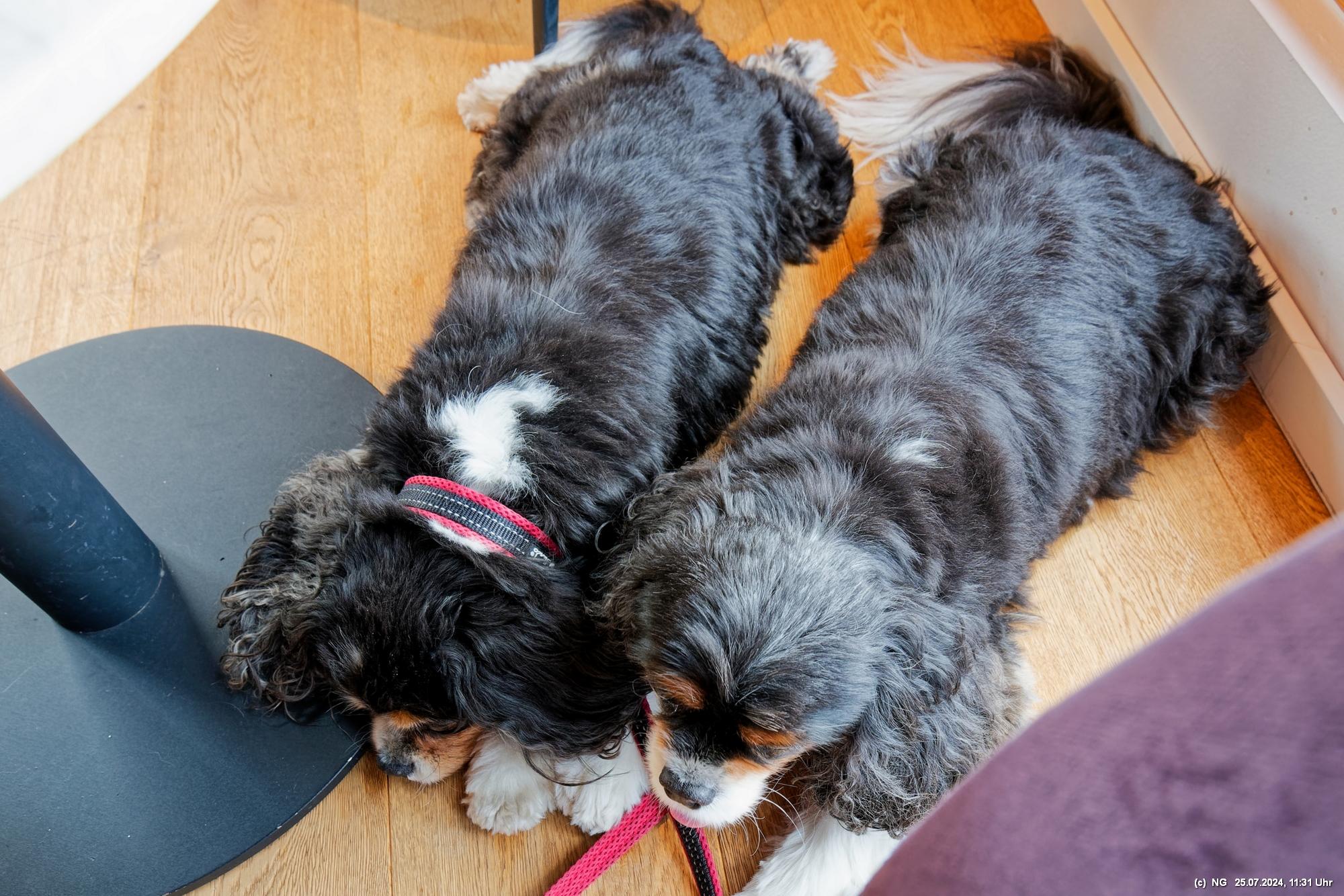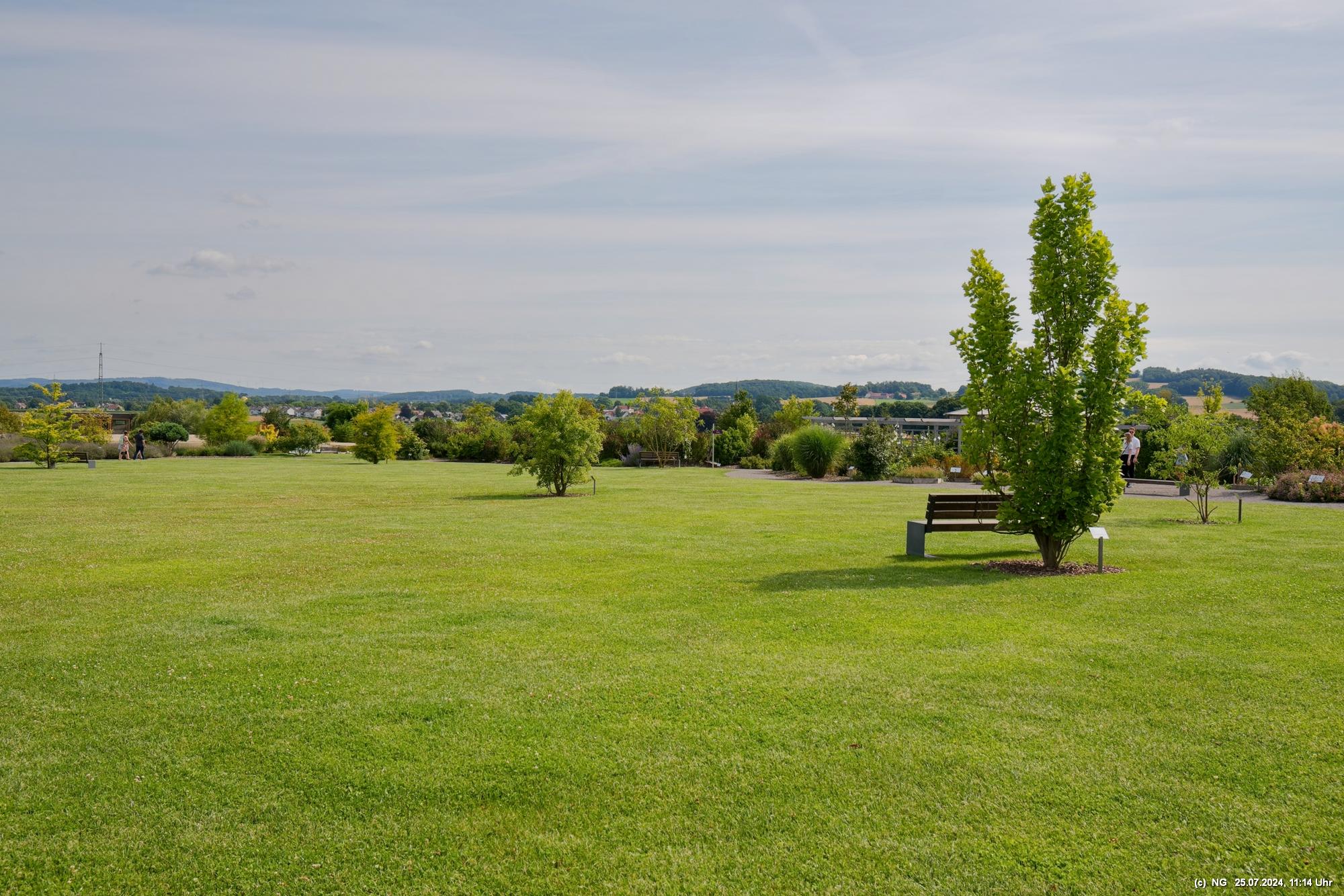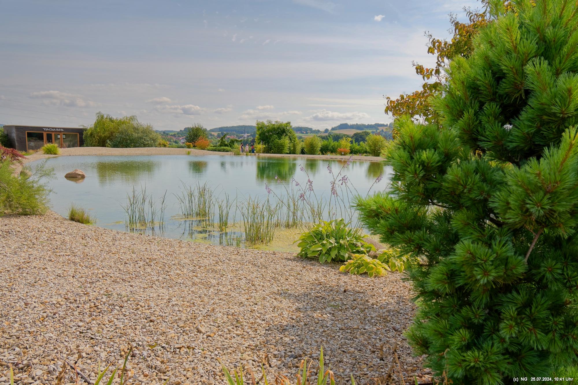 Es gab so viel Regen in der letzten Zeit und so haben wir es an einem störungsfreien Tag gerade noch geschafft, am Ende der Blüte der meisten Sorten und unmittelbar vor der Ernte das 5 ha große Feld zu besuchen. Es duftet zwar immer noch stark, aber die Hochblüte war eben vorbei. Vielleicht schaffen wir es im nächten Jahr bei voller Blüte. Aber dennoch war es prächtig, die gut gepflegte Anlage mit dem Aromapark zu besuchen. Da unsere Hunde nicht mit in den Park durften, haben wir uns abgewechselt und die beiden konnten im Cafe ausruhen.