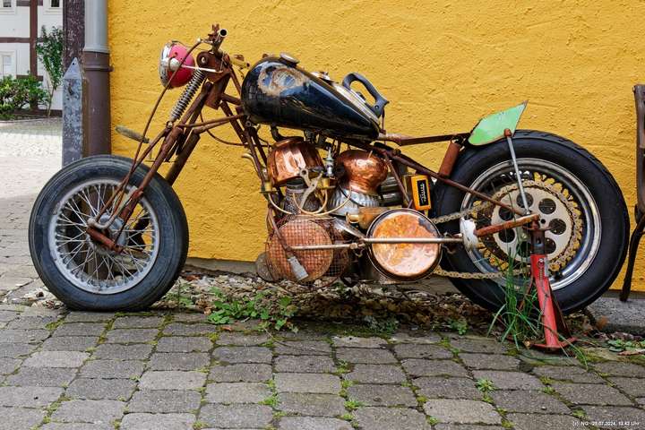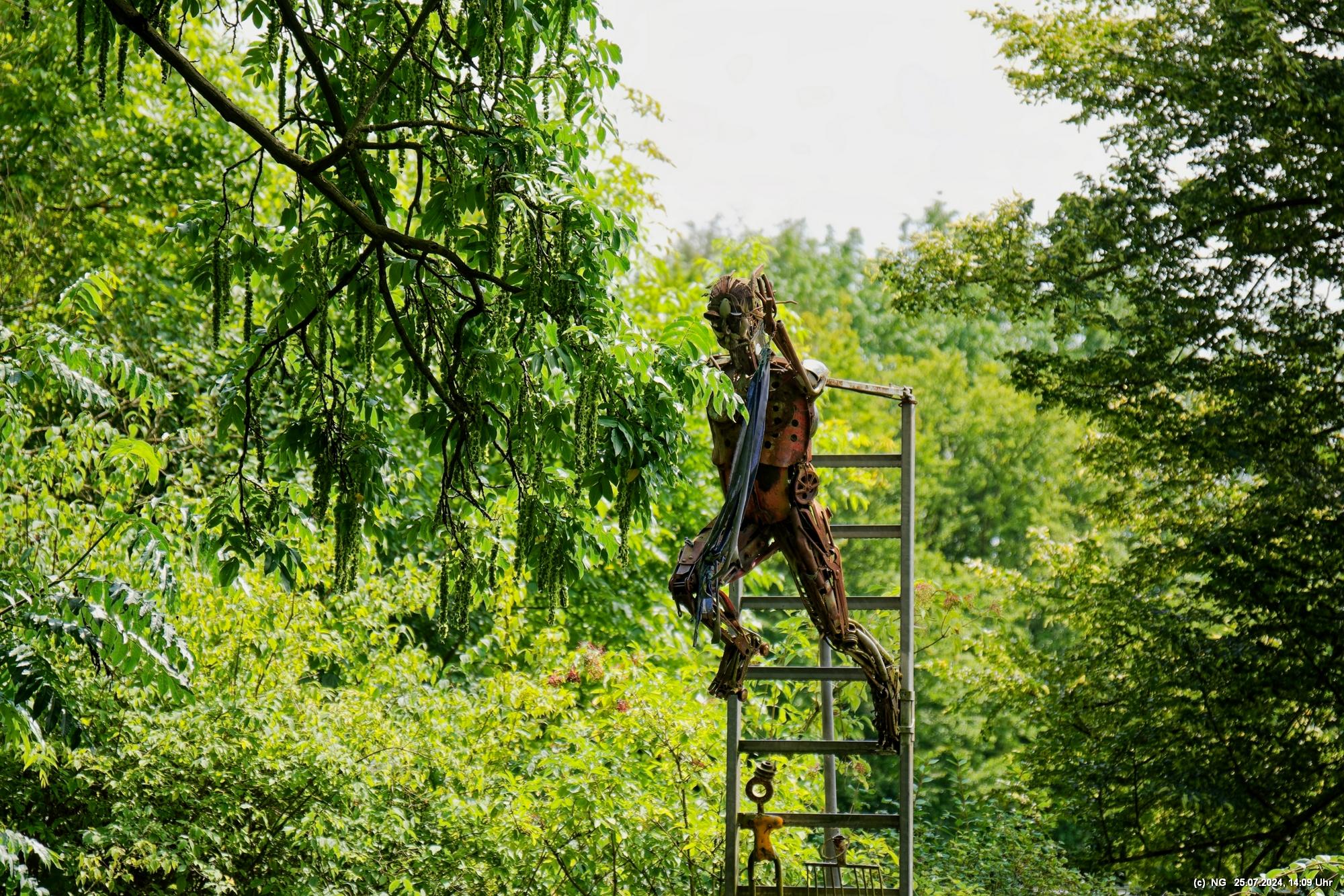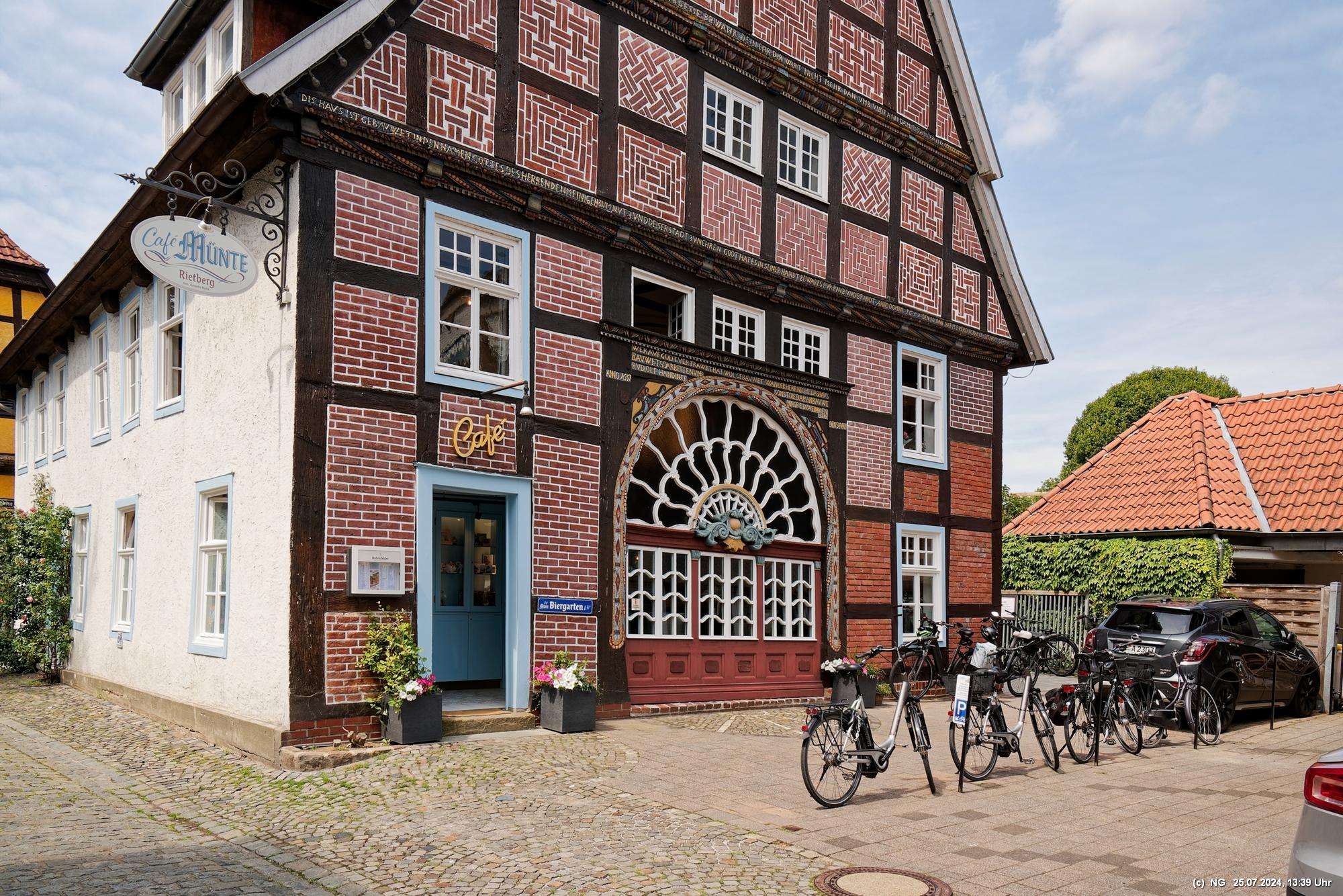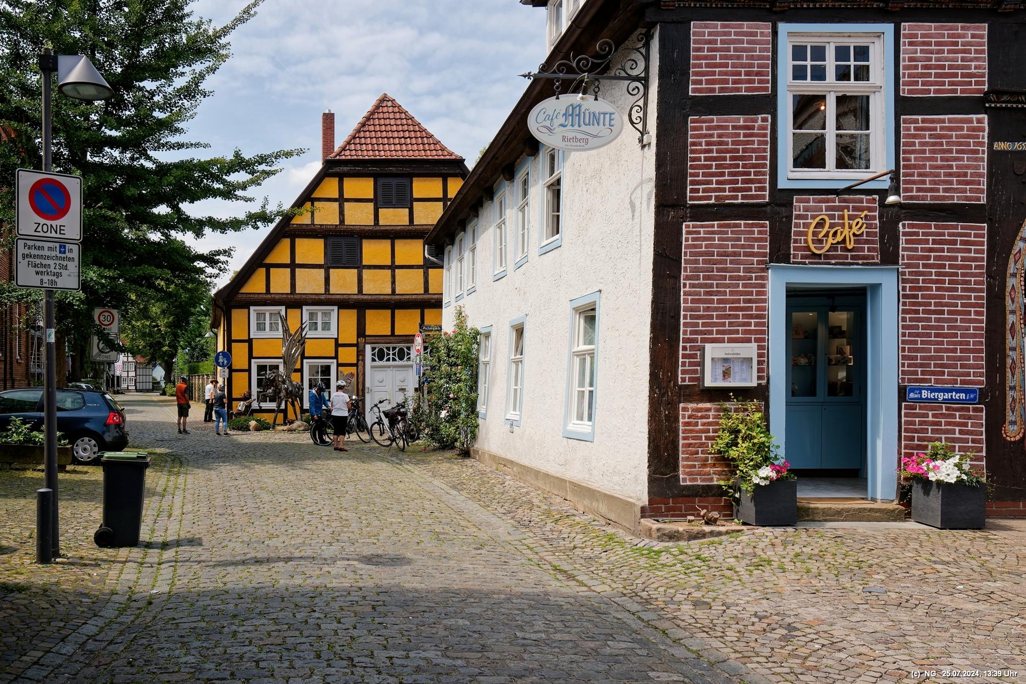 Rietberg liegt im Nordosten von NRW und gehört zum Kreis Gütersloh. Auf dem Rückweg von Lage wollten wir uns die historische Altstadt mit vielen Häusern aus dem 16. und 17. Jahrhundert ansehen. Wir sind vom großen Parkplatz entlang der Ems zum Kern der Altstadt gelaufen. Da unsere Füße schon etwas müde waren, haben wir den großen Rundweg nicht gemacht. Doch das, was wir gesehen haben, hat uns sehr gefallen. Auch die vor dem gut renovierten Haus platzierten Exponate eines Künstlers haben es uns angetan - erstaunlich diese Fantasie.