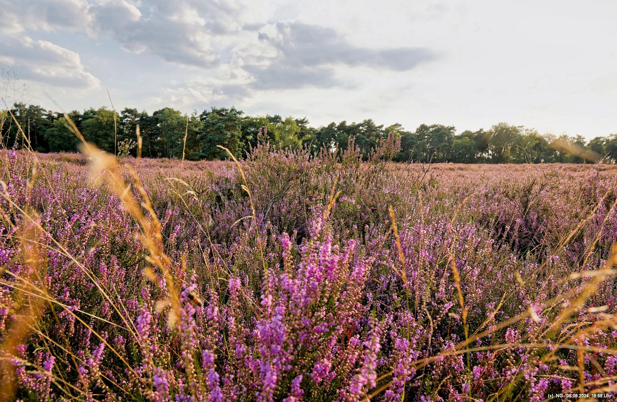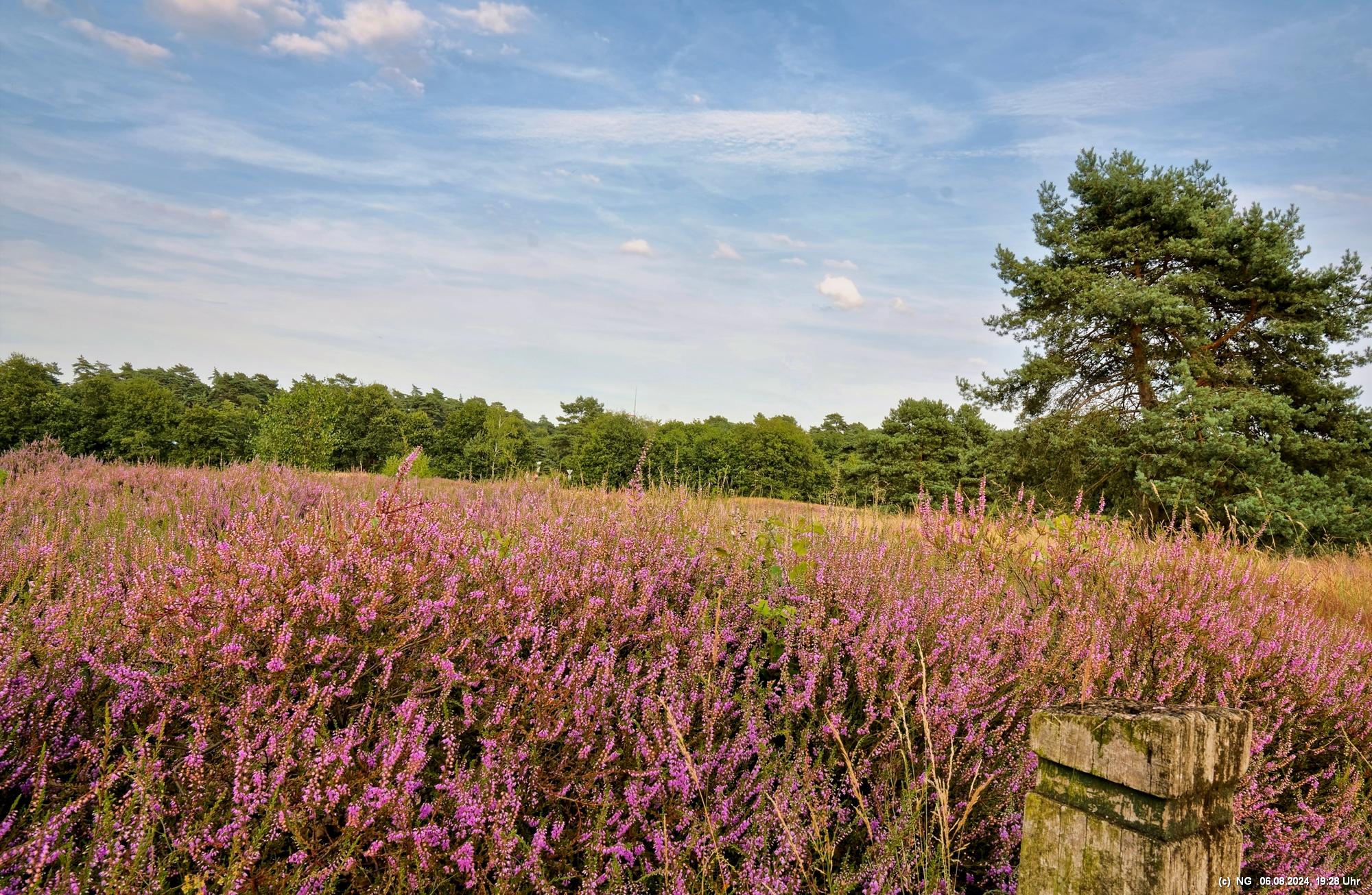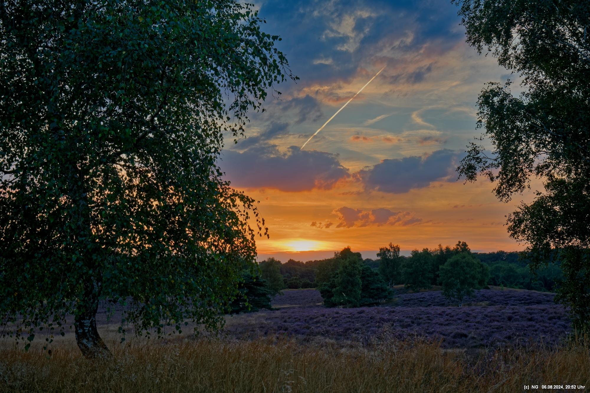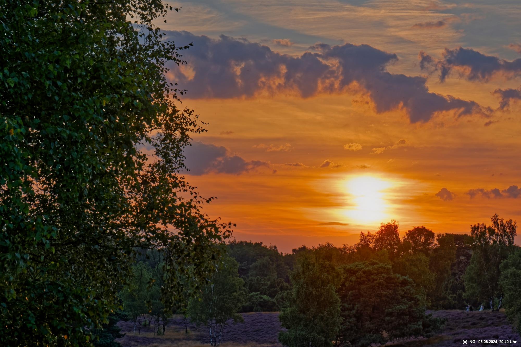 Und die in der größten zusammenhängenden Heidelandschaft in NRW nach dem vielen Regen in diesem Jahr besonders ausgeprägt. Es leuchtet und duftet überall. Mit Mitgliedern der Fotogruppe "Revierblicke" ging es in die Heide. Wir wollten den Sonnenuntergang sehen und fotografieren. Das Wetter war gut und die Heide nicht besonders voll. Also - ideale Bedingungen - bis auf den Sonnenuntergang selber. Durch hohe Wolken war die Sonne nicht klar sichtbar. Aber es hat sich allemal gelohnt!