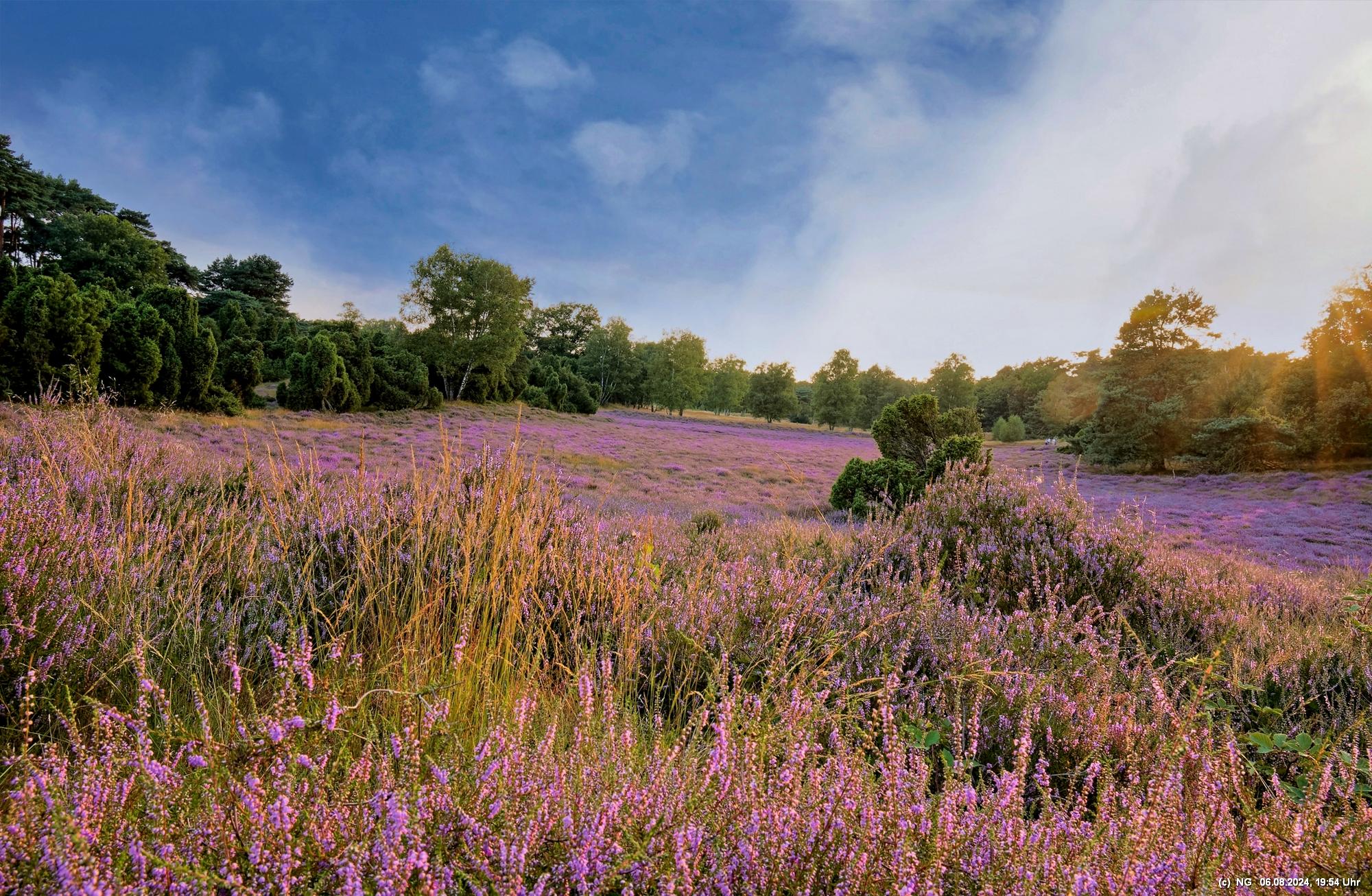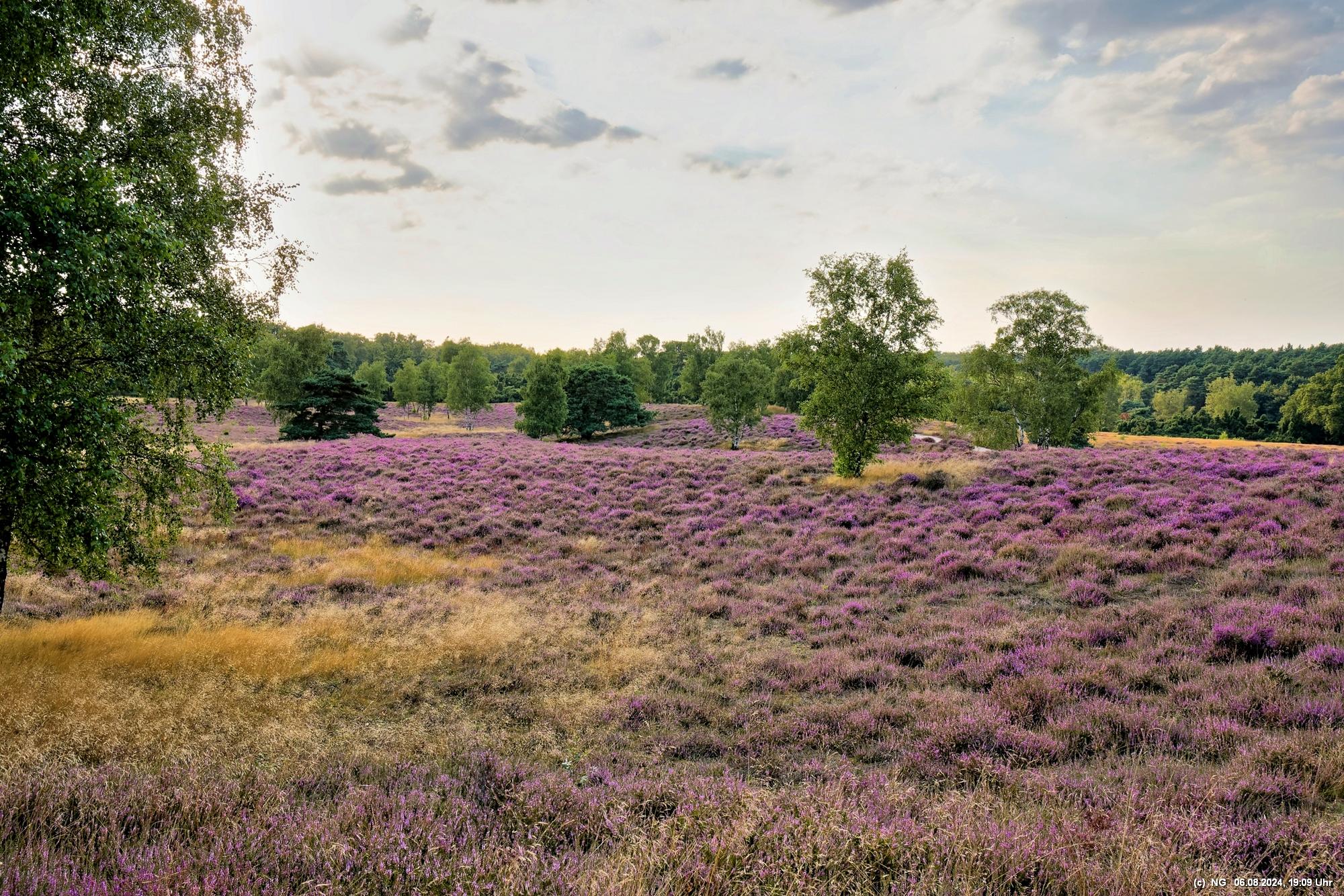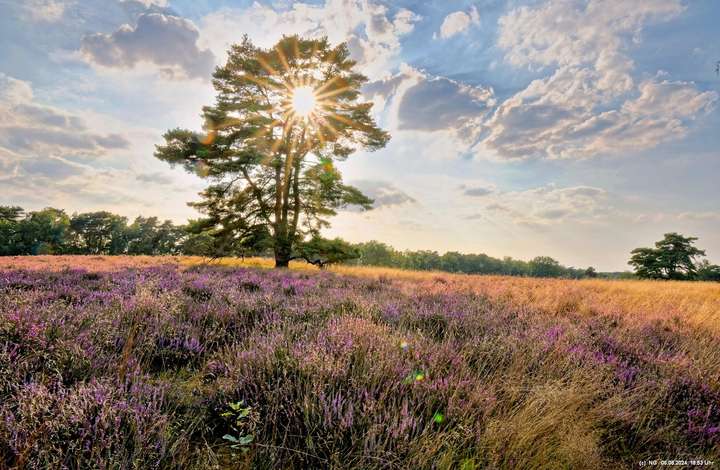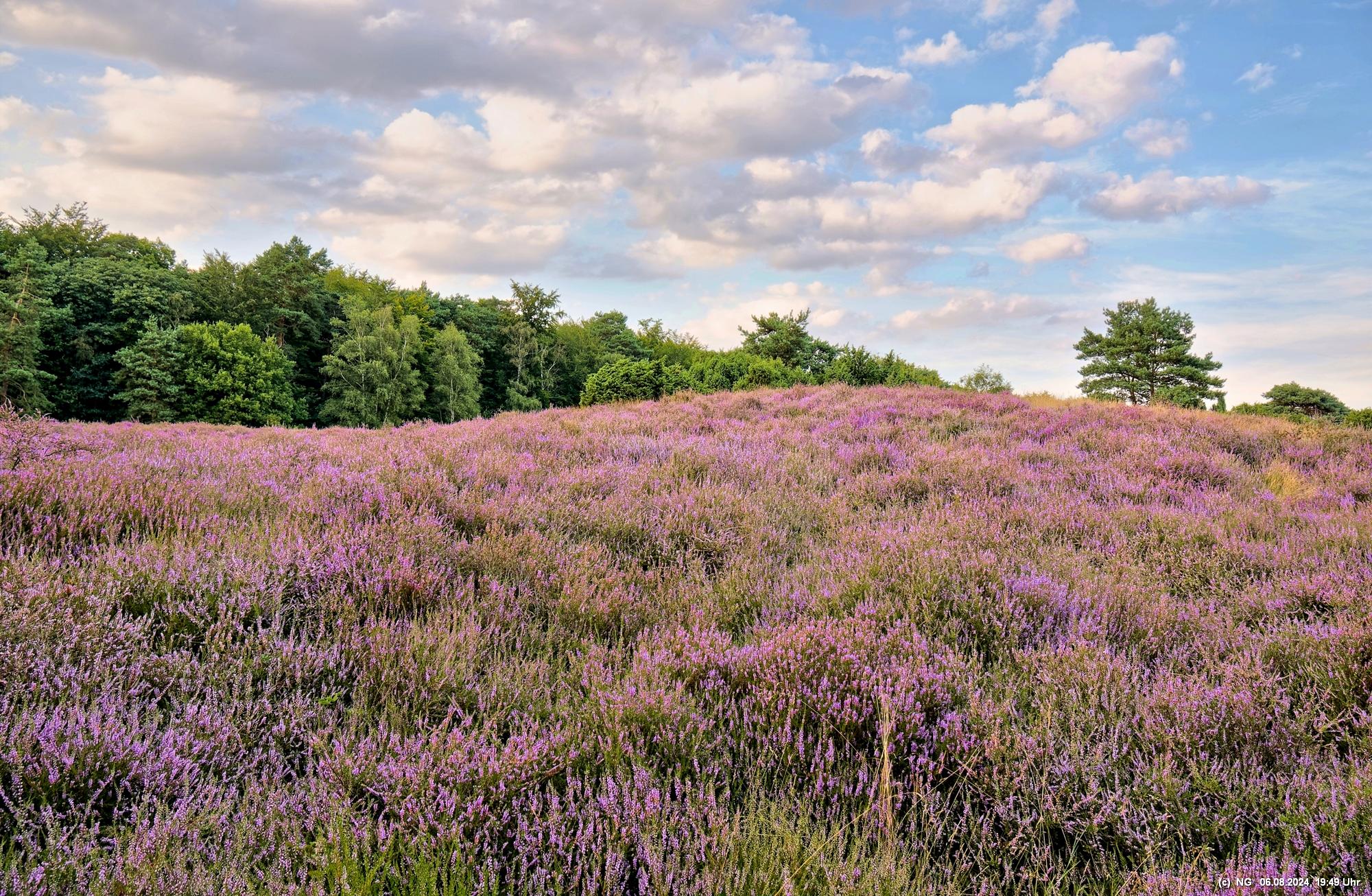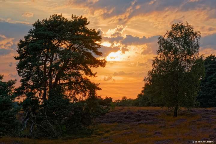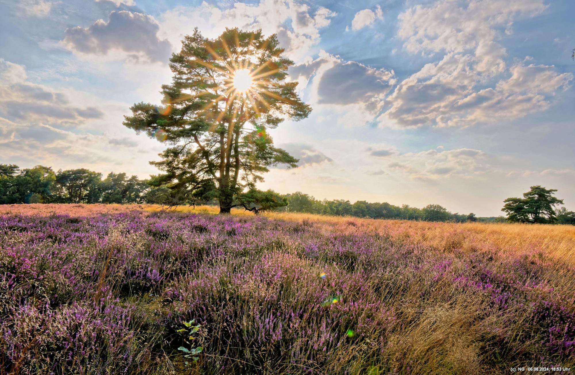 Und die in der größten zusammenhängenden Heidelandschaft in NRW nach dem vielen Regen in diesem Jahr besonders ausgeprägt. Es leuchtet und duftet überall. Mit Mitgliedern der Fotogruppe "Revierblicke" ging es in die Heide. Wir wollten den Sonnenuntergang sehen und fotografieren. Das Wetter war gut und die Heide nicht besonders voll. Also - ideale Bedingungen - bis auf den Sonnenuntergang selber. Durch hohe Wolken war die Sonne nicht klar sichtbar. Aber es hat sich allemal gelohnt!