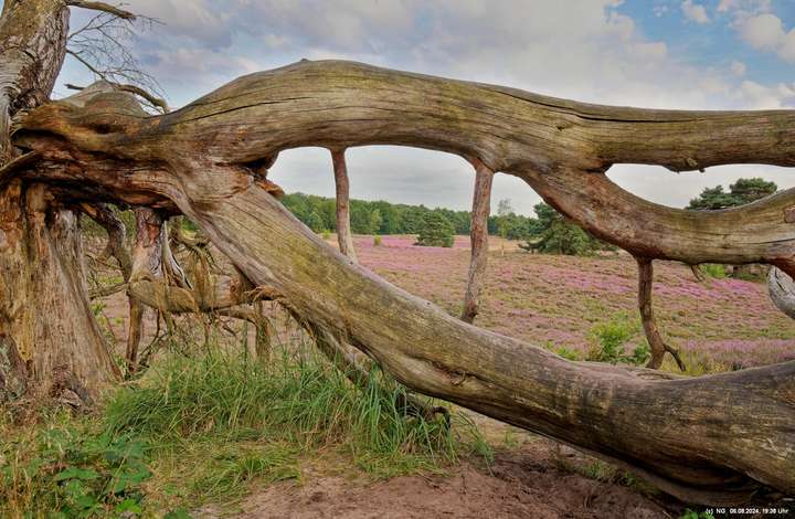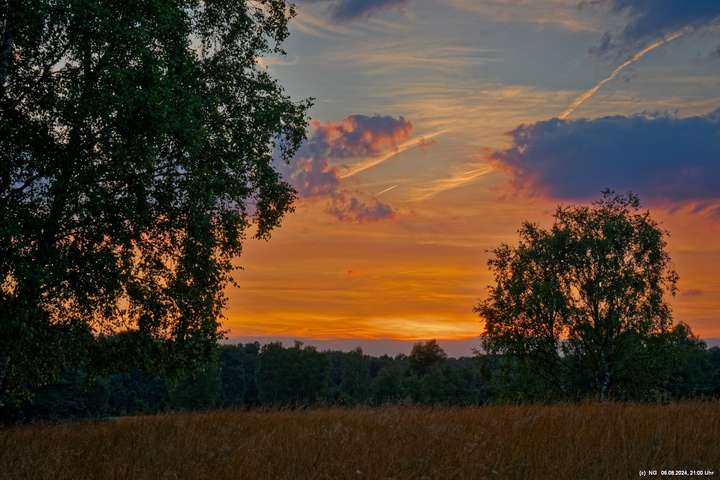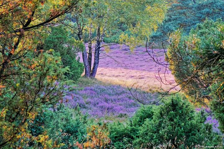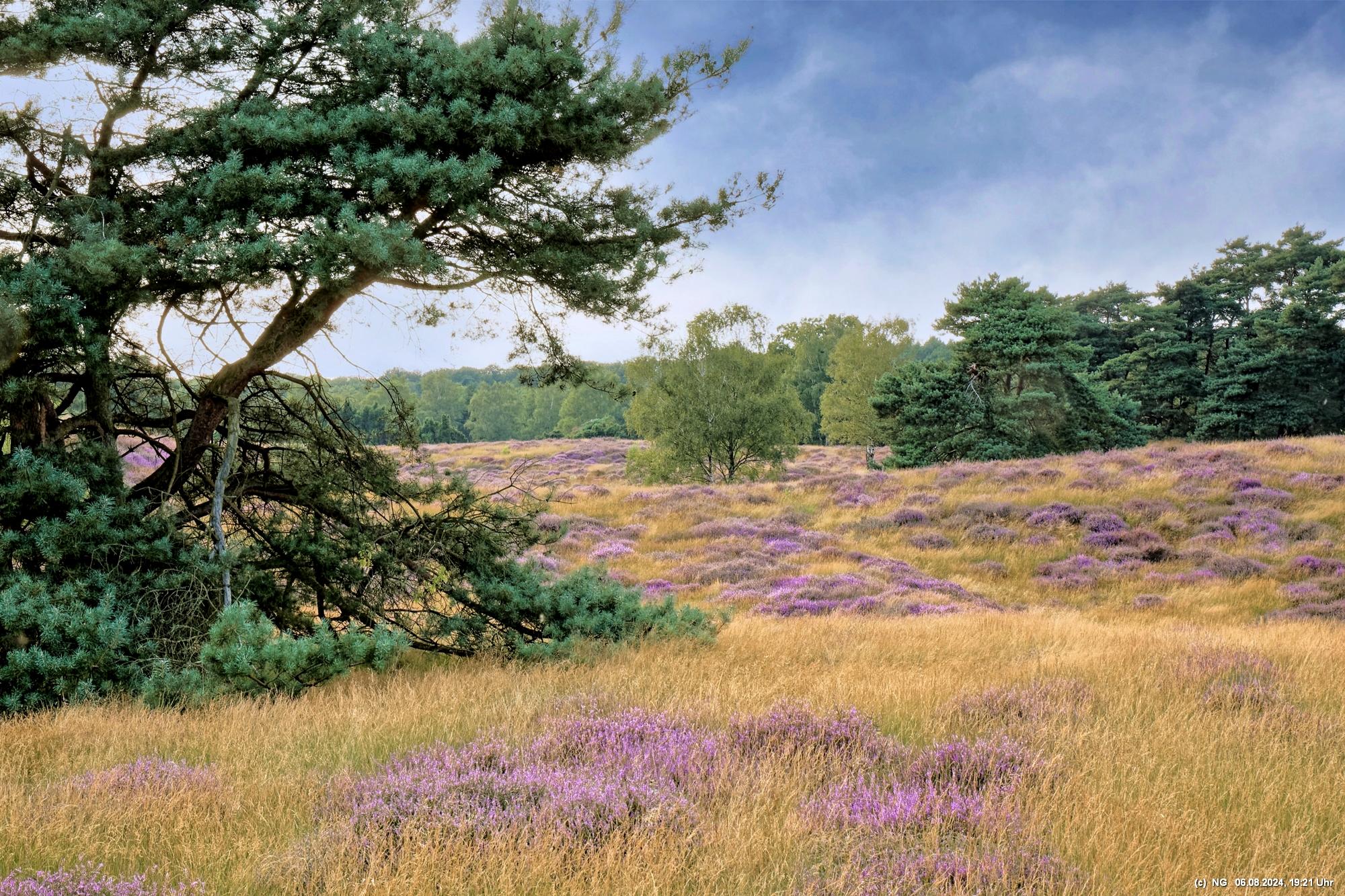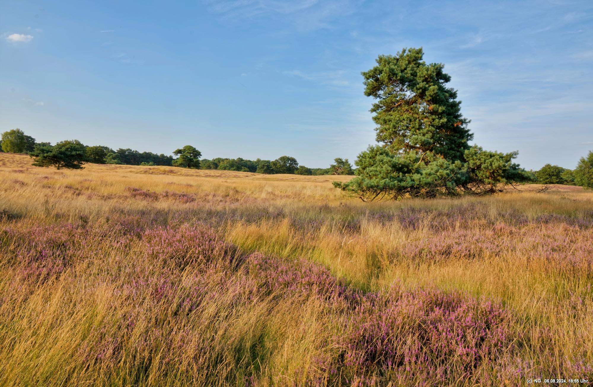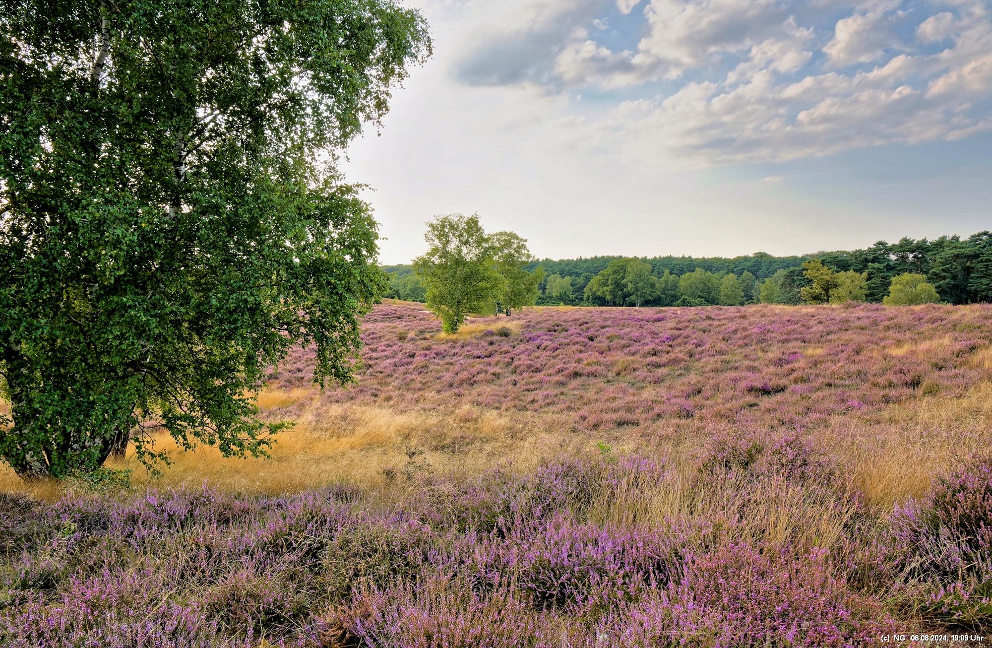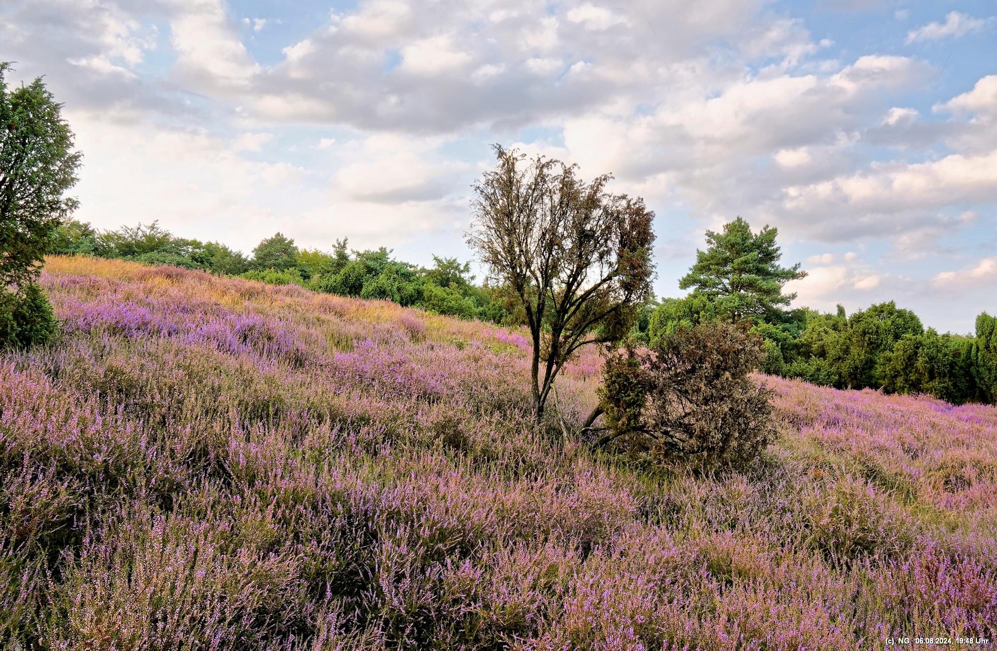 Und die in der größten zusammenhängenden Heidelandschaft in NRW nach dem vielen Regen in diesem Jahr besonders ausgeprägt. Es leuchtet und duftet überall. Mit Mitgliedern der Fotogruppe "Revierblicke" ging es in die Heide. Wir wollten den Sonnenuntergang sehen und fotografieren. Das Wetter war gut und die Heide nicht besonders voll. Also - ideale Bedingungen - bis auf den Sonnenuntergang selber. Durch hohe Wolken war die Sonne nicht klar sichtbar. Aber es hat sich allemal gelohnt!