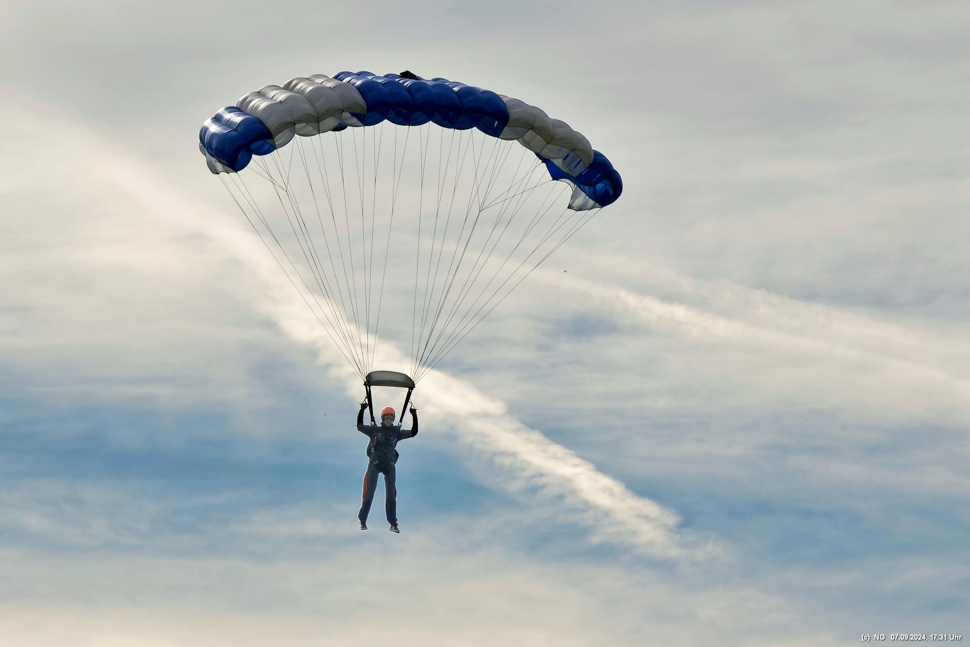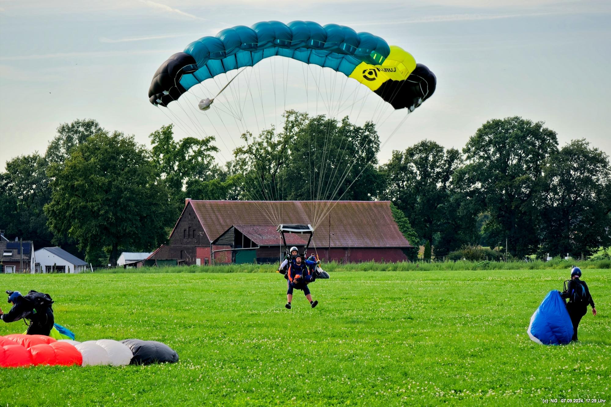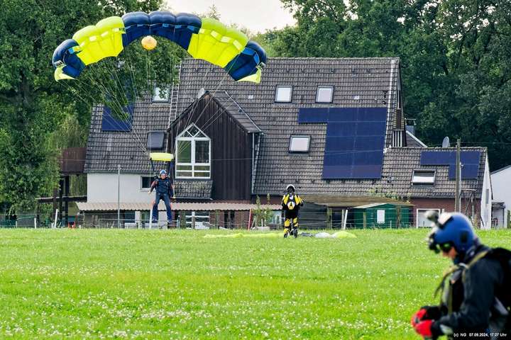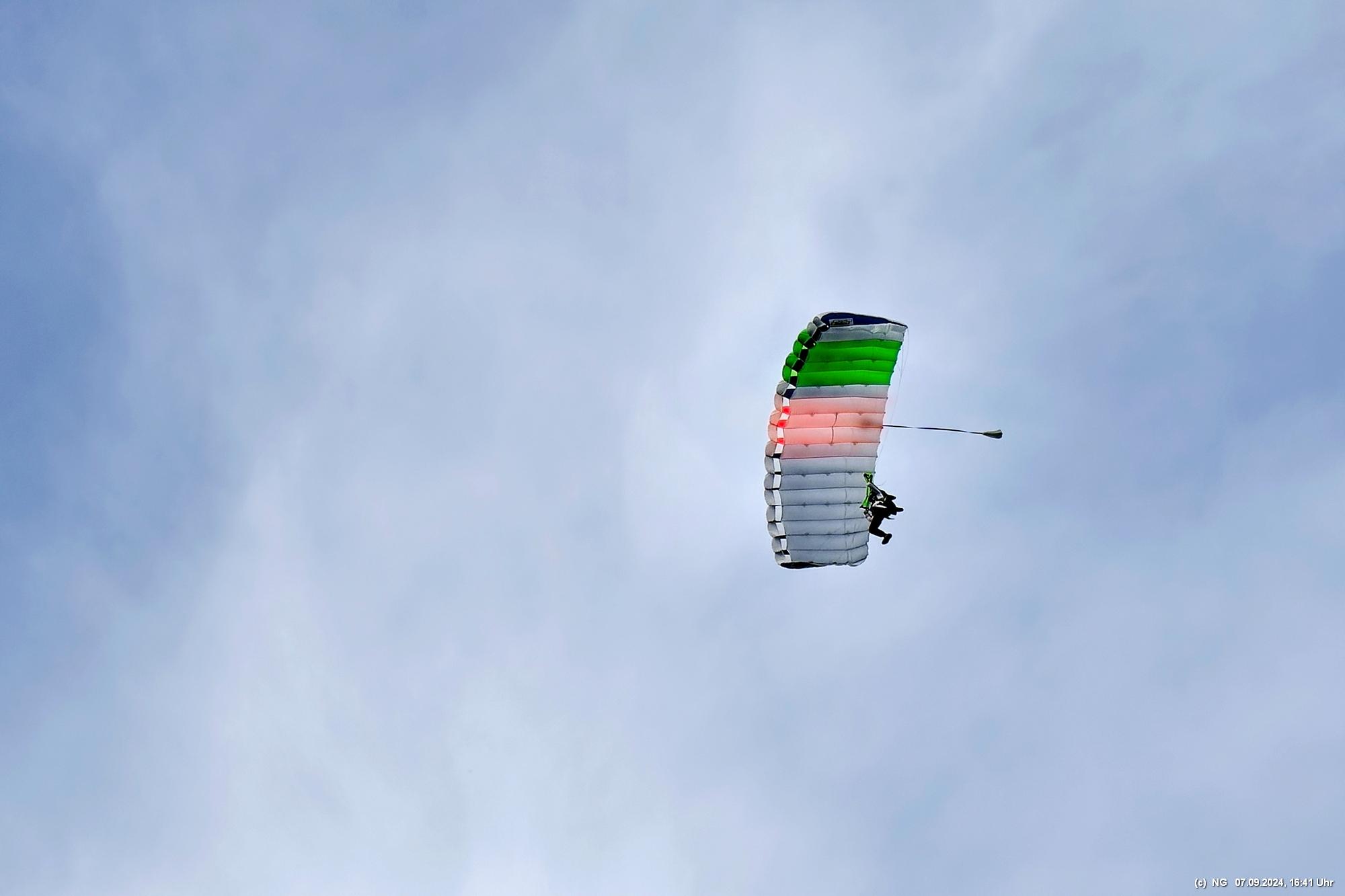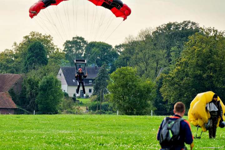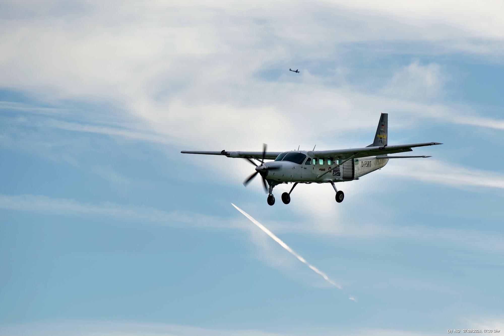 Zuerst haben wir geflucht, weil unser Navi mal wieder gesponnen hat. Es ging im Zick-Zack-Kurs mit doppelter Entfernung dorthin und dann war am "Ziel" ein rund 100 m breites Feld zwischen uns und dem Flugplatz. Nachdem wir es dann doch noch geschafft haben, wurde wir mit viel Flugverkehr und mehreren Runden Fallschirmsprüngen entschädigt. Es war schon sehr beeindruckend!