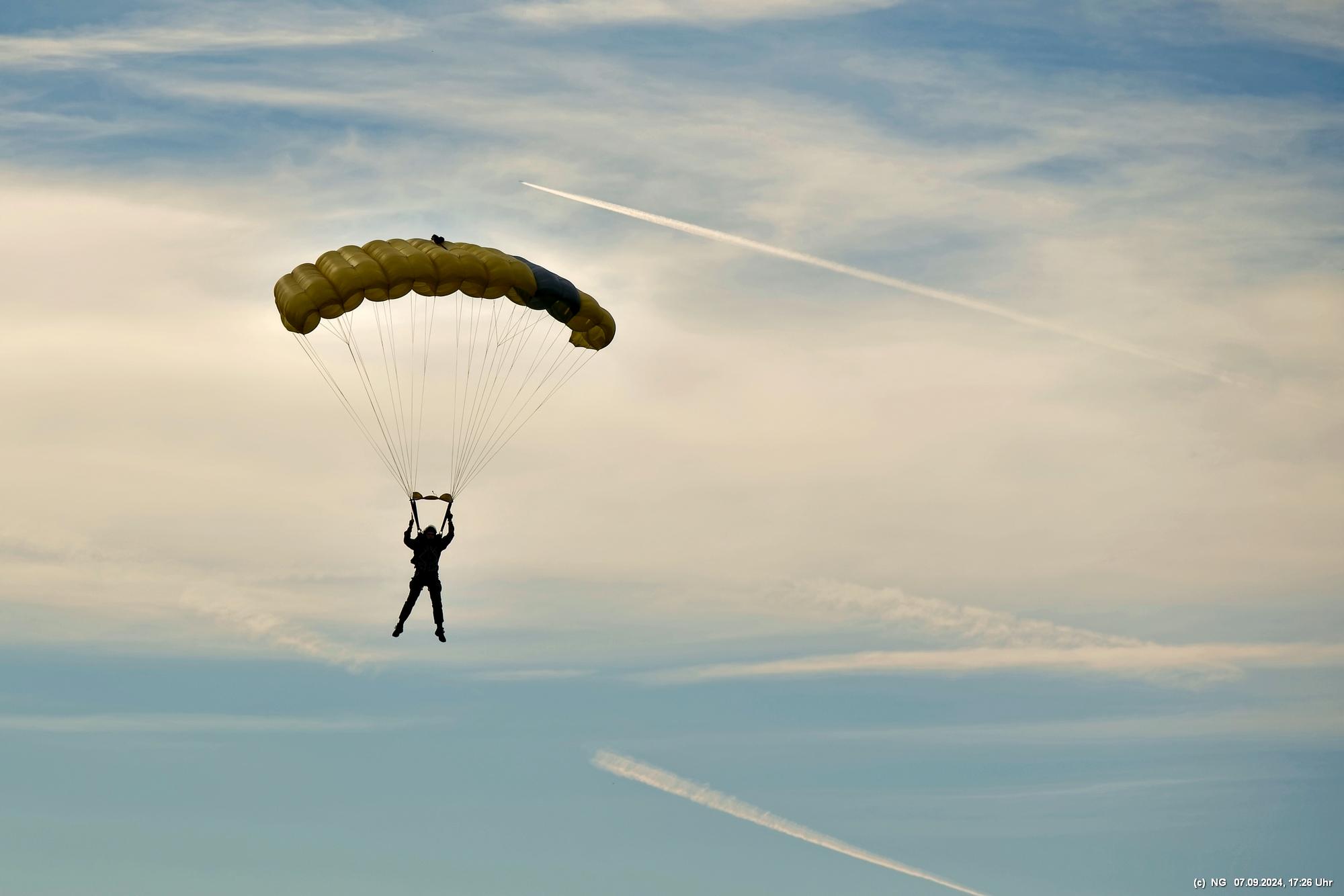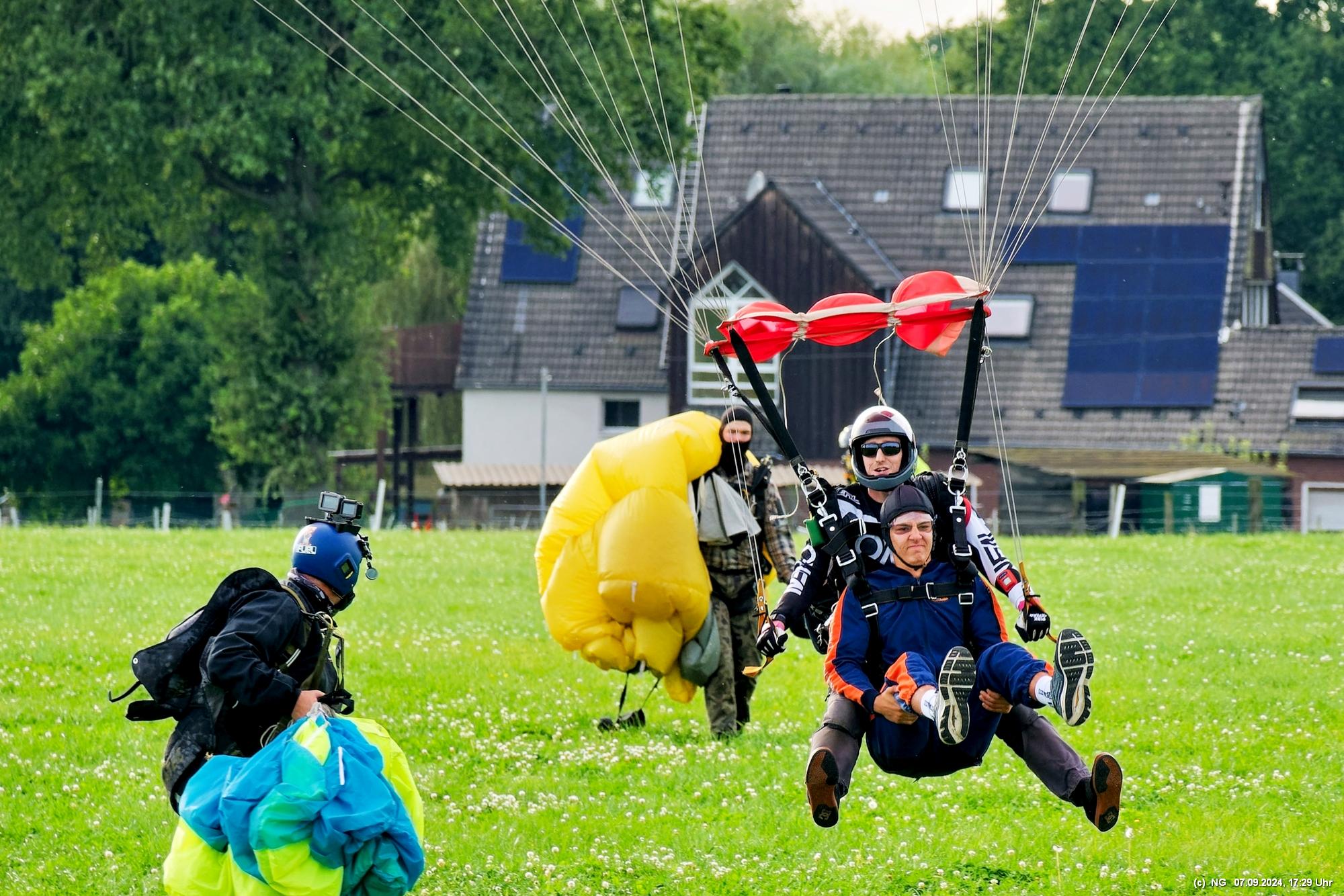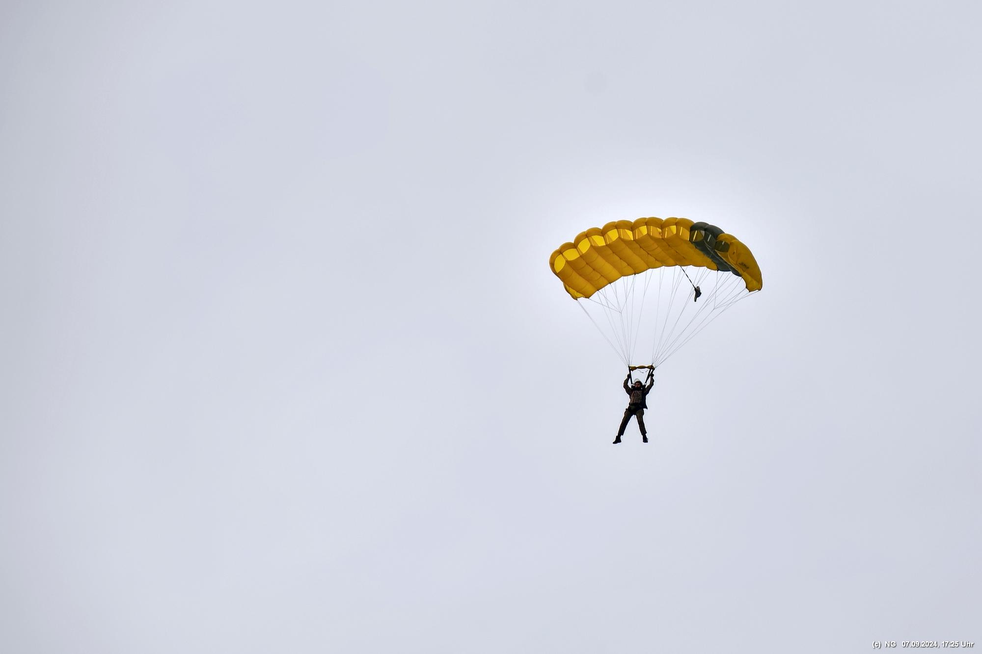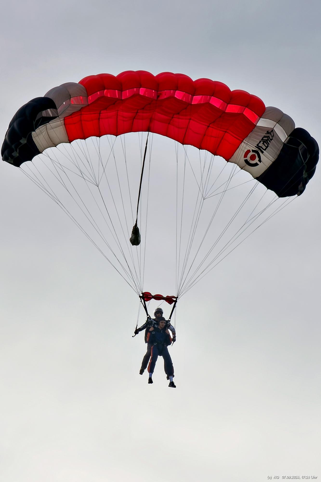 Zuerst haben wir geflucht, weil unser Navi mal wieder gesponnen hat. Es ging im Zick-Zack-Kurs mit doppelter Entfernung dorthin und dann war am "Ziel" ein rund 100 m breites Feld zwischen uns und dem Flugplatz. Nachdem wir es dann doch noch geschafft haben, wurde wir mit viel Flugverkehr und mehreren Runden Fallschirmsprüngen entschädigt. Es war schon sehr beeindruckend!