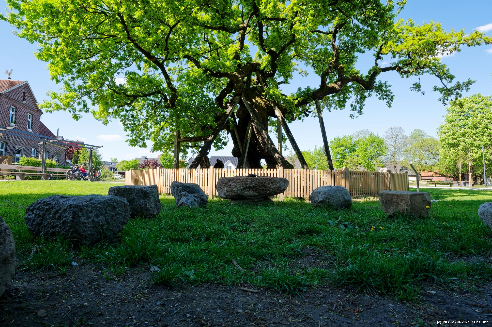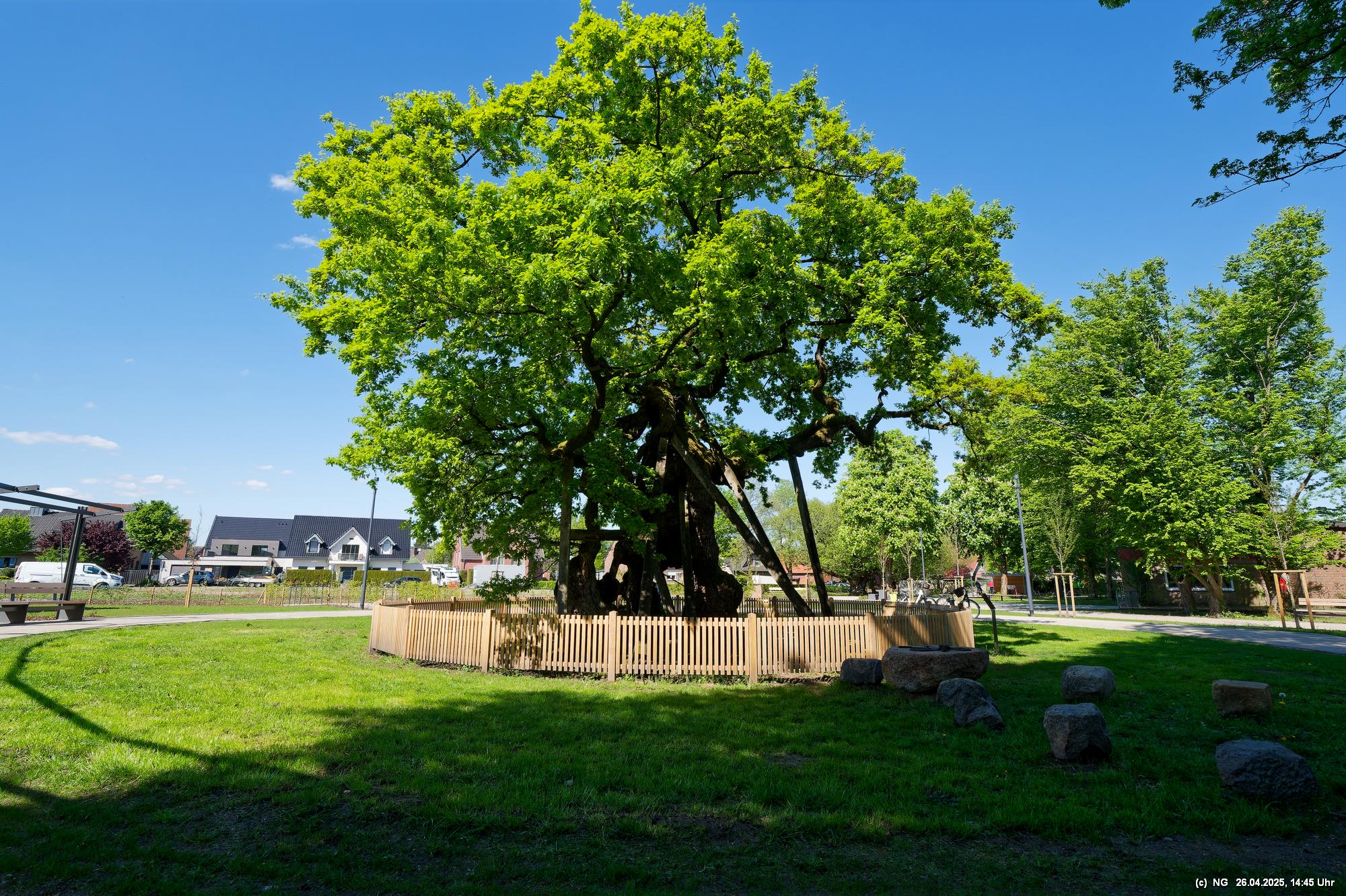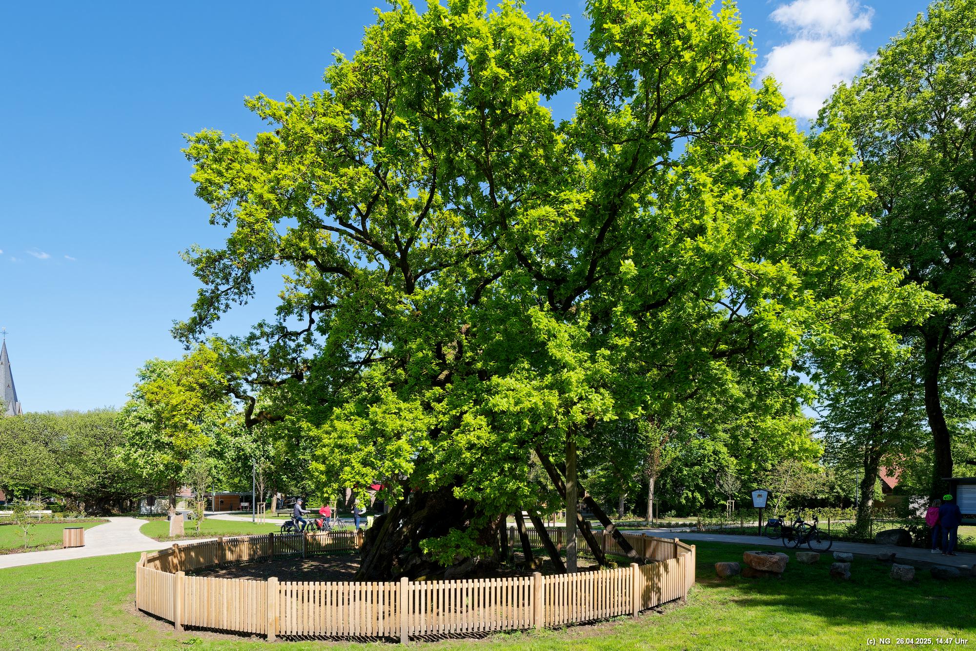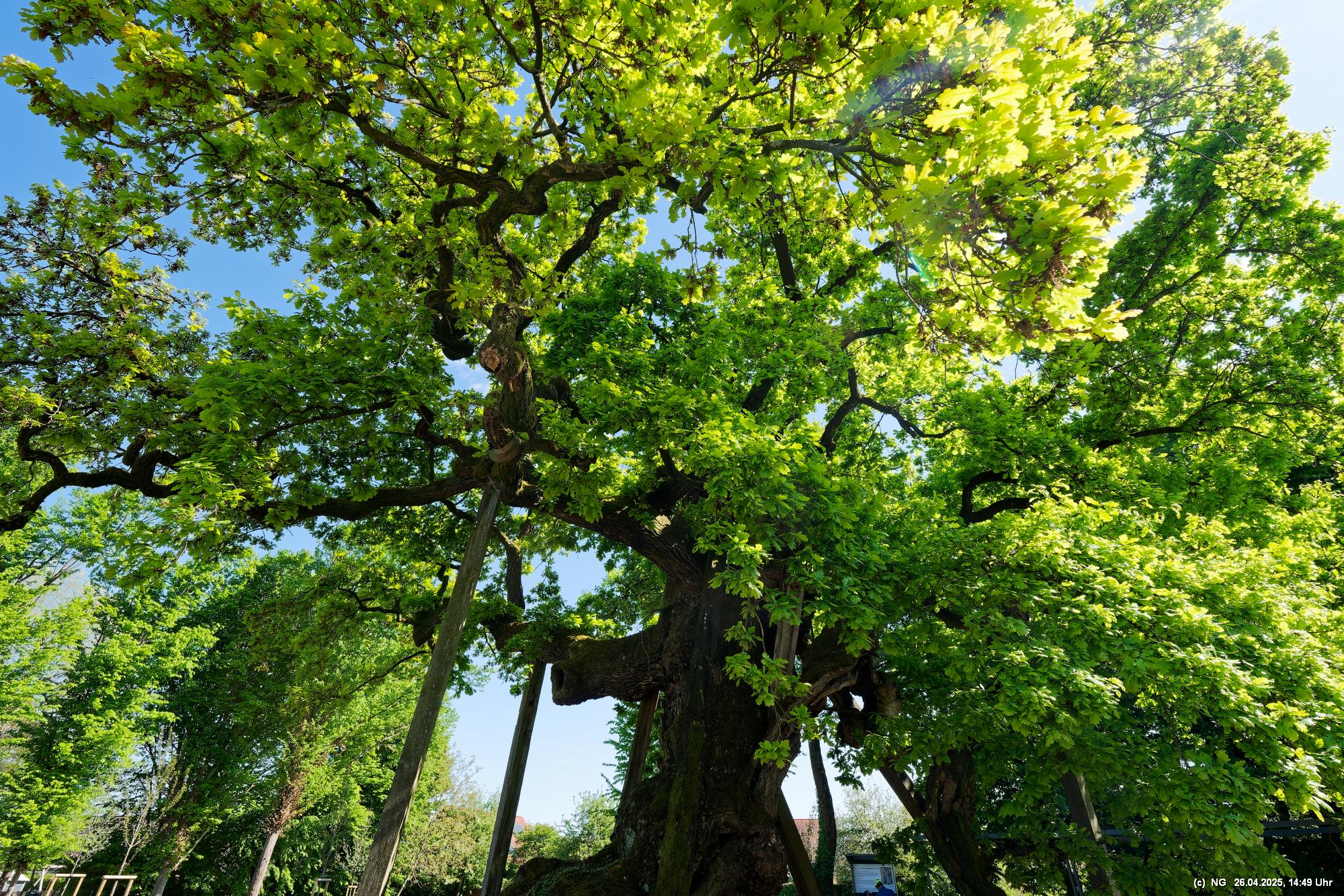 Die Umgebung der um die 800 bis 1100-jährige Eiche wurde völlig neu gestaltet und soll am 27.04.2025 feierlich freigegeben werden.