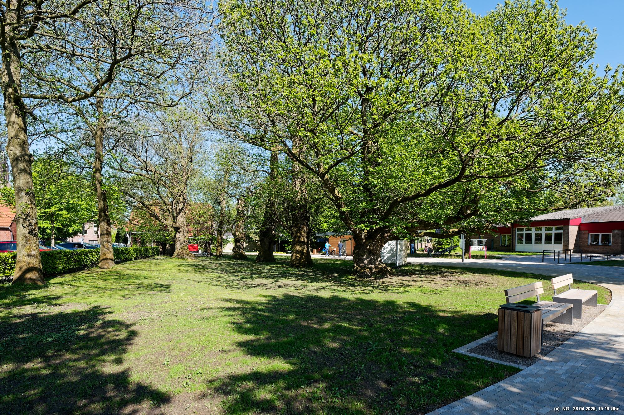 Angekündigt wurde eine großzügige Gestaltung der umgebenden Fläche. Das Ergebnis hat uns überrascht - in zweierlei Hinsicht: Es gibt breite Rad- und Fußwege, die im Bereich des Rundweges um die Eiche durch Bänke rechts schmal sind. Die Wege sind aber ordentlich und gut geführt. Dazwischen gibt es nur Grasflächen mit geringem Gehölzbestand. Die Fläche ist also übersichtlich. Erschrocken waren wir beim Blick auf die alte Eiche. Sie steht jetzt frei im Raum und hat all ihre Mystik verloren. Schlimmer noch - jetzt sieht man dahinter die Straße mit Häusern und Autoverkehr. Es ist eine Insellage geworden, zu der die Touristen strömen sollen. Warum sonst stehen dort auf kürzestem Raum mehr als 20 Bänke? Die Menschen müssen sich sicher nach Spaziergängen von 100 oder 200 m ausruhen und dort verweilen. Nur, wo sollen die alle herkommen - und wo gehen die dann hin? Kleines Fazit: Es ist eine saubere Gestaltung mit einer noch nie gesehenen Dichte an Bänken. Nein, der Charme ist weg. Leider!