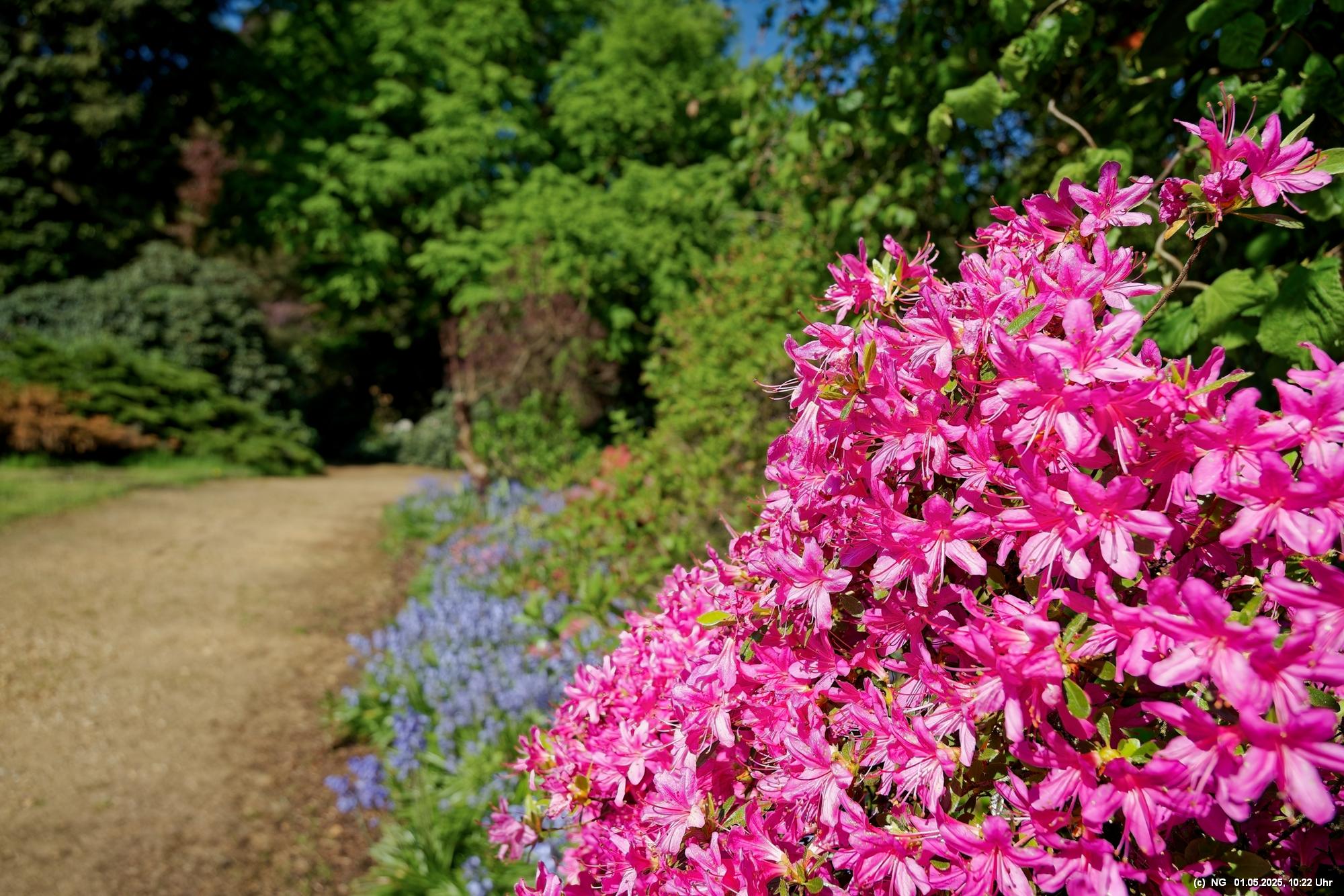 Noch etwas zögerlich, aber schon mit Farben und Formen zeigt sich die Schönheit dieses Parks. Am Feiertag (1.5.) waren wir bei Kassenöffnung da und konnten somit längere Zeit ungestört durch die Natur schlendern und uns an den Farben erfreuen. Die Frösche an dem Teich fangen auch langsam sich akustisch zu melden und es duftet schon. Bei bestem Wetter (zu der Zeit waren die Temperaturen noch erträglich) hat es Spaß gemacht, auch wenn wir nur noch zu Dritt gehen können. Unsere Indy hat uns leider vor 2 Tagen verlassen müssen.