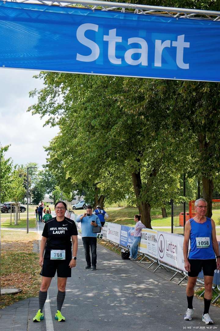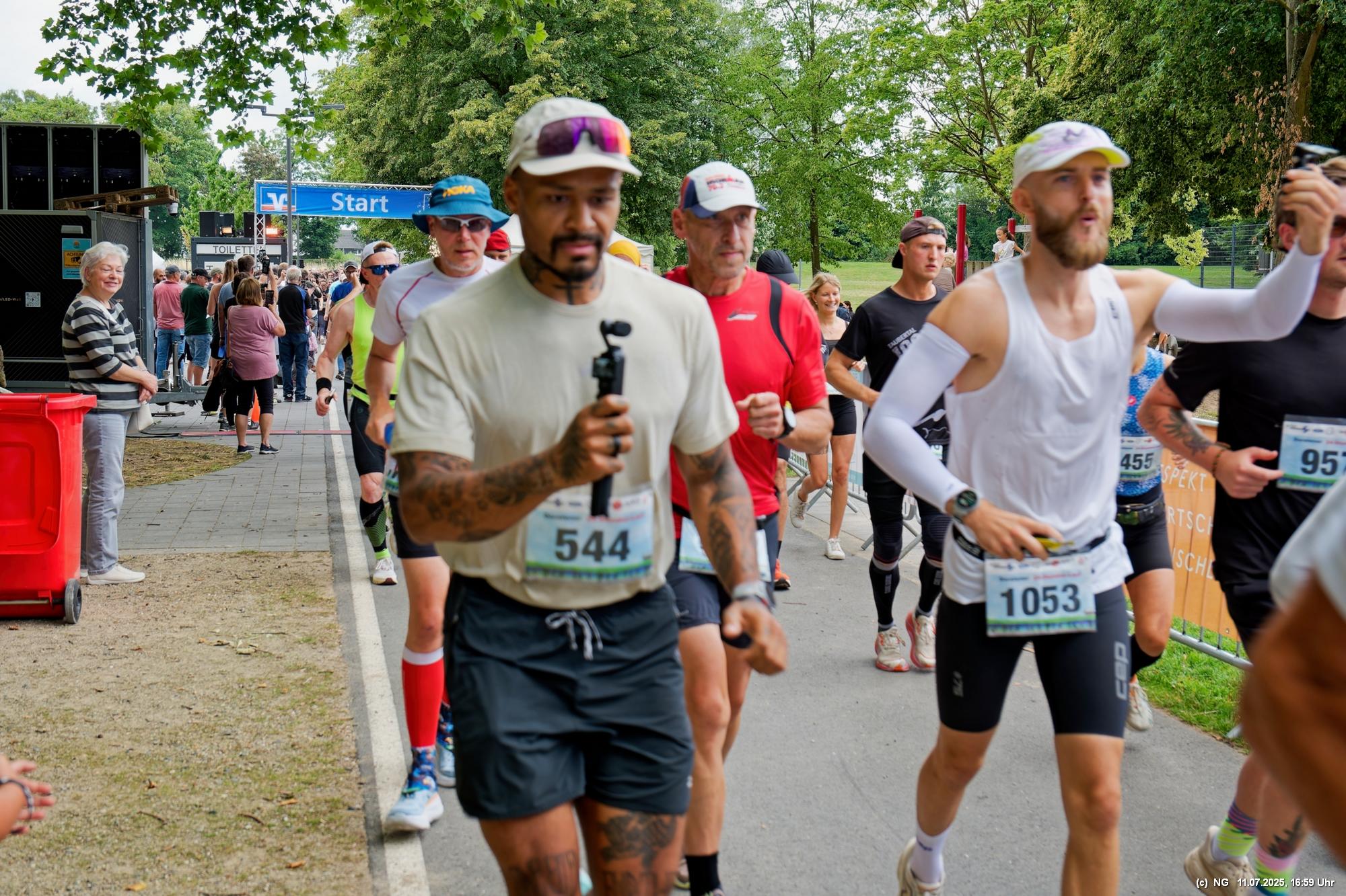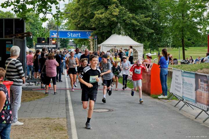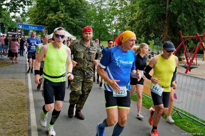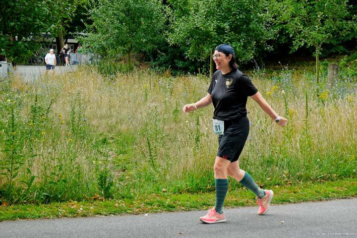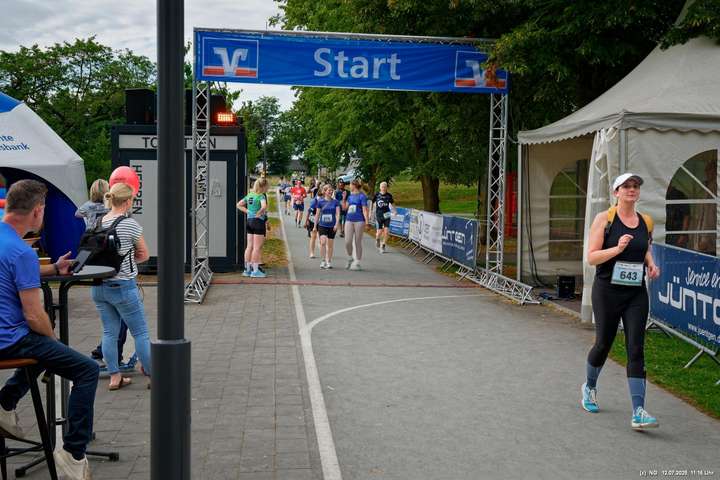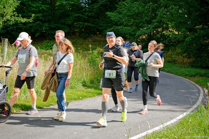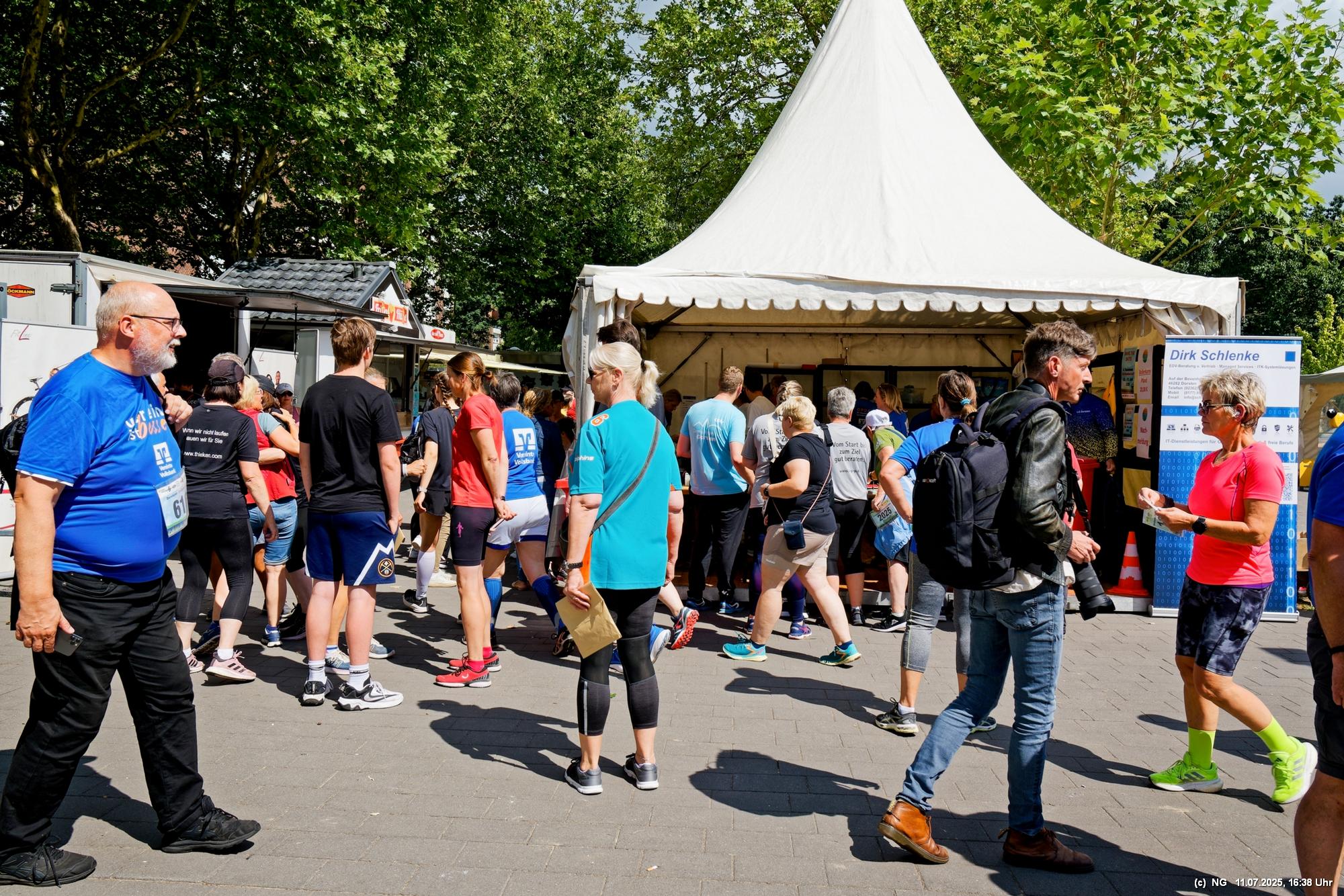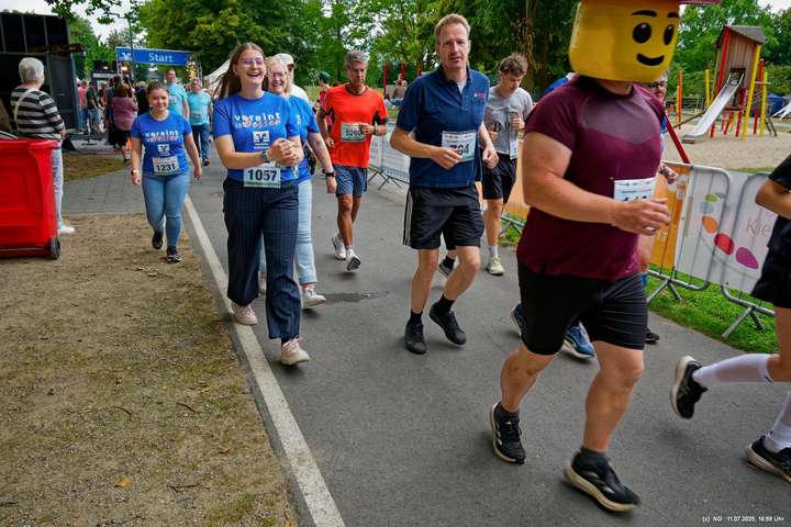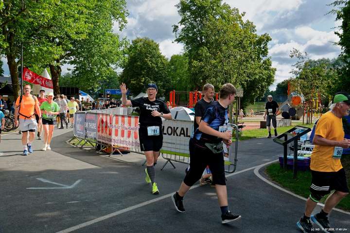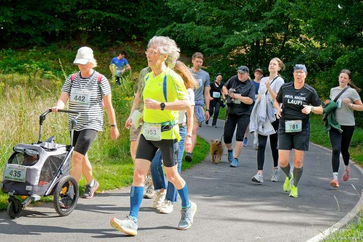Es hatte Volksfestcharakter. Vielen ging es nicht um die sportliche Leistung, sondern um die Teilnahme und den Spaß daran. Dennoch wurden Höchstleistungen vollbracht. Wie z.B. eine 100-jährige Frau mit ihrem Rollator. Die Strecke war knapp 1 km lang und führte durch den Bürgerpark Maria-Lindenhof und auch entlang Kanal und Lippe (mit ordentlicher Steigung am Deich). Die Spitzenleistung lag bei den Männern bei 218 Runden und bei den Frauen bei 150 Runden. Was für Leistungen! Unsere Freundin Melanie aus Kirchhellen hat auch die Zahl 100 km (=104 Runden) geknackt. Es war ein persönlicher Rekord und ihr großes Ziel. Wir gratulieren allen Teilnehmern und den Organisatoren. Das hatten wir so gar nicht erwartet.