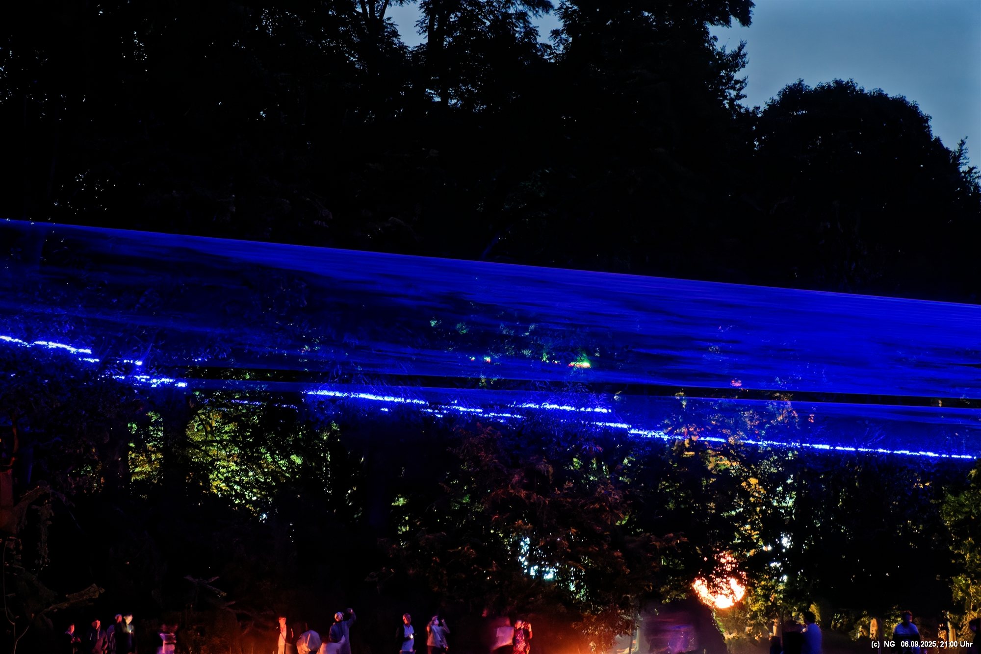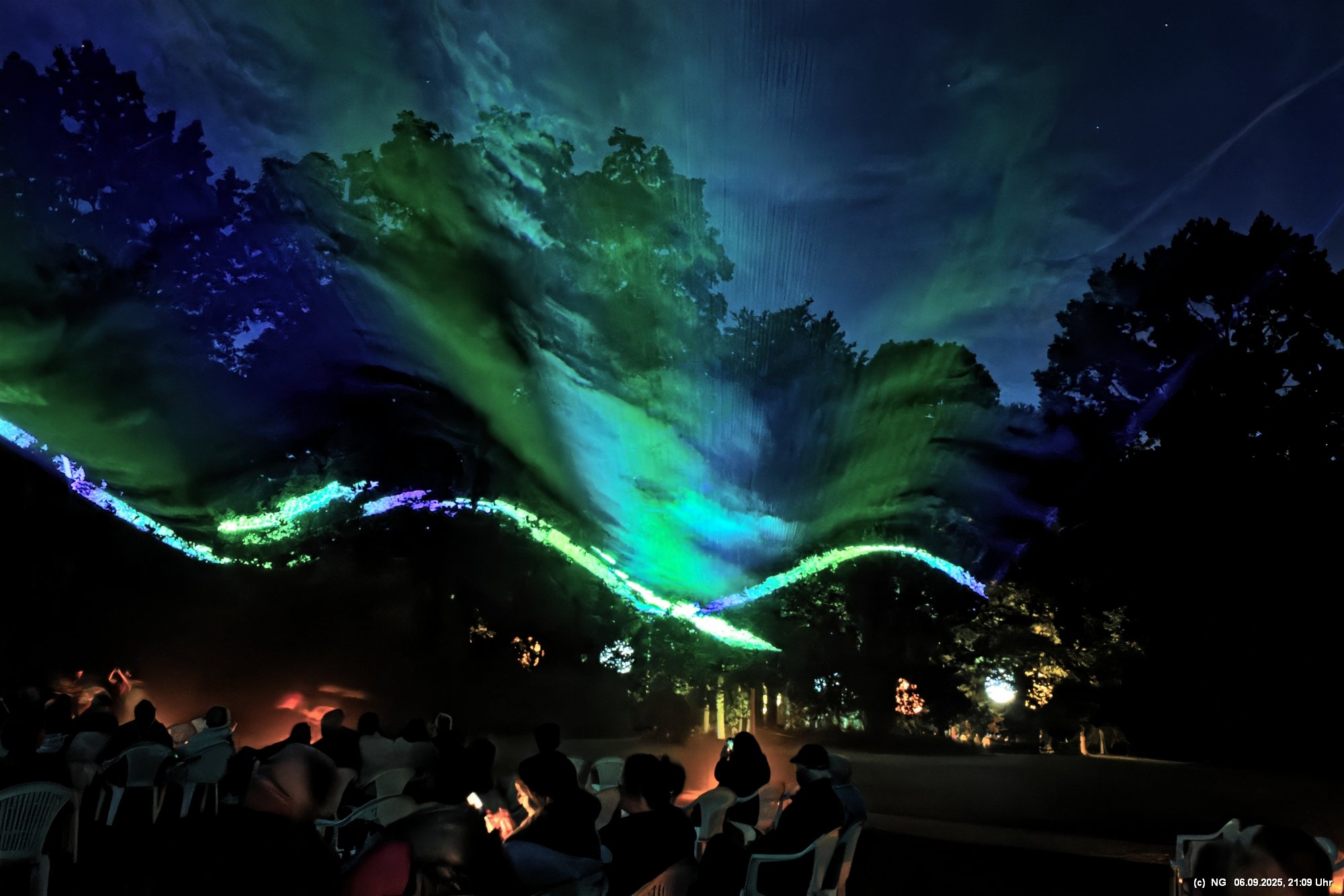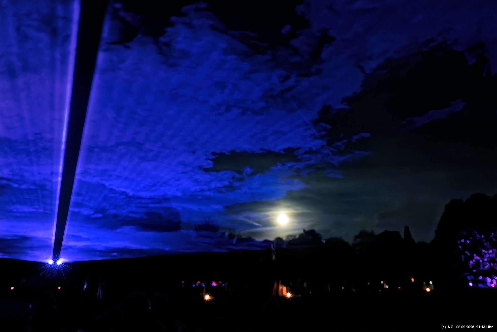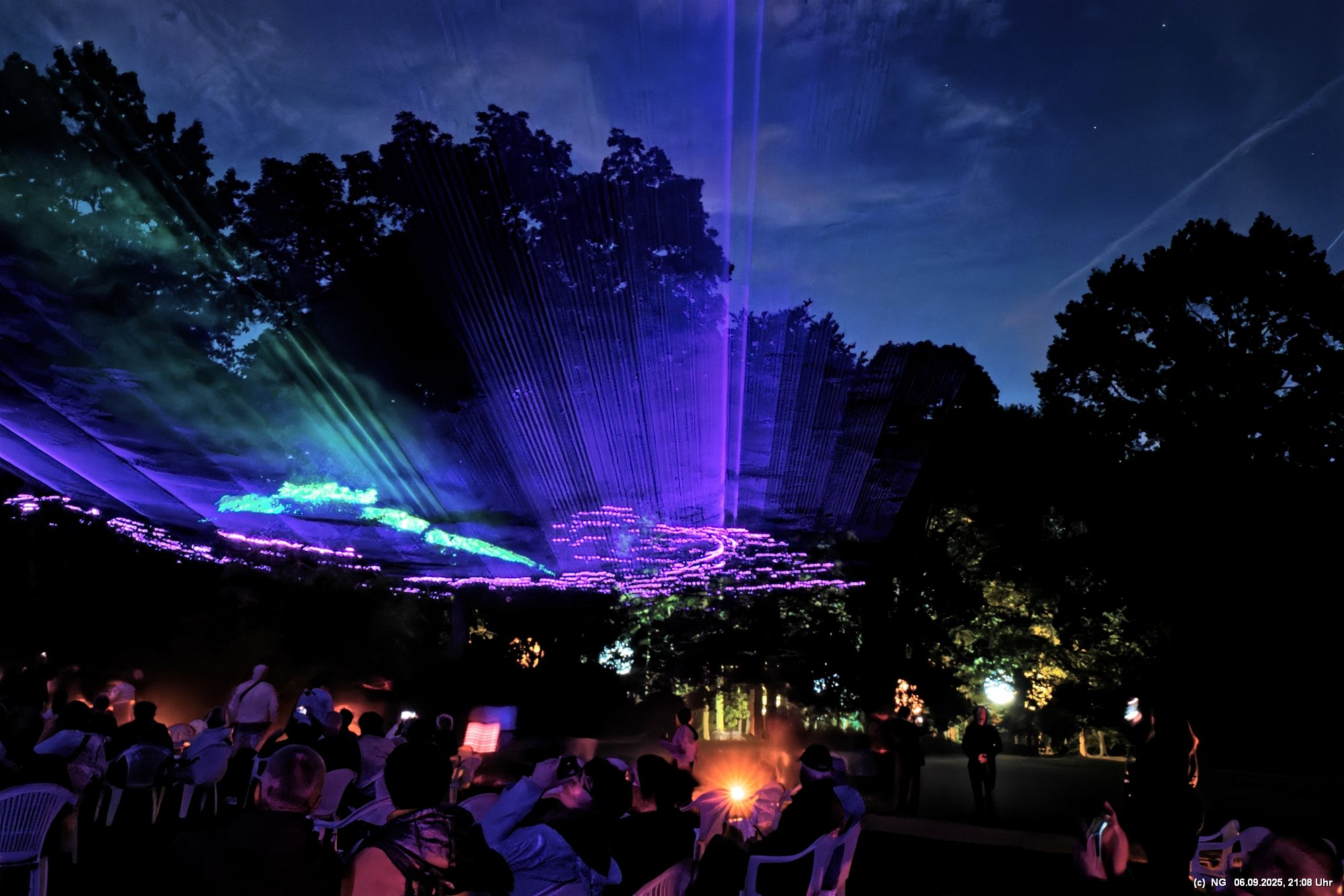 Früher war es der Höhepunkt unserer jährlichen Veranstaltungsbesuche. Dass die Veranstalter gewaltig gespart haben, glauben wir auch an den weniger gewordenen Besuchern zu erkennen - denn viele haben dann halt ihren Eintritt gespart. Der Eintrittspreis von 18,50 € ist auch ziemlich heftig. Unsere Kommentare von 2023 und 2024 können genau so wiederholt werden: "Vor einigen Jahren konnte man romantisch durch den Wald bummeln und hat den Gesprächen der Bäume gelauscht oder sich an phantasievollen Lichtinstallationen erfreut. Und jetzt? Teils fast kindische Installationen ohne Gesamtthematik und ohne Romantik. Oft billig gemacht!" Und in diesem Jahr kommt hinzu, dass es ganz simple, für einen derartigen Rahmen unwürdige Lichtsetzungen gab. Das Schloss war nur statisch beleuchtet (kein Videomapping mehr). Nur im Schlosshof gab es ein paar einfache bewegte Bilder ohne Zusammenhang. Beleuchtete Bäume gab es kaum. Aber dafür Lichtsetzungen vom niedrigsten Niveau. Das Beste war noch eine Horizontal-Lasershow, die so ähnlich auch schon vor 15 Jahren im Rahmen der Ruhr 2010 zu sehen war, allerdings dort mit zusätzlichen Effekten wie Feuerkörbe und Rauch. Die Kritik der Besucher auf der gut 5 km langen Strecke war unterwegs nicht zu überhören. Unsere in den letzten Jahren mehrfach geäußerten Hinweise diesbezüglich wurden vom Veranstalter nicht einmal beantwortet. Konsequenz: Für das Gezeigte ist und der Eintrittspreis zu hoch und die gefahrenen 2 1/2 Stunden einfach zu lang. Wir verabschieden uns und machen da nicht mehr mit!