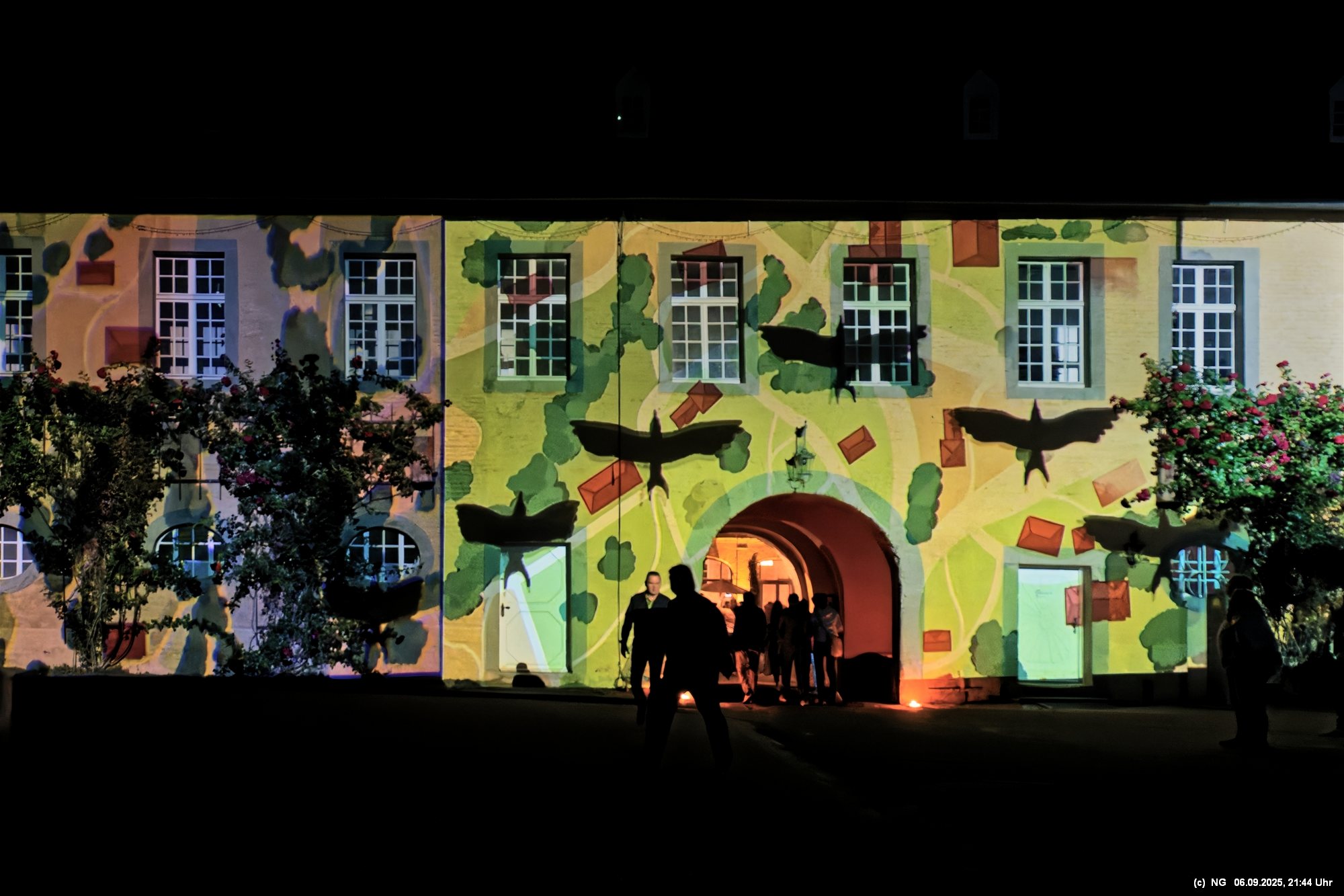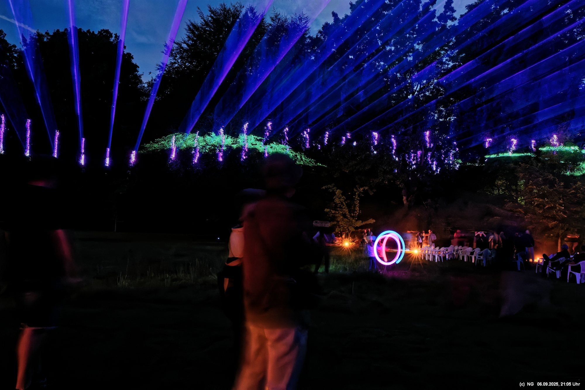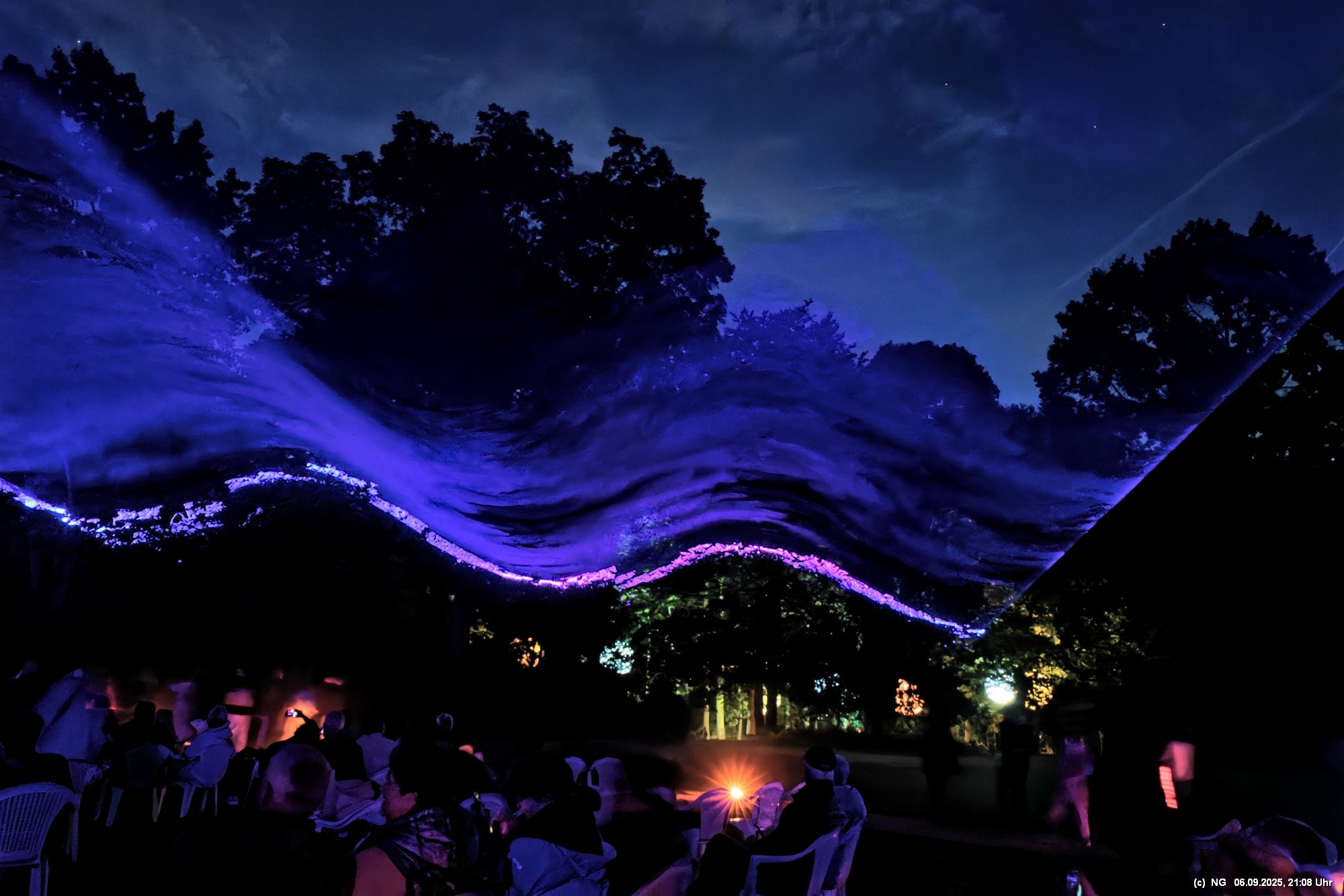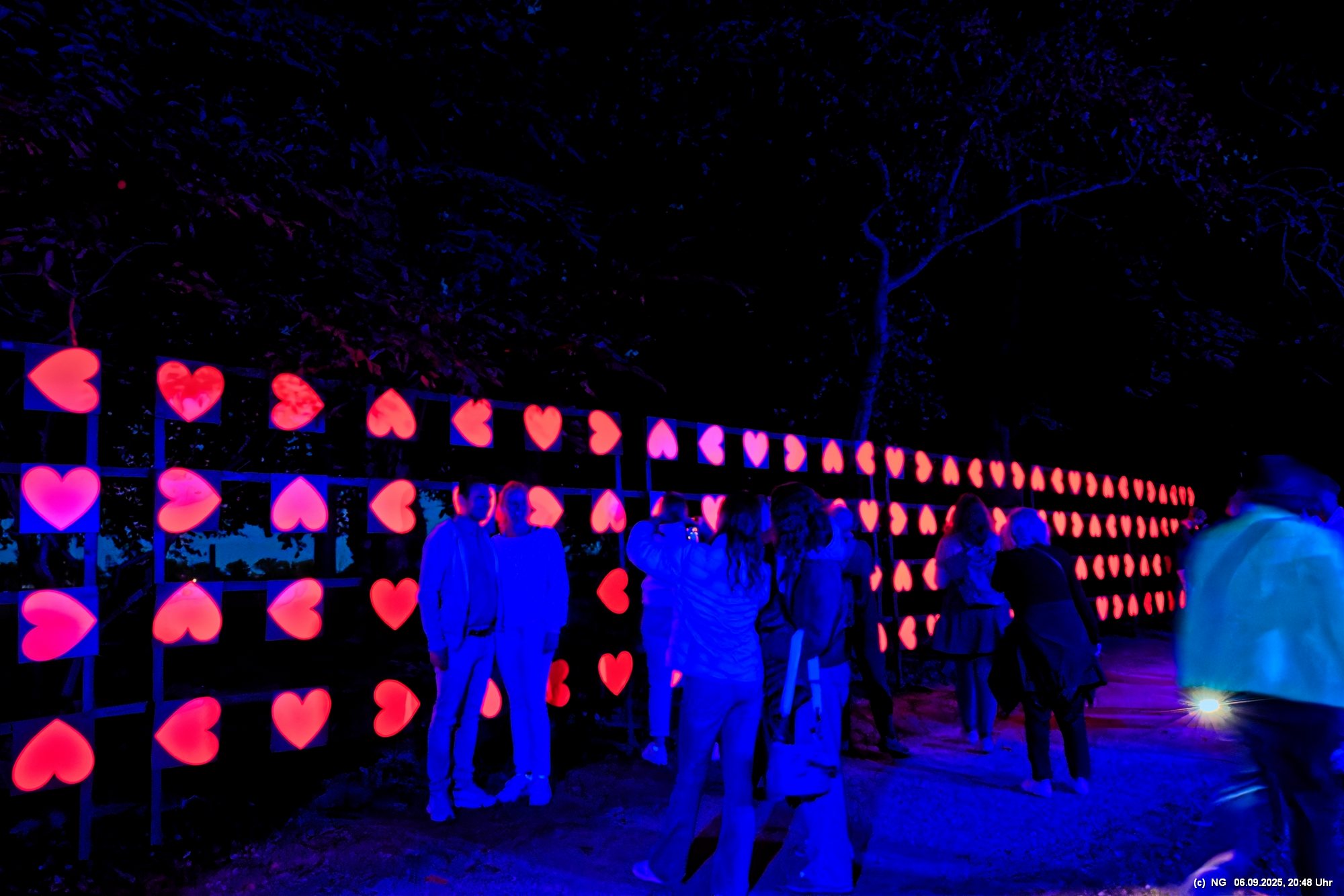 Früher war es der Höhepunkt unserer jährlichen Veranstaltungsbesuche. Dass die Veranstalter gewaltig gespart haben, glauben wir auch an den weniger gewordenen Besuchern zu erkennen - denn viele haben dann halt ihren Eintritt gespart. Der Eintrittspreis von 18,50 € ist auch ziemlich heftig. Unsere Kommentare von 2023 und 2024 können genau so wiederholt werden: "Vor einigen Jahren konnte man romantisch durch den Wald bummeln und hat den Gesprächen der Bäume gelauscht oder sich an phantasievollen Lichtinstallationen erfreut. Und jetzt? Teils fast kindische Installationen ohne Gesamtthematik und ohne Romantik. Oft billig gemacht!" Und in diesem Jahr kommt hinzu, dass es ganz simple, für einen derartigen Rahmen unwürdige Lichtsetzungen gab. Das Schloss war nur statisch beleuchtet (kein Videomapping mehr). Nur im Schlosshof gab es ein paar einfache bewegte Bilder ohne Zusammenhang. Beleuchtete Bäume gab es kaum. Aber dafür Lichtsetzungen vom niedrigsten Niveau. Das Beste war noch eine Horizontal-Lasershow, die so ähnlich auch schon vor 15 Jahren im Rahmen der Ruhr 2010 zu sehen war, allerdings dort mit zusätzlichen Effekten wie Feuerkörbe und Rauch. Die Kritik der Besucher auf der gut 5 km langen Strecke war unterwegs nicht zu überhören. Unsere in den letzten Jahren mehrfach geäußerten Hinweise diesbezüglich wurden vom Veranstalter nicht einmal beantwortet. Konsequenz: Für das Gezeigte ist und der Eintrittspreis zu hoch und die gefahrenen 2 1/2 Stunden einfach zu lang. Wir verabschieden uns und machen da nicht mehr mit!