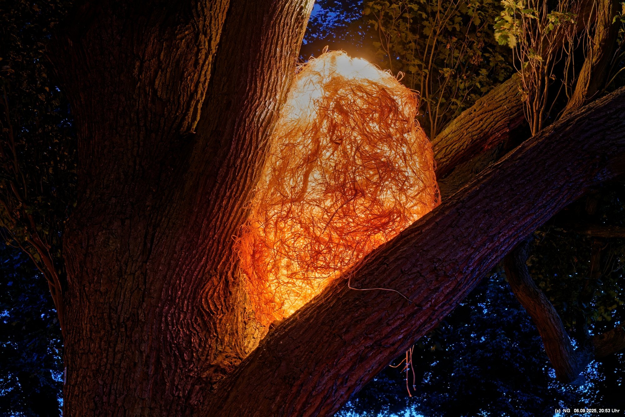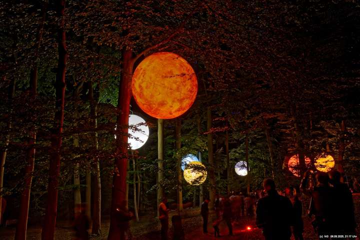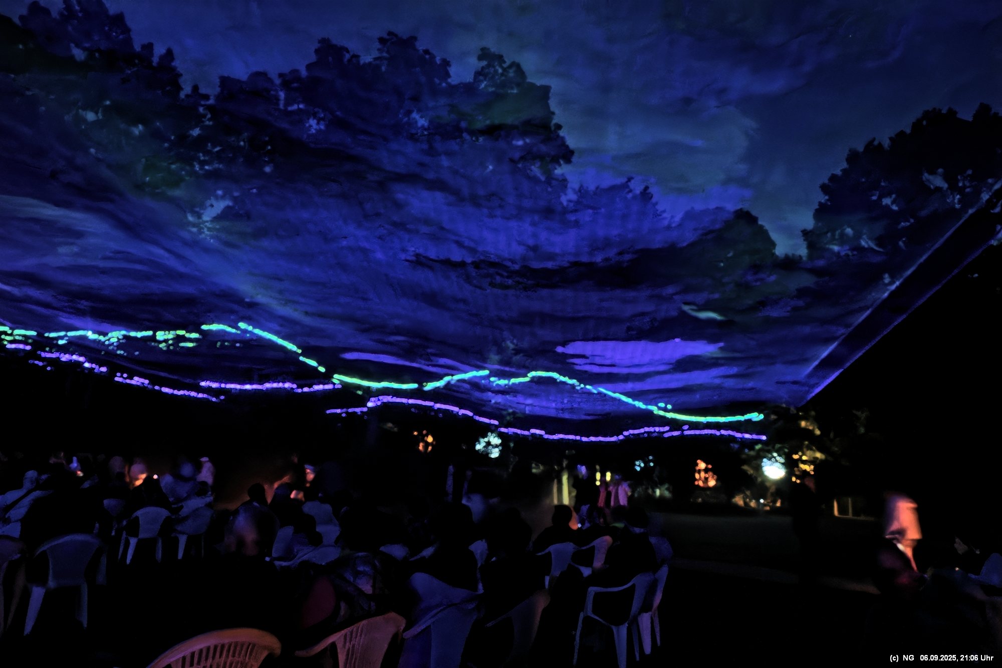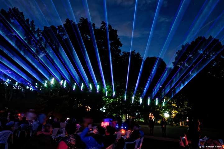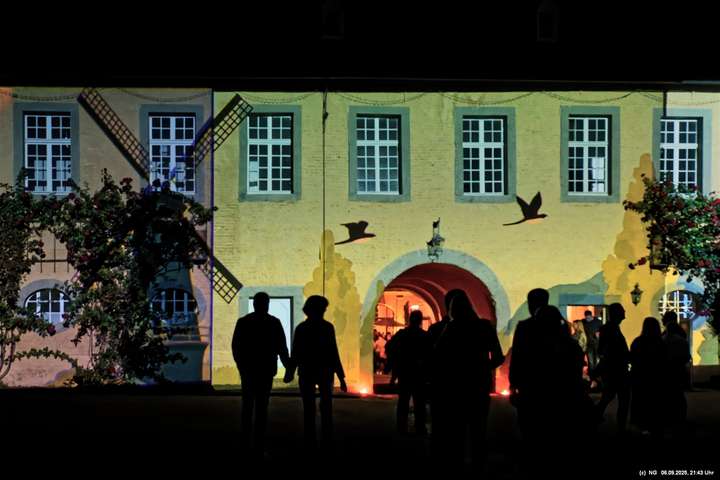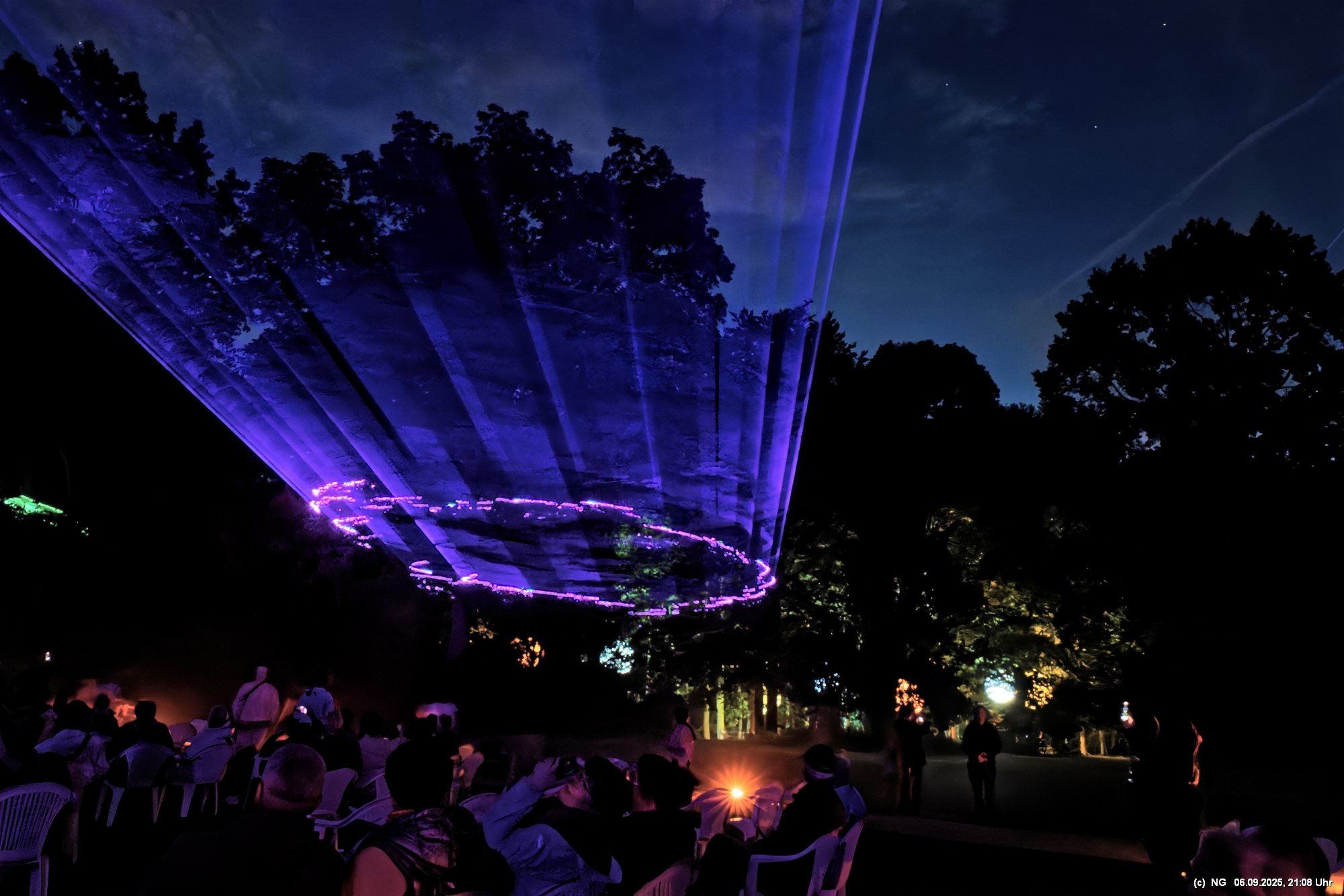Früher war es der Höhepunkt unserer jährlichen Veranstaltungsbesuche. Dass die Veranstalter gewaltig gespart haben, glauben wir auch an den weniger gewordenen Besuchern zu erkennen - denn viele haben dann halt ihren Eintritt gespart. Der Eintrittspreis von 18,50 € ist auch ziemlich heftig. Unsere Kommentare von 2023 und 2024 können genau so wiederholt werden: "Vor einigen Jahren konnte man romantisch durch den Wald bummeln und hat den Gesprächen der Bäume gelauscht oder sich an phantasievollen Lichtinstallationen erfreut. Und jetzt? Teils fast kindische Installationen ohne Gesamtthematik und ohne Romantik. Oft billig gemacht!" Und in diesem Jahr kommt hinzu, dass es ganz simple, für einen derartigen Rahmen unwürdige Lichtsetzungen gab. Das Schloss war nur statisch beleuchtet (kein Videomapping mehr). Nur im Schlosshof gab es ein paar einfache bewegte Bilder ohne Zusammenhang. Beleuchtete Bäume gab es kaum. Aber dafür Lichtsetzungen vom niedrigsten Niveau. Das Beste war noch eine Horizontal-Lasershow, die so ähnlich auch schon vor 15 Jahren im Rahmen der Ruhr 2010 zu sehen war, allerdings dort mit zusätzlichen Effekten wie Feuerkörbe und Rauch. Die Kritik der Besucher auf der gut 5 km langen Strecke war unterwegs nicht zu überhören. Unsere in den letzten Jahren mehrfach geäußerten Hinweise diesbezüglich wurden vom Veranstalter nicht einmal beantwortet. Konsequenz: Für das Gezeigte ist und der Eintrittspreis zu hoch und die gefahrenen 2 1/2 Stunden einfach zu lang. Wir verabschieden uns und machen da nicht mehr mit!