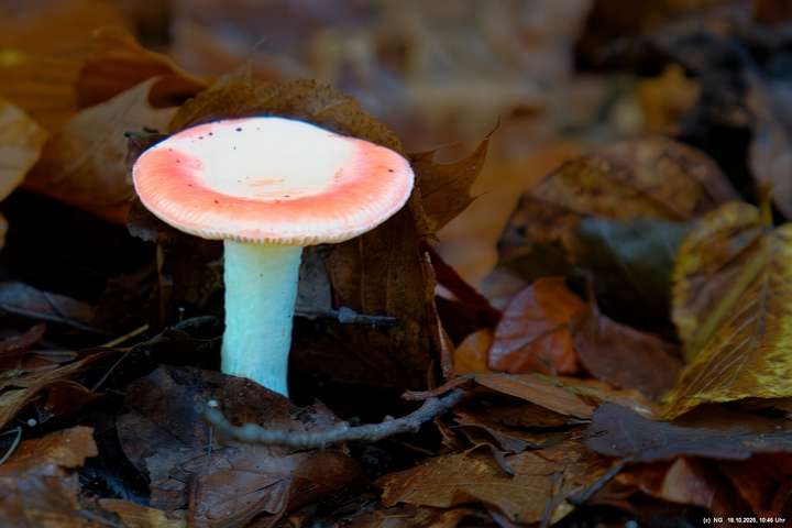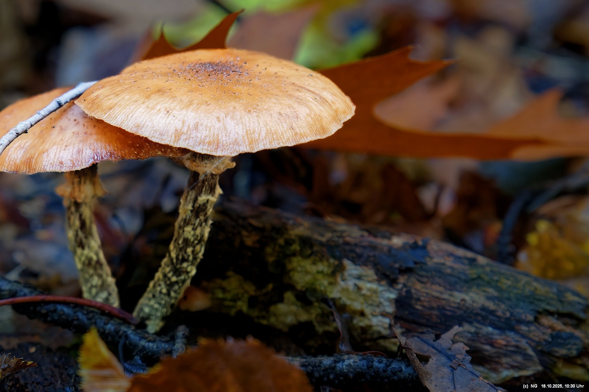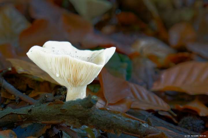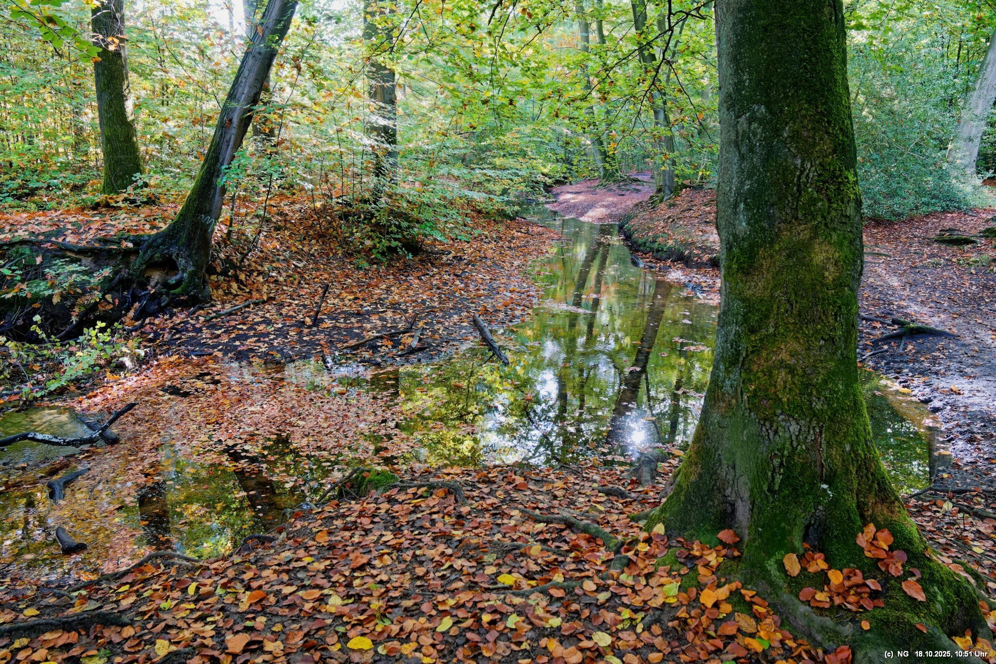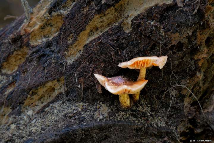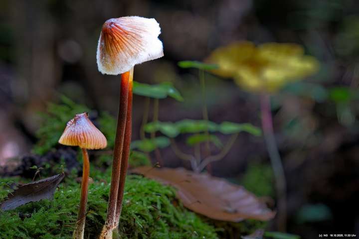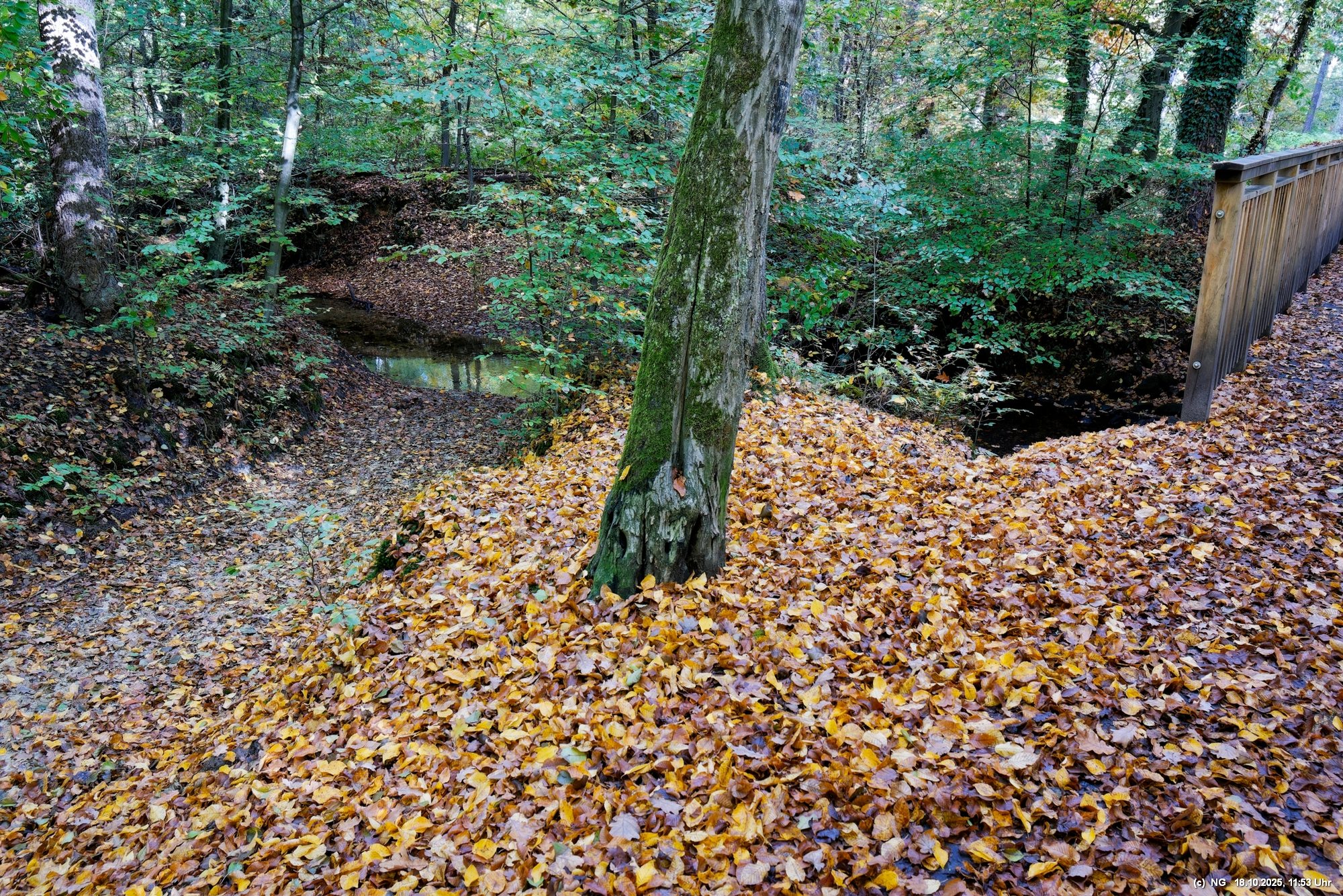 Egal ob das Gebiet zu Kirchhellen oder nur zur Stadt Bottrop gezählt wird - es ist einfach schön dort. Nur rund 10 km Luftlinie von unserem Haus entfernt - und man ist in einer besonderen Welt. Das Ruhrgebiet ist dort nicht spürbar. Der Rotbach verdoppelt dort durch Windungen seine Länge. Der Weg dort ist kein Verkehrsweg und daher trifft man dort nur wenige Spaziergänger. Jetzt im Herbst sind die Libellen verschwunden, aber dafür kommen die bunten Farben des Waldes und vor allem Pilze. Man kann über die Mengen nicht spekulieren. Mal sind es ungeheuer viele, mal muss man sie suchen. Es geht dort nur um die Schönheit der Pilze, also nicht um Speisepilze. Diesmal war die Menge überschaubar, aber mit etwas Geduld und das Gefühl für die Orte konnte man auch bei diesem Besuch auch ne Menge finden.