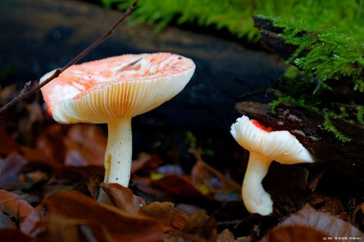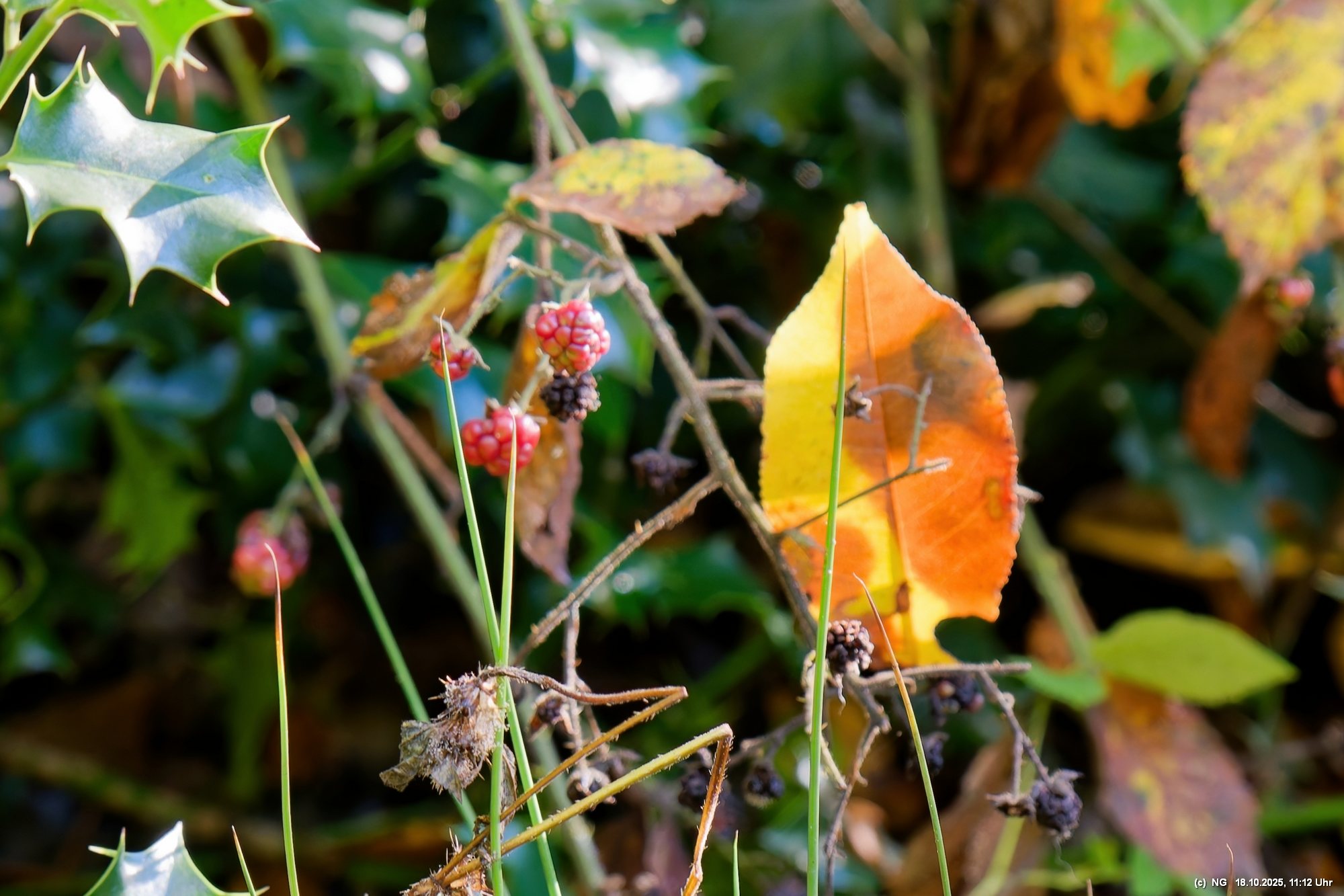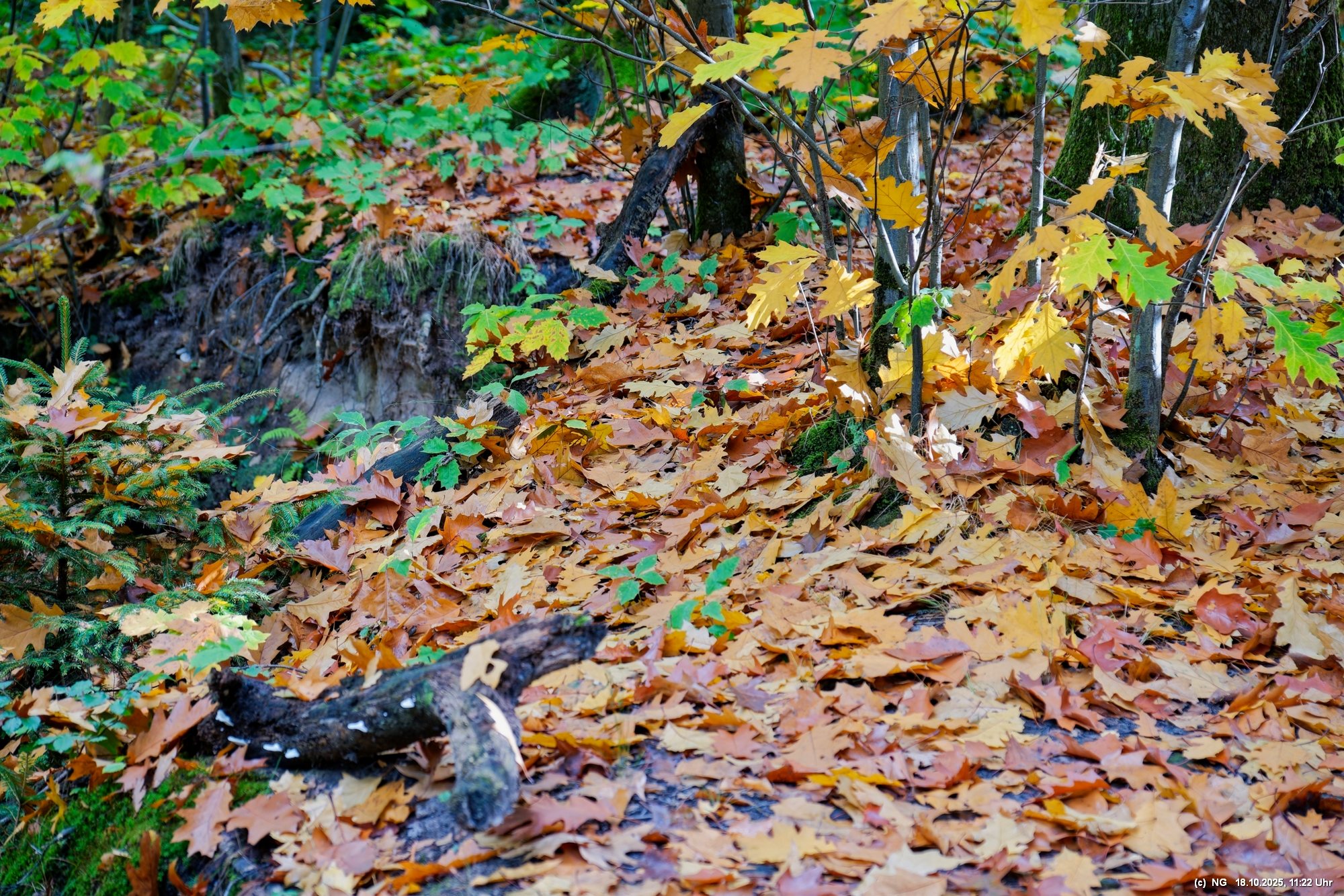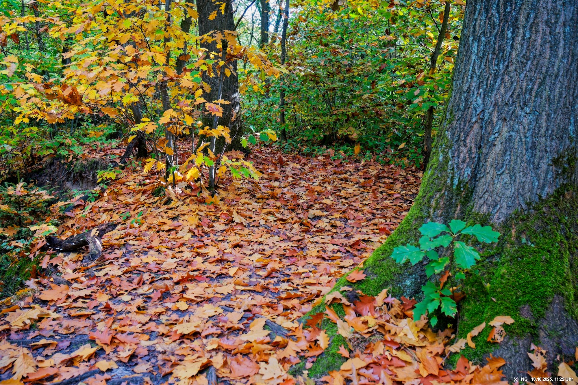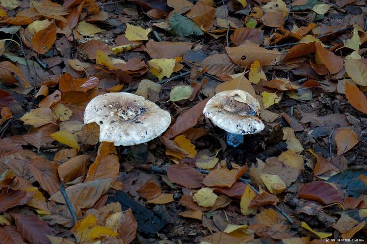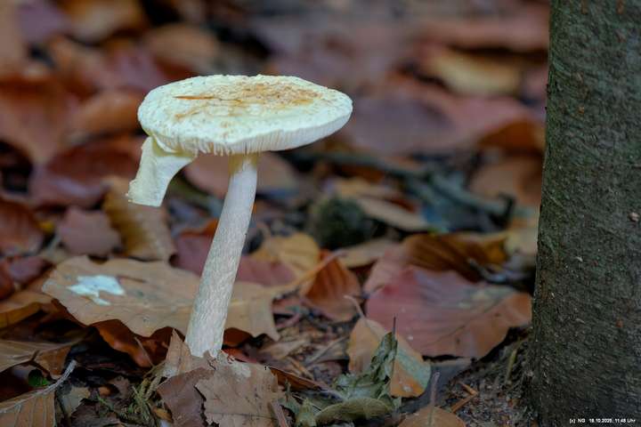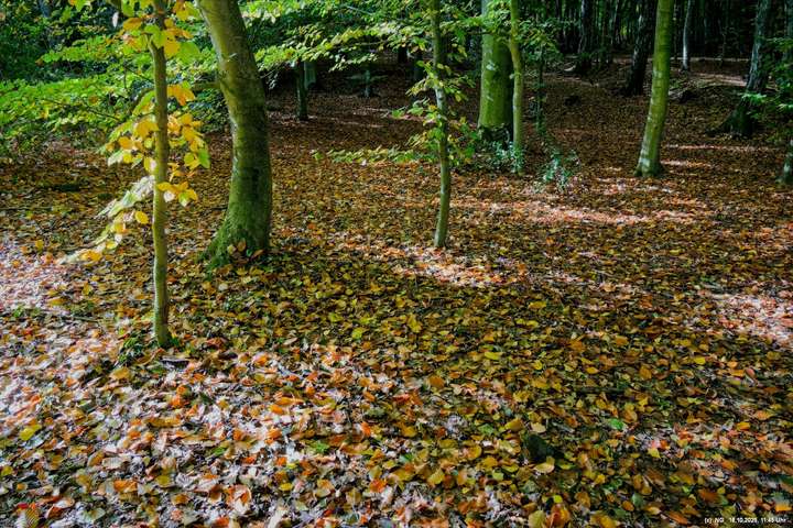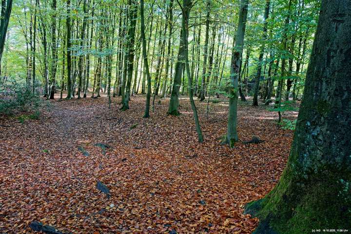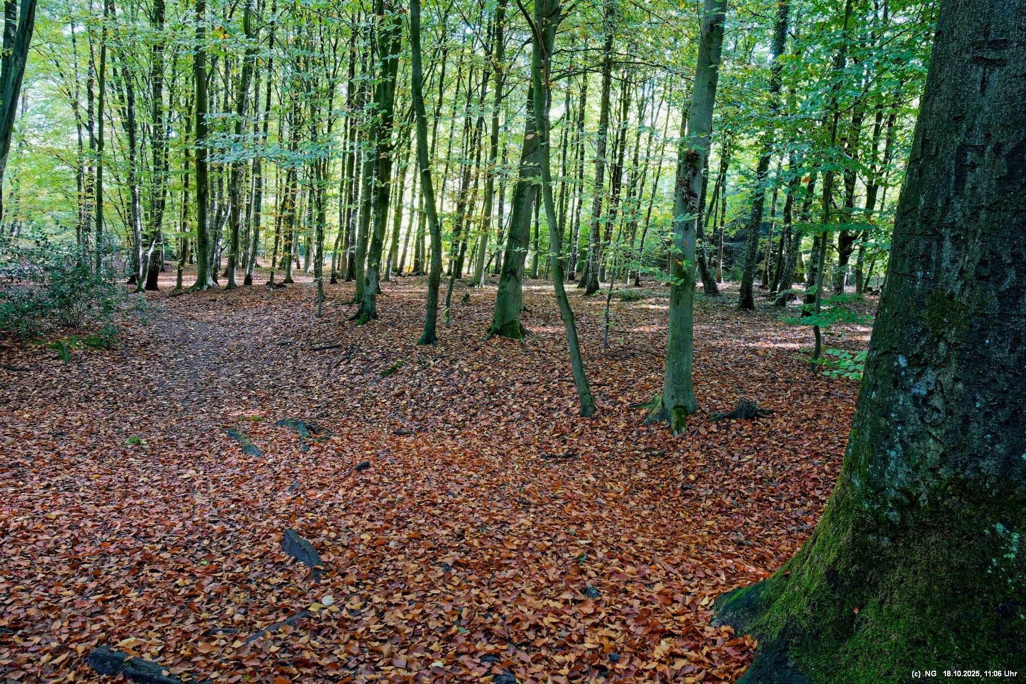 Egal ob das Gebiet zu Kirchhellen oder nur zur Stadt Bottrop gezählt wird - es ist einfach schön dort. Nur rund 10 km Luftlinie von unserem Haus entfernt - und man ist in einer besonderen Welt. Das Ruhrgebiet ist dort nicht spürbar. Der Rotbach verdoppelt dort durch Windungen seine Länge. Der Weg dort ist kein Verkehrsweg und daher trifft man dort nur wenige Spaziergänger. Jetzt im Herbst sind die Libellen verschwunden, aber dafür kommen die bunten Farben des Waldes und vor allem Pilze. Man kann über die Mengen nicht spekulieren. Mal sind es ungeheuer viele, mal muss man sie suchen. Es geht dort nur um die Schönheit der Pilze, also nicht um Speisepilze. Diesmal war die Menge überschaubar, aber mit etwas Geduld und das Gefühl für die Orte konnte man auch bei diesem Besuch auch ne Menge finden.