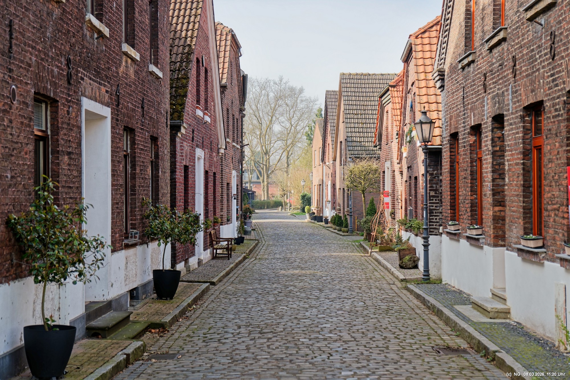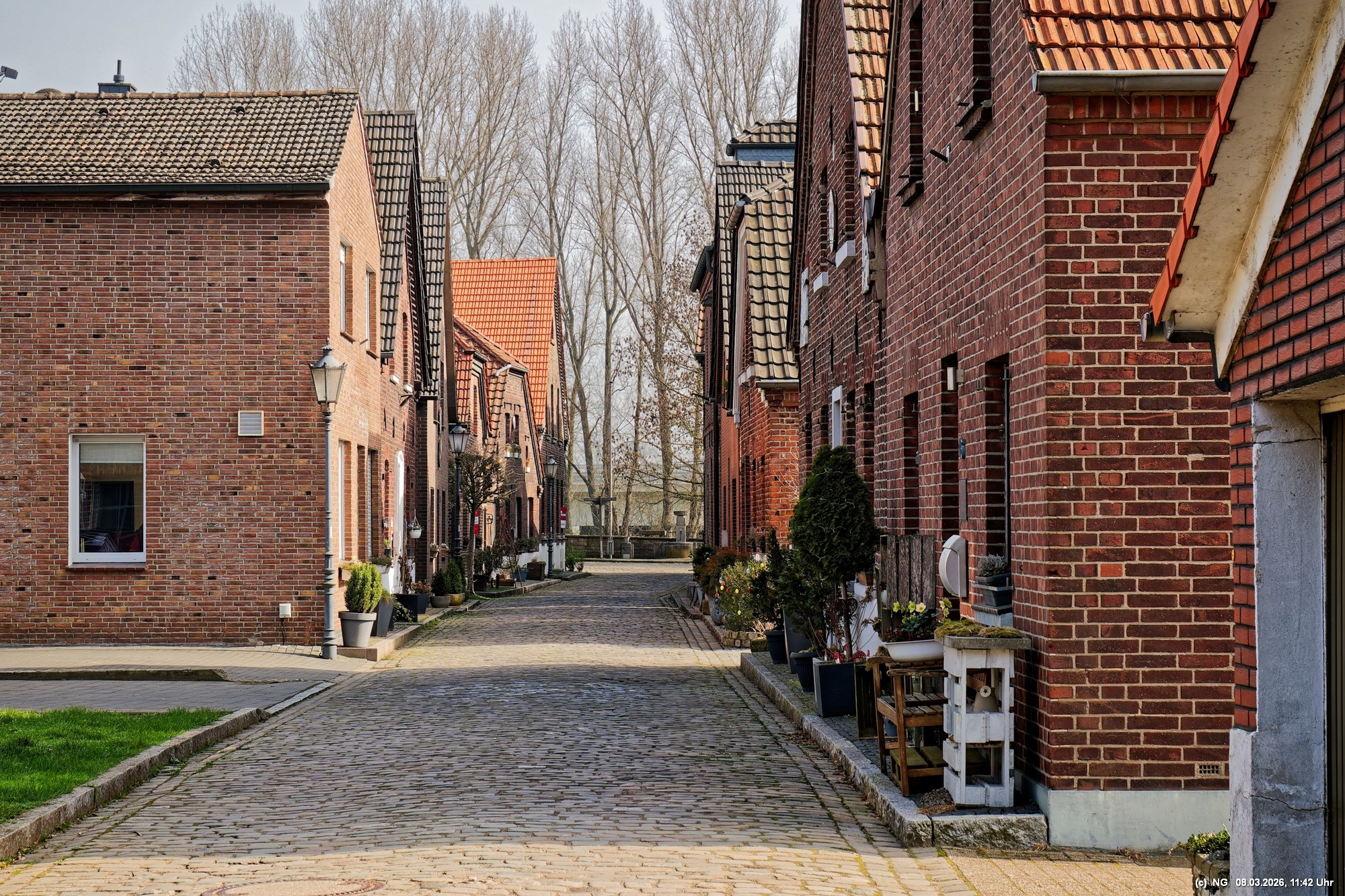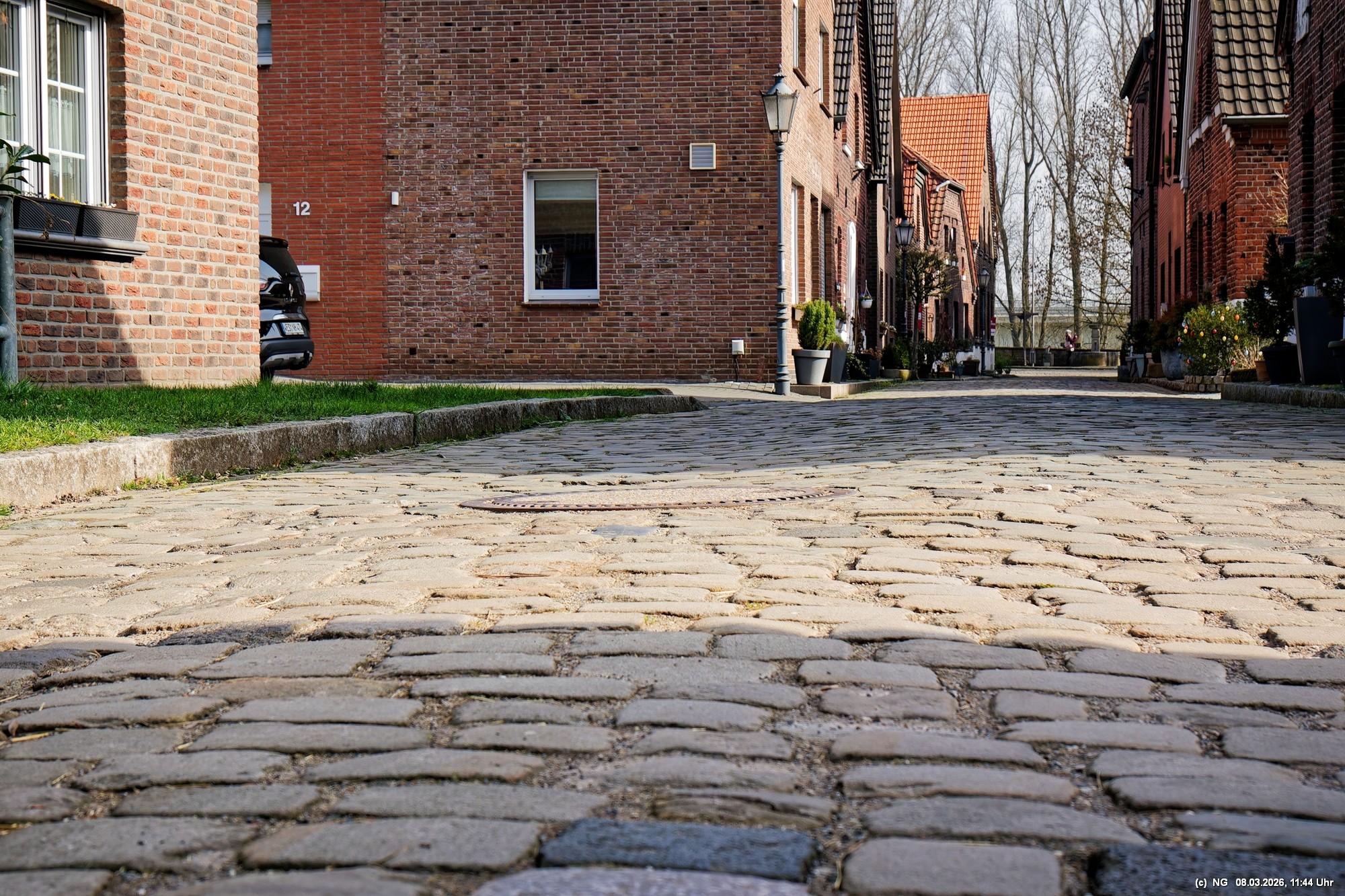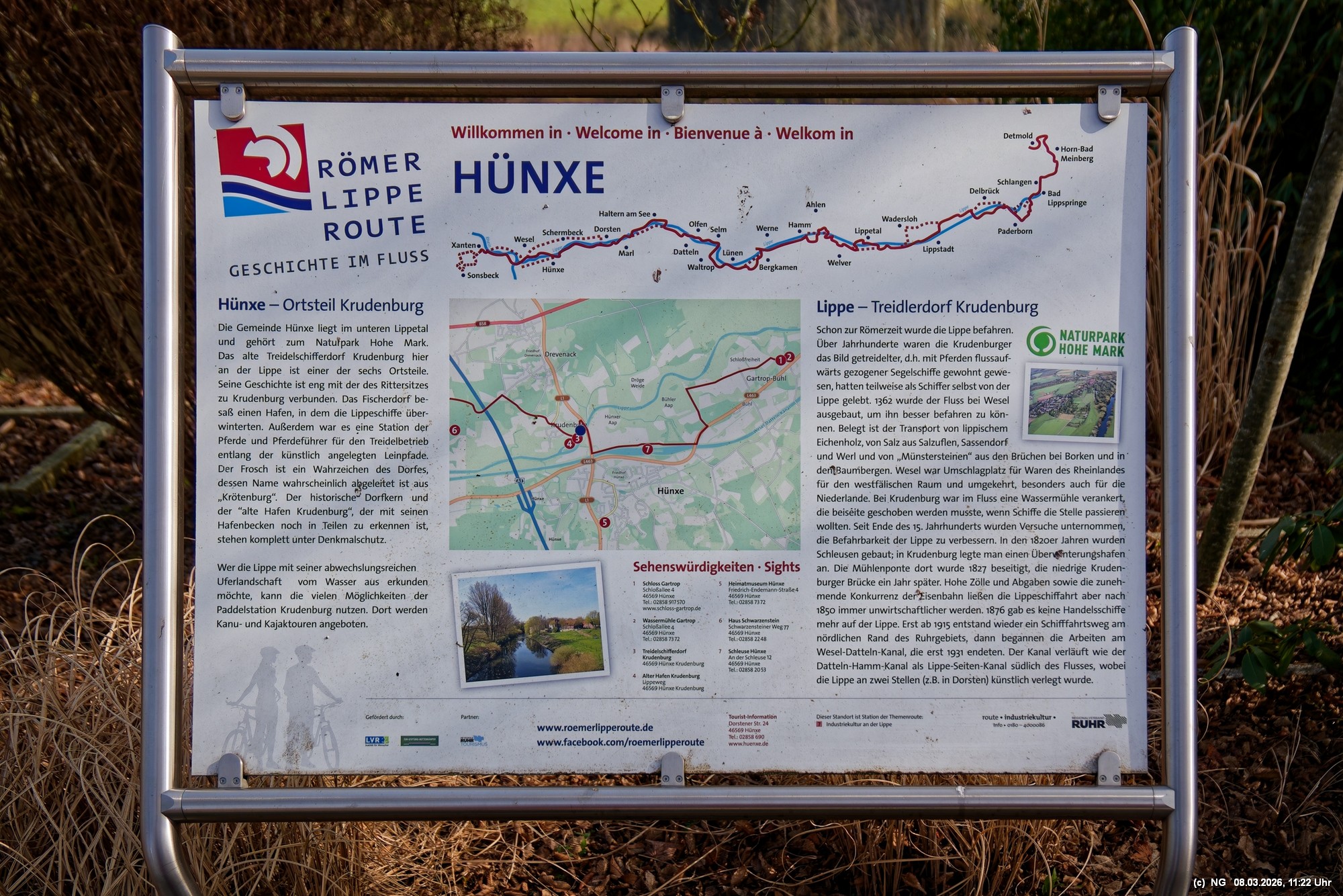 Viele Jahrhunderte waren auf der Lippe in Krudenburg getreidelter, d. h. mit Pferden flussaufwärts gezogener Segelschiffe unterwegs und für einen guten Unterhalt gesorgt. Anfang der 1900 der Jahre wurde dann auf der anderen Seite der Lippe ein neuer Kanal gebaut und es gab keine Lebensgrundlage mehr dort. Heute ist dieses kleine Dorf eine Idylle am nördlichen Rand des Ruhrgebiets. Das schöne Wetter tat alles für uns und für einen idyllischen Spaziergang mit wenigen Menschen, einigen Katzen und Häsern, die ein besonderes Heimatsgefühl ausstrahlen.