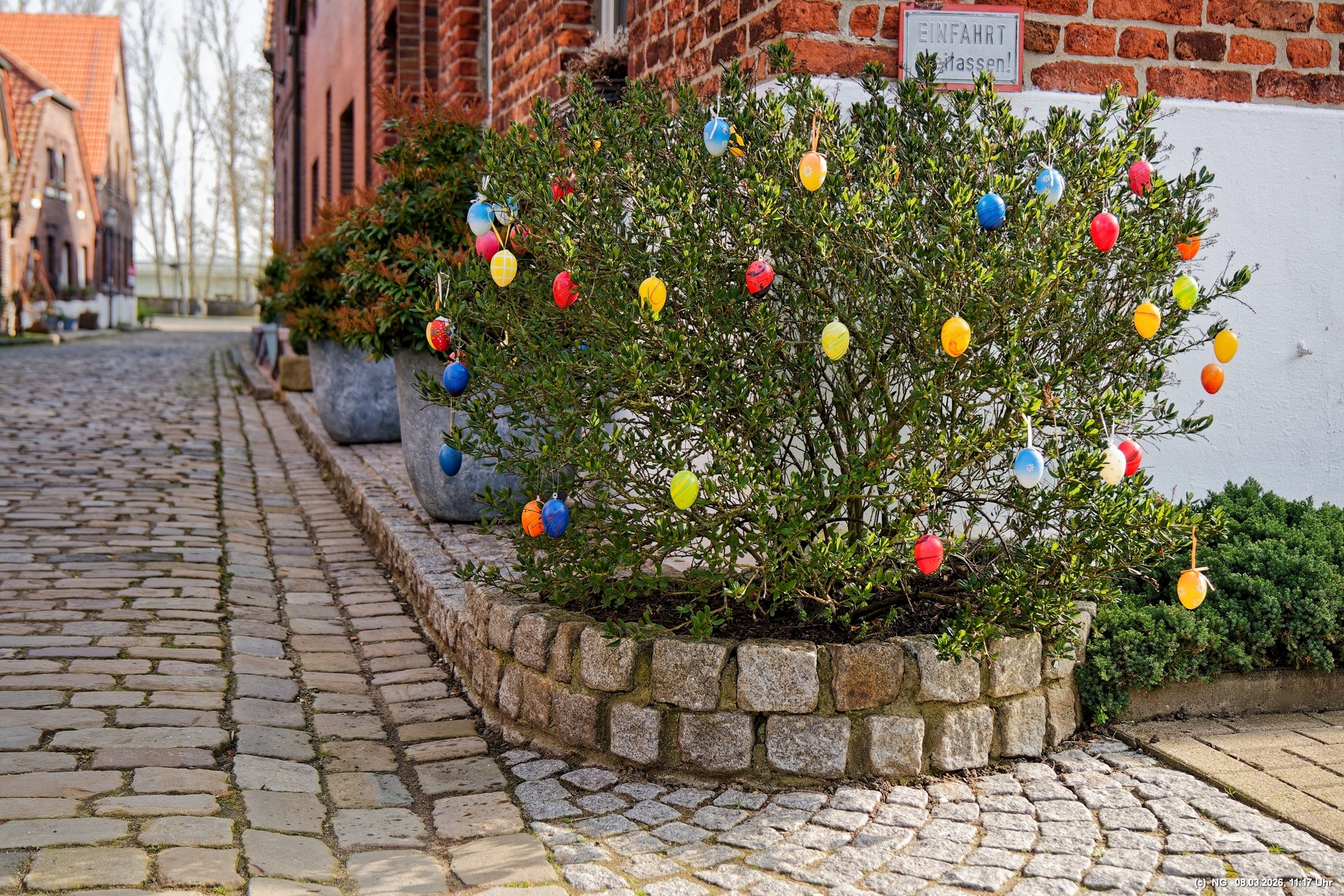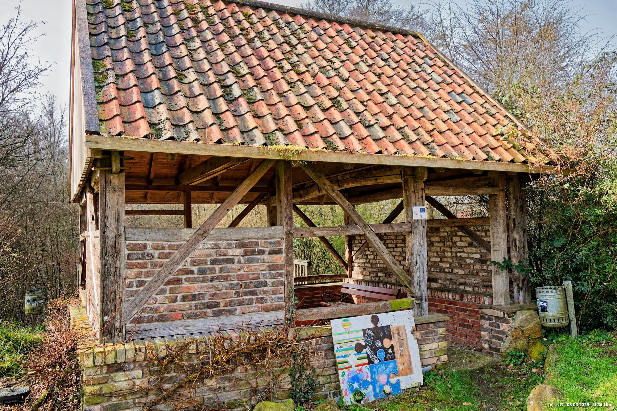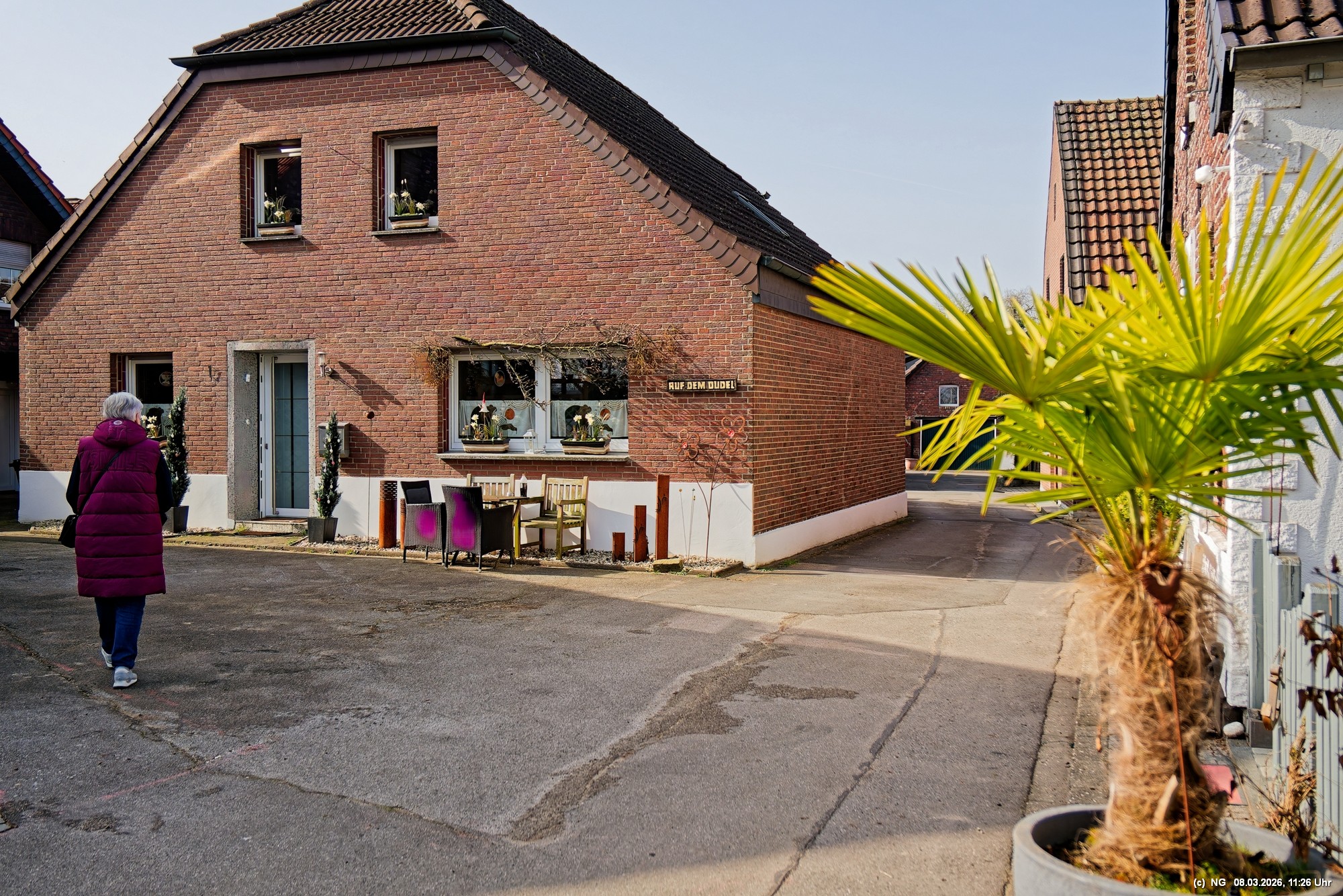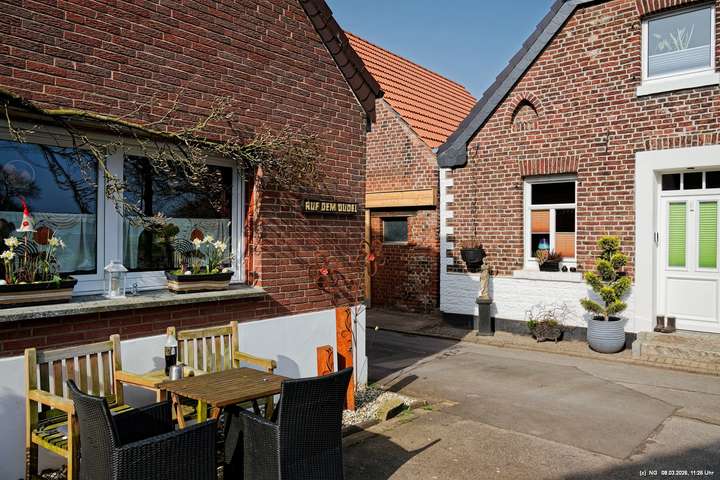 Viele Jahrhunderte waren auf der Lippe in Krudenburg getreidelter, d. h. mit Pferden flussaufwärts gezogener Segelschiffe unterwegs und für einen guten Unterhalt gesorgt. Anfang der 1900 der Jahre wurde dann auf der anderen Seite der Lippe ein neuer Kanal gebaut und es gab keine Lebensgrundlage mehr dort. Heute ist dieses kleine Dorf eine Idylle am nördlichen Rand des Ruhrgebiets. Das schöne Wetter tat alles für uns und für einen idyllischen Spaziergang mit wenigen Menschen, einigen Katzen und Häsern, die ein besonderes Heimatsgefühl ausstrahlen.