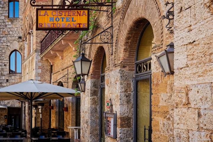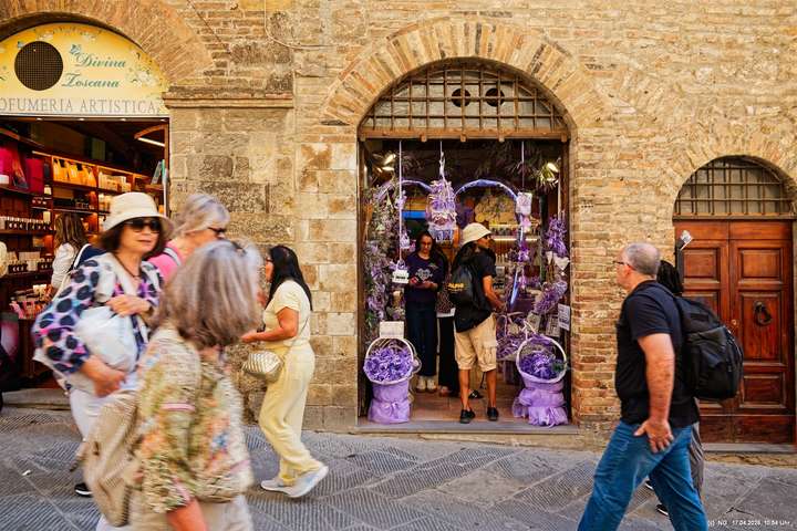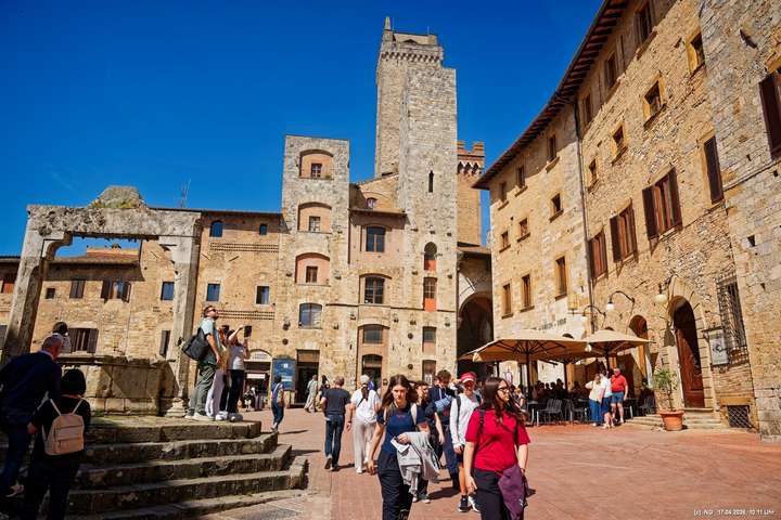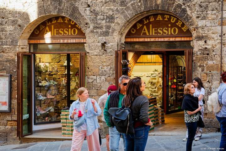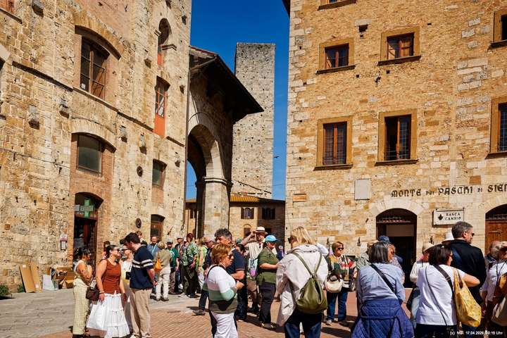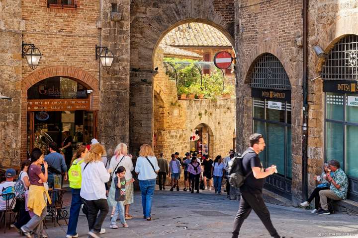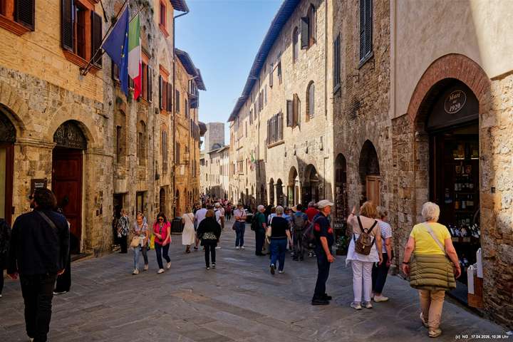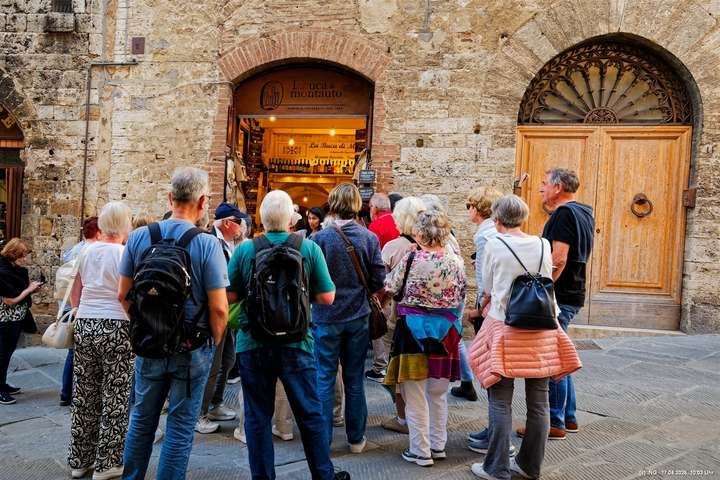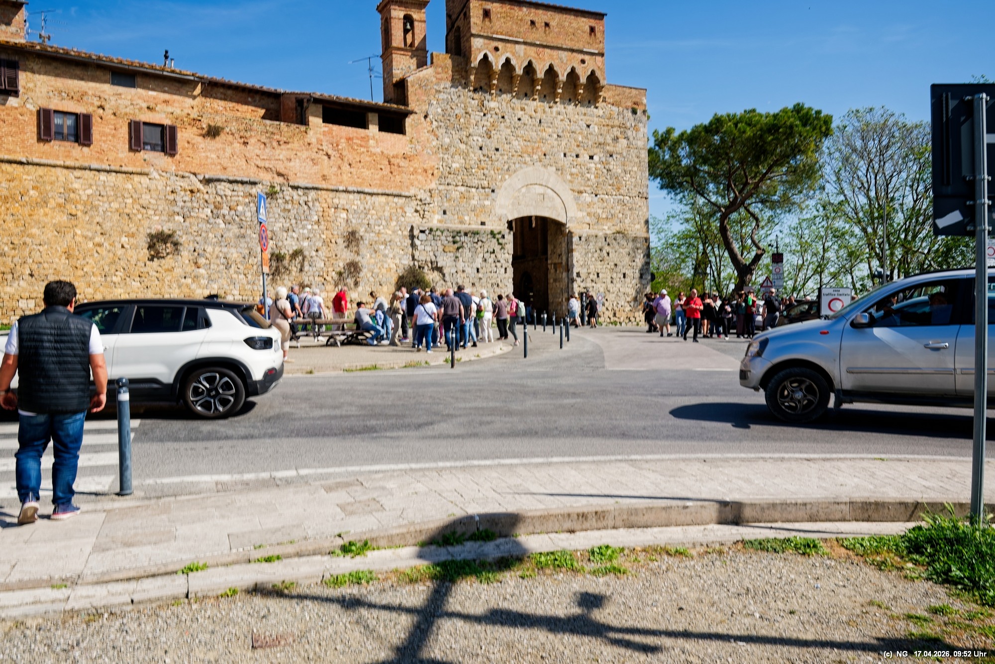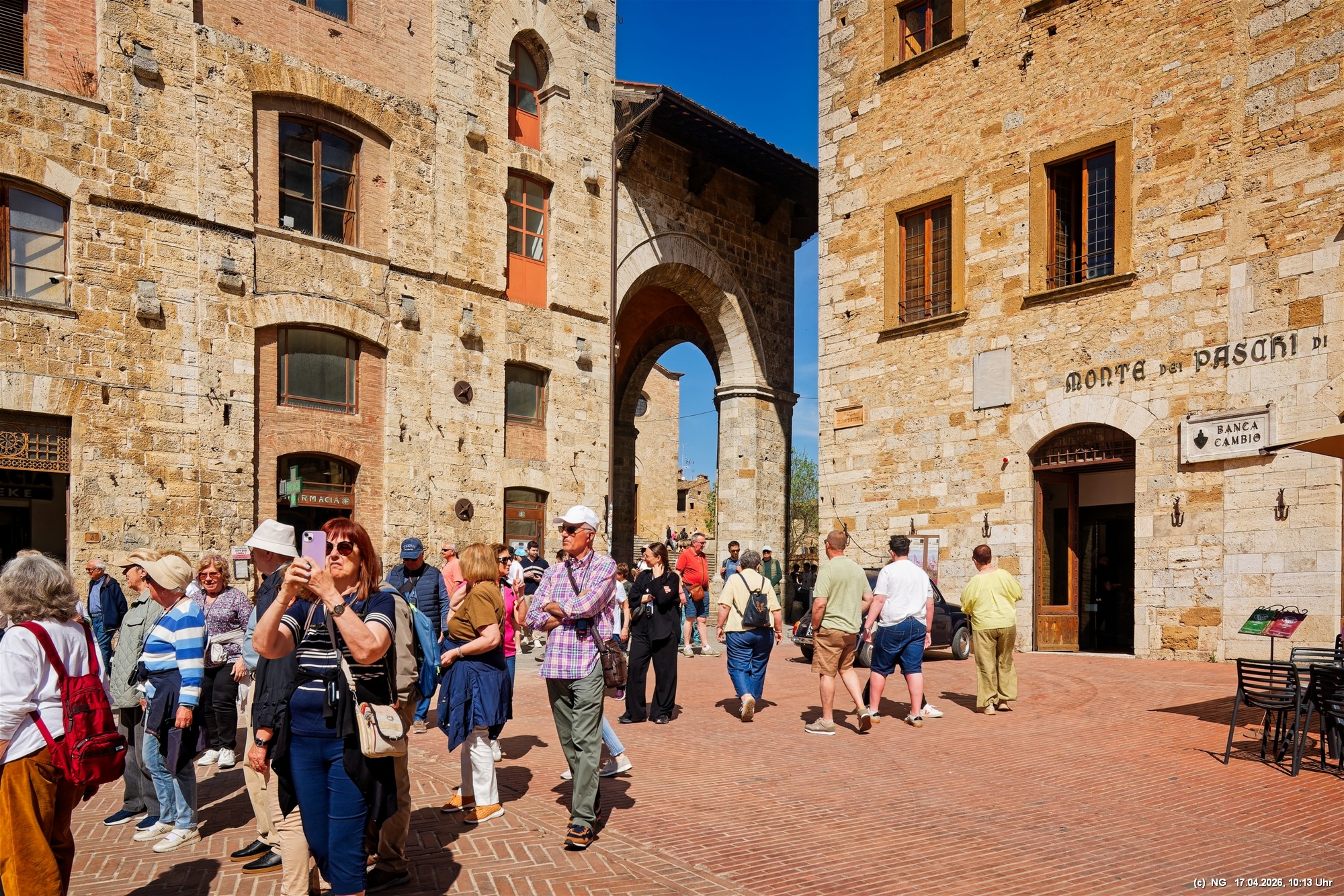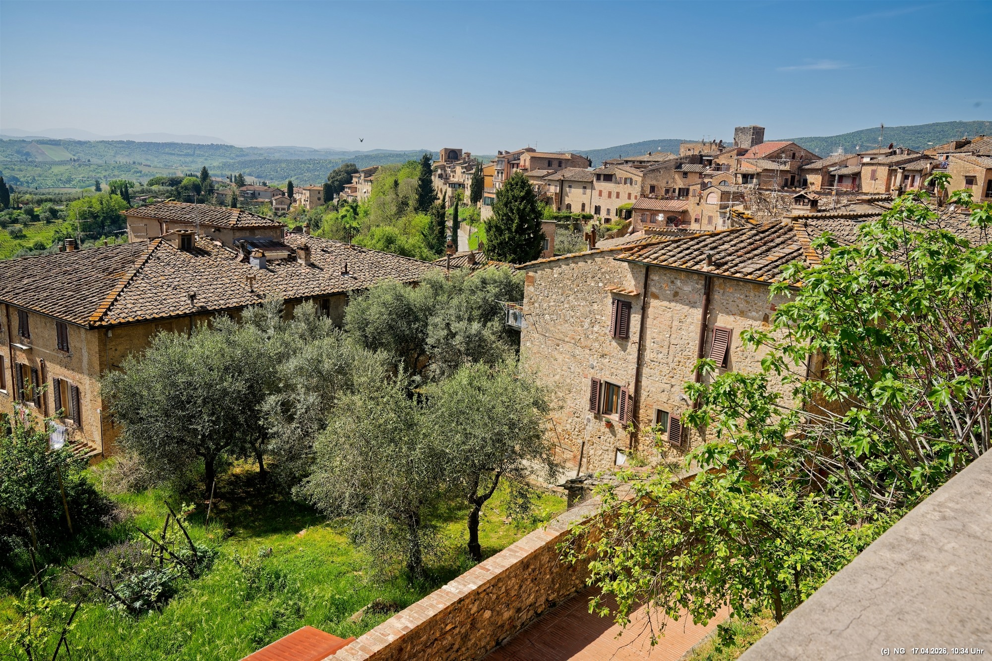 Sie befindet sich auf einem Hügel (rund 334 m) und ist Weltkulturerbe, ein touristisches Highlight. Immerhin gibt es dort die preisgekrönte "Gelateria Dondoli" mit meisterlichen Bewertungen. Der Eigentest gibt den Bewertern absolut Recht und findet auch weitere Leckereien. Nett ist es dort und man legt Wert auf ein sauberes Erscheinungsbild.