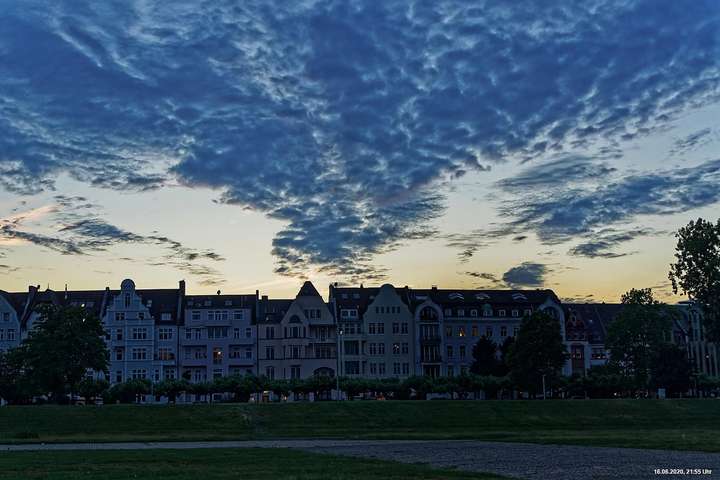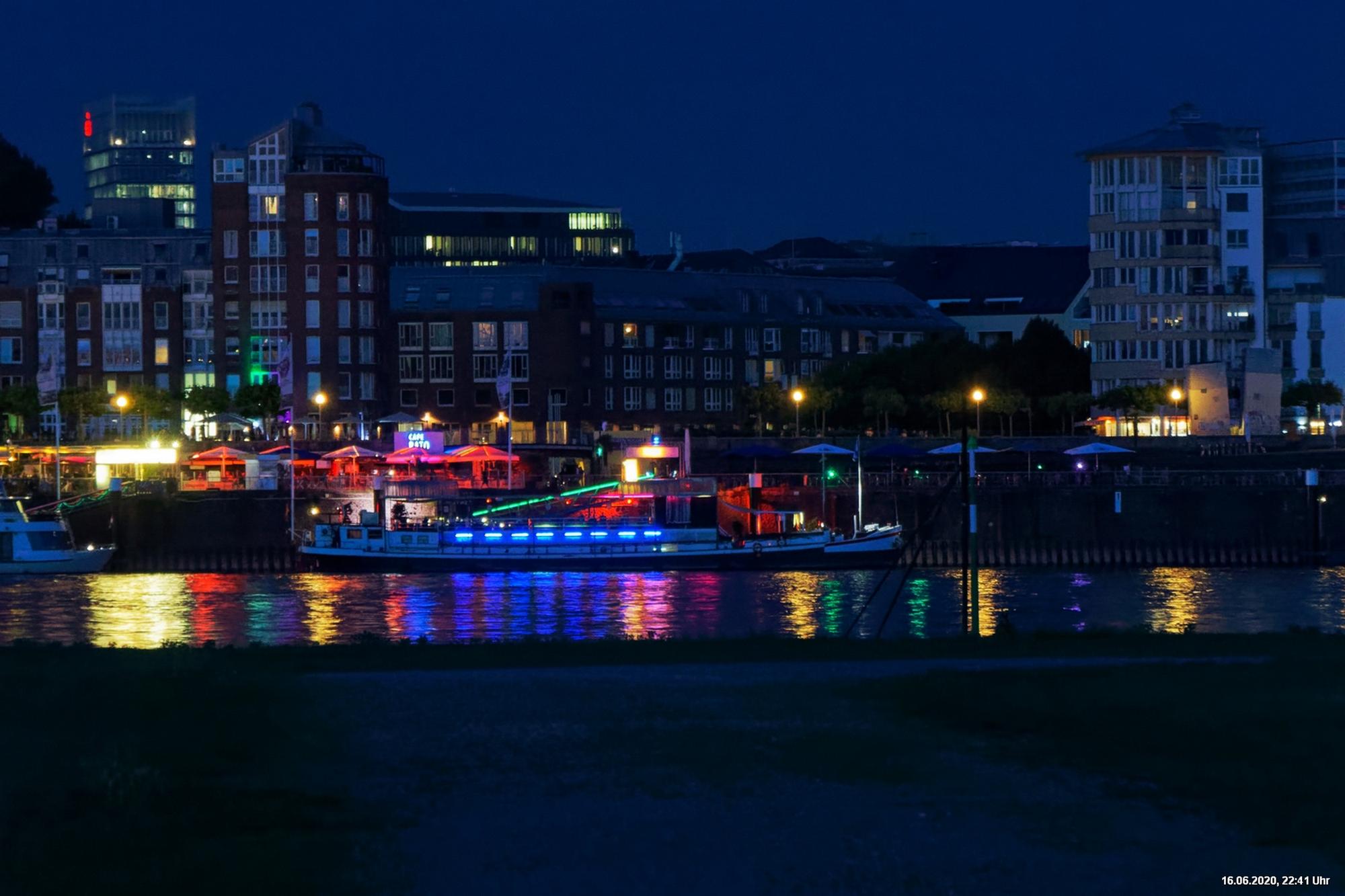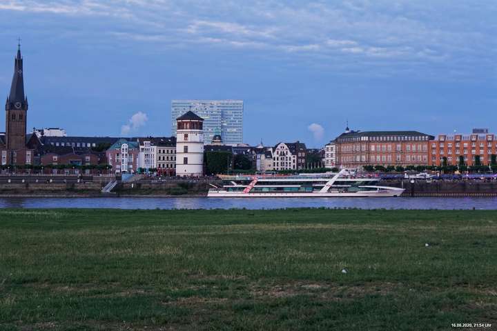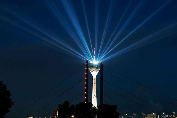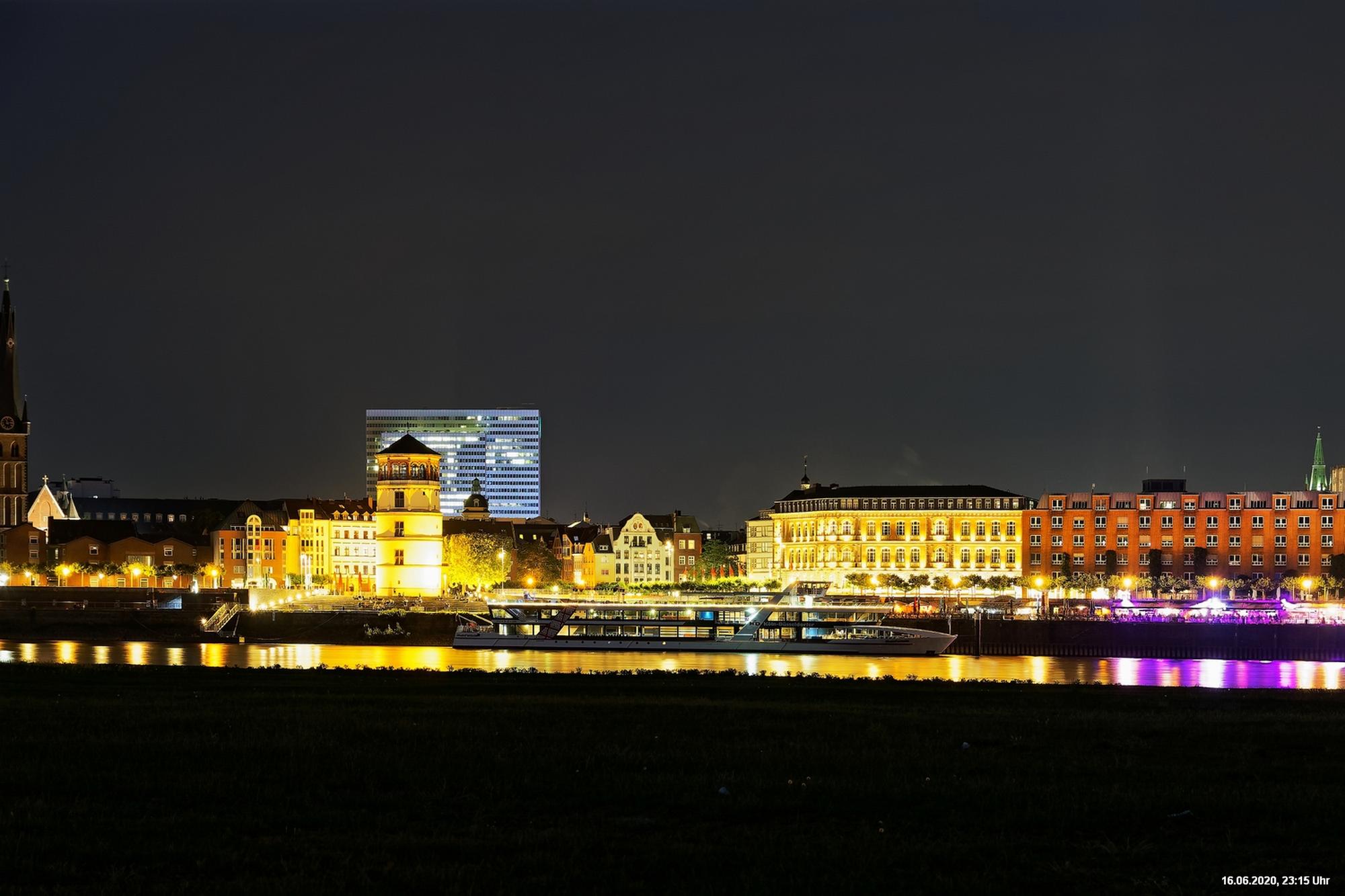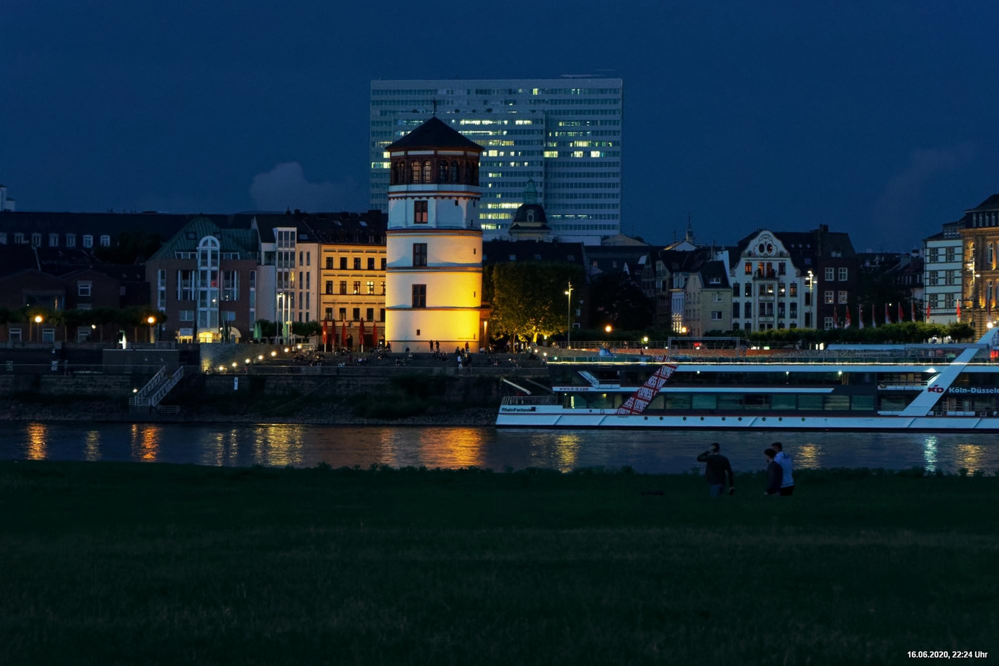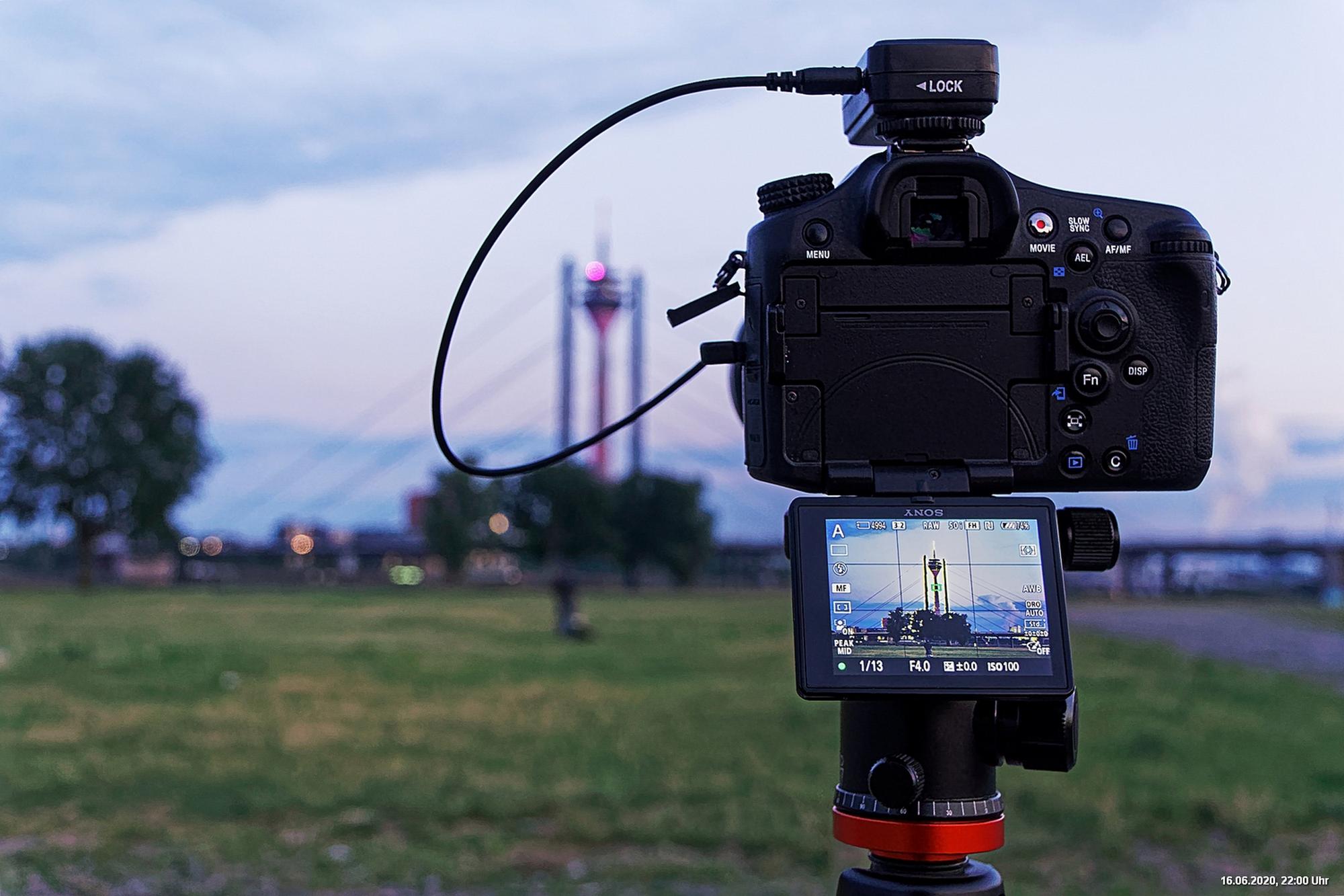 Die damalige Installation entwarf der Lichtkünstler Klaus Gendrung zum 70. Geburtstag des Landes NRW. Jetzt startet die Deutsche Telekom ihr 5G-Netz mit einer Werbeaktion in Mangentafarben, die mit den vielen und starken Strahlern dort oben doch irgendwie daran erinnert. In 195 m Höhe wurden mehr als 60 dieser beweglichen „Lichtkanonen“ aufgebaut. Die Xenon-Gasentladungslampen bilden damit den stärksten Lichtstrahl der Welt. Alle 30 Minuten gibt es eine „Lichtshow“ und bewegte Farben auf das Turmgebäude. Zwischendurch richten sich alle Strahler senkrecht gen Himmel. Der Turm sieht dann aus wie eine riesige Taschenlampe. Ist schon sehr interessant und lockt zahlreiche Besucher und besonders Fotografen an. Parkplätze findet man daher eher nicht. Nur 2 Stunden vorher