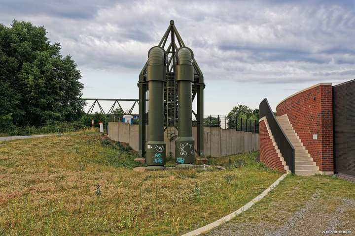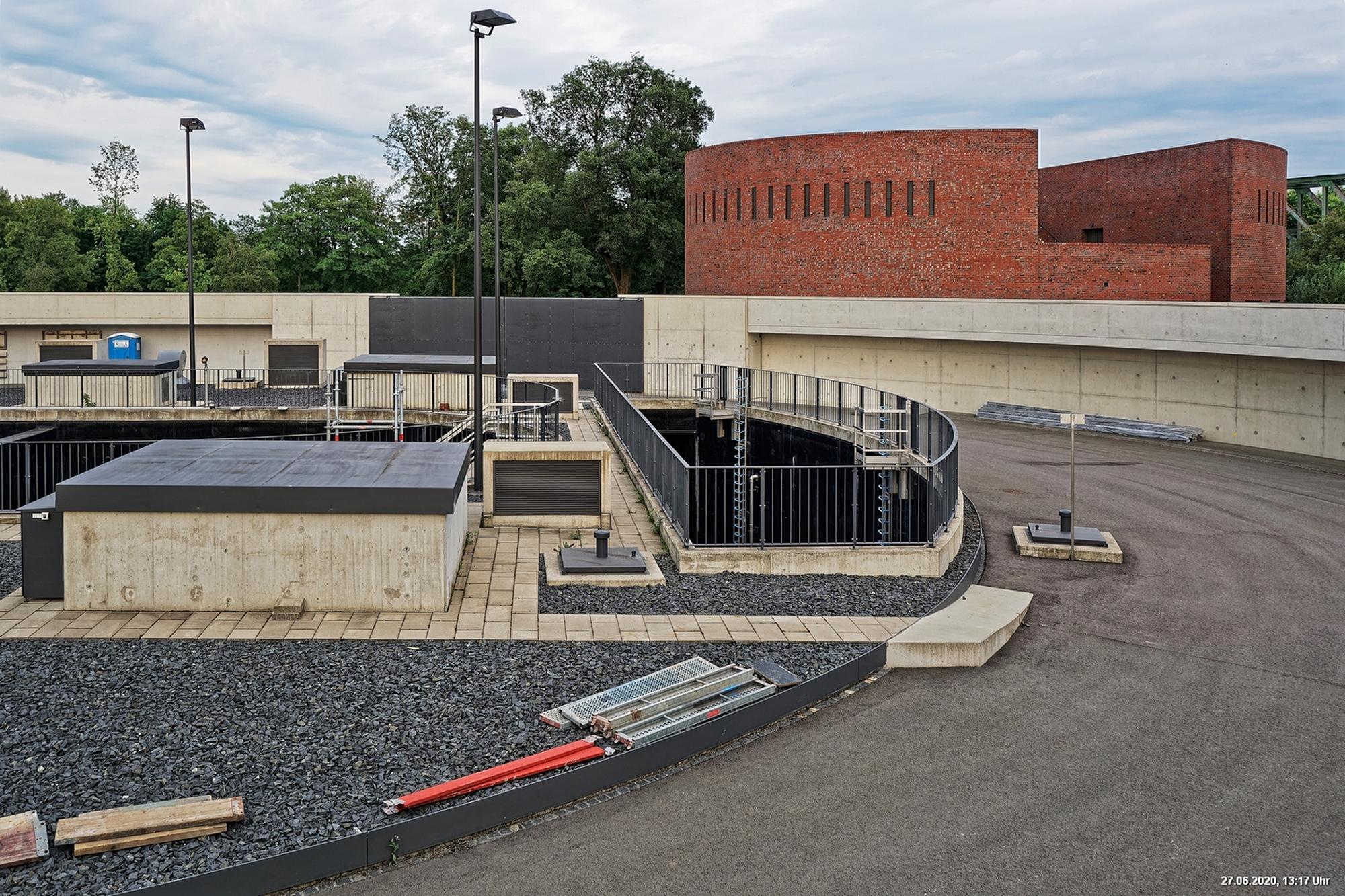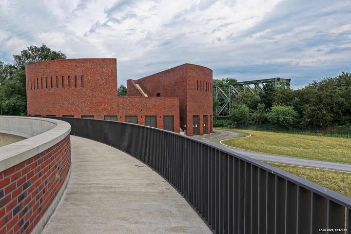 Das bisher im offenen Oberflächenkanal fließende Abwasser soll künftig komplett unterirdisch geführt werden. Dazu sind einige Großpumpwerke erforderlich, da die Emschermündung deutlich höher liegt als die Quelle. Allein in dieser Anlage sollen dafür 13.000 Liter Abwasser pro Sekunde aus 26 m hoch gepumpt und an die Kläranlagen verteilt werden. Dafür hat man nur hier schlappe 65 Millionen Euro investiert. Der Ort ist so angelegt, dass er Besucher zu einem Aufenthalt einlädt.