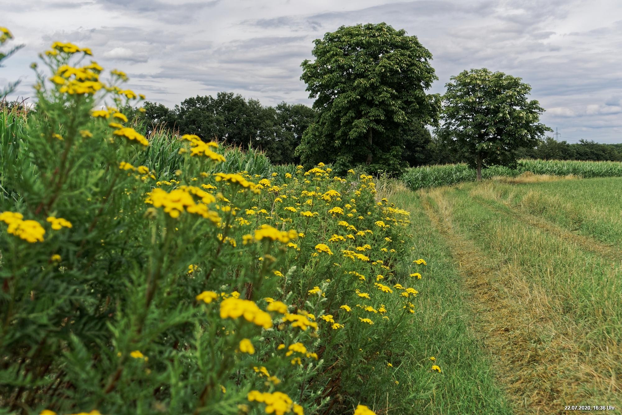 Nur wenige km von uns entfernt, an der Stadtgrenze Dorsten – Gahlen, gibt es Landwirtschaft in Hülle und Fülle. Es ist Erntezeit. Das Getreide wird eingeholt. Der Mähdrescher hatte gerade Feierabend gemacht und ich war allein. Die Straße war weit genug im Hintergrund und störte nicht die kleine Idylle. Sowas sollten man am späten Nachmittag öfter machen! Alle Bilder entstanden auf einer kurzen Strecke von lediglich etwa 200 m. War ganz schön vielseitig.